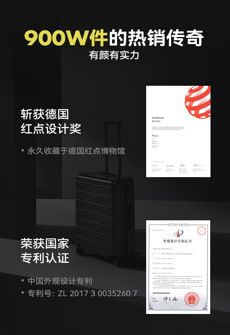 米家小米行李箱20英寸拉杆箱可登机箱PC旅行箱男女小型密码皮箱子黑色