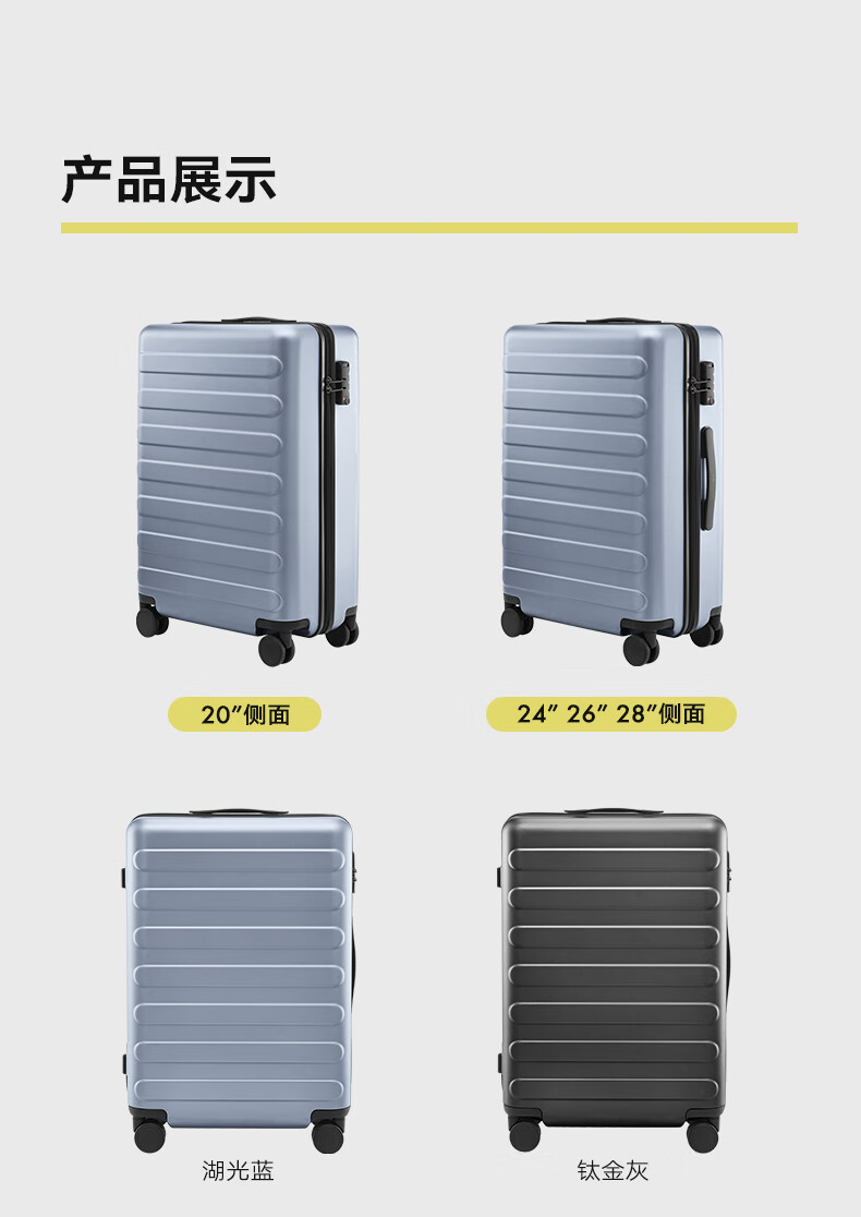 米家小米行李箱26英寸拉杆箱大容量旅行箱PC托运密码箱男女皮箱子灰色