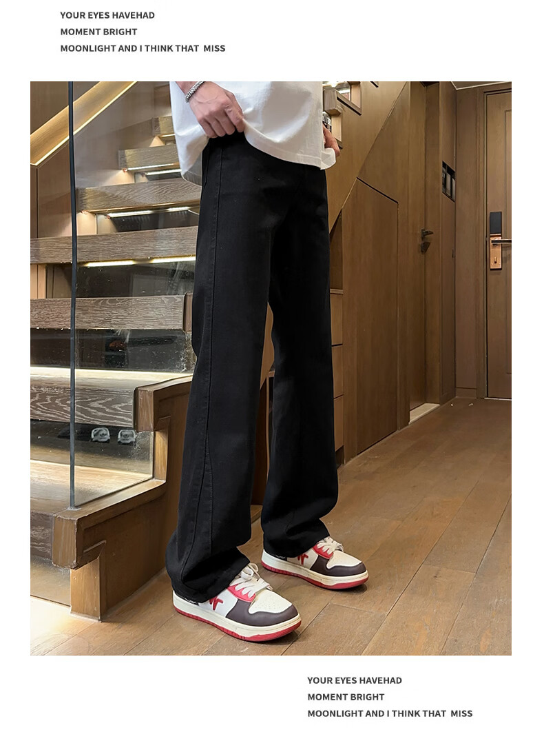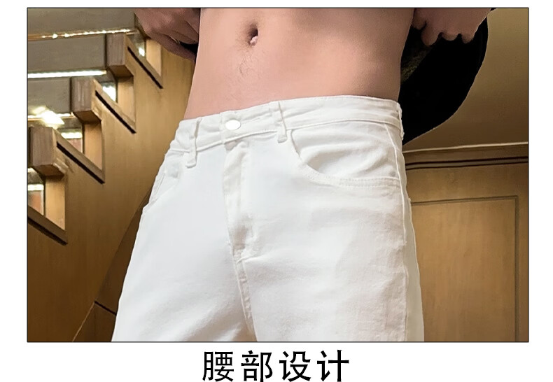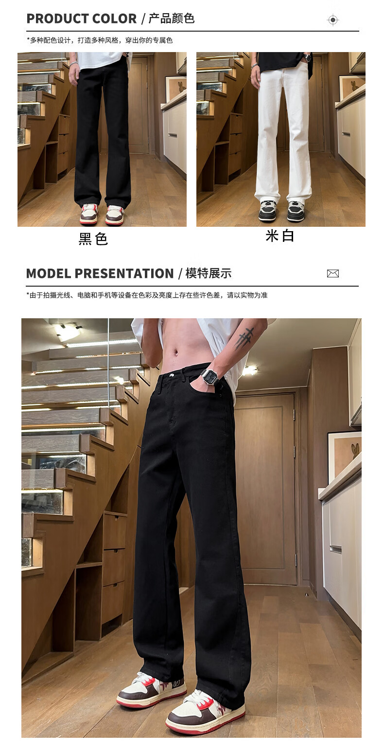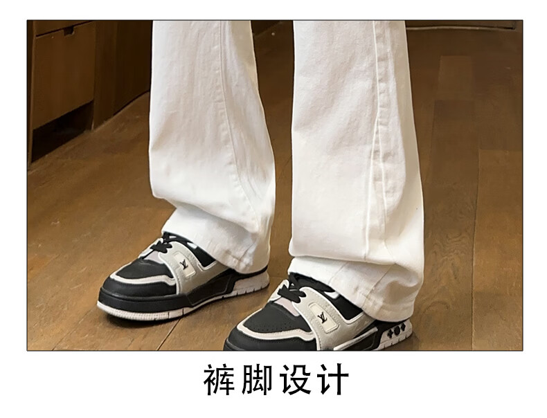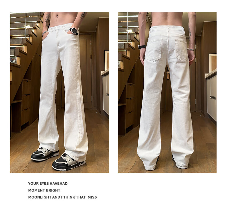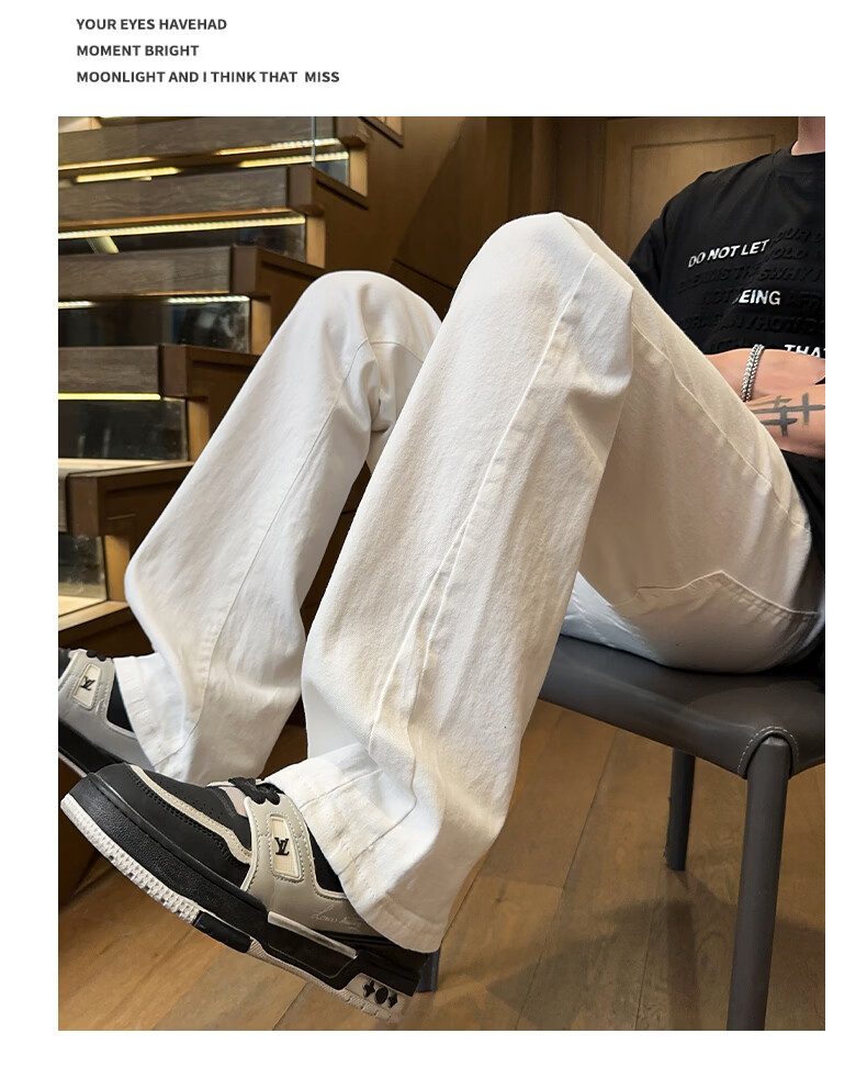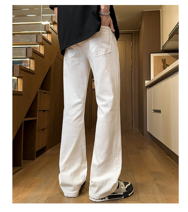 真维斯美式微喇白色牛仔裤男士春季宽松直筒阔腿休闲裤 白色 S
