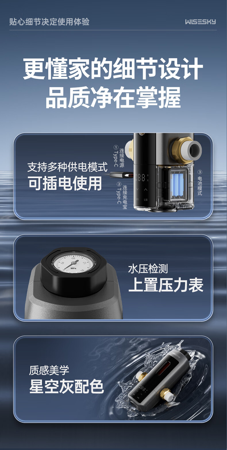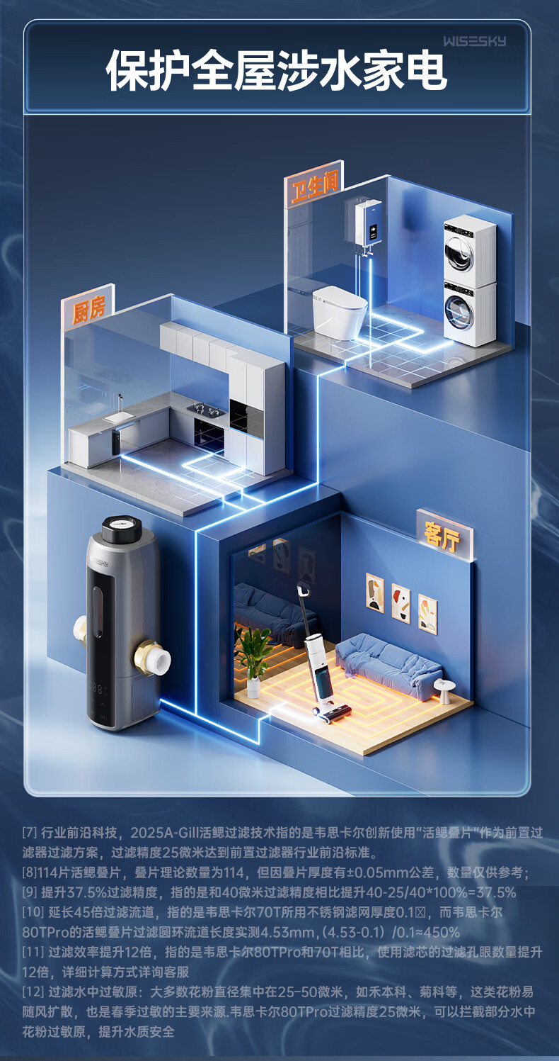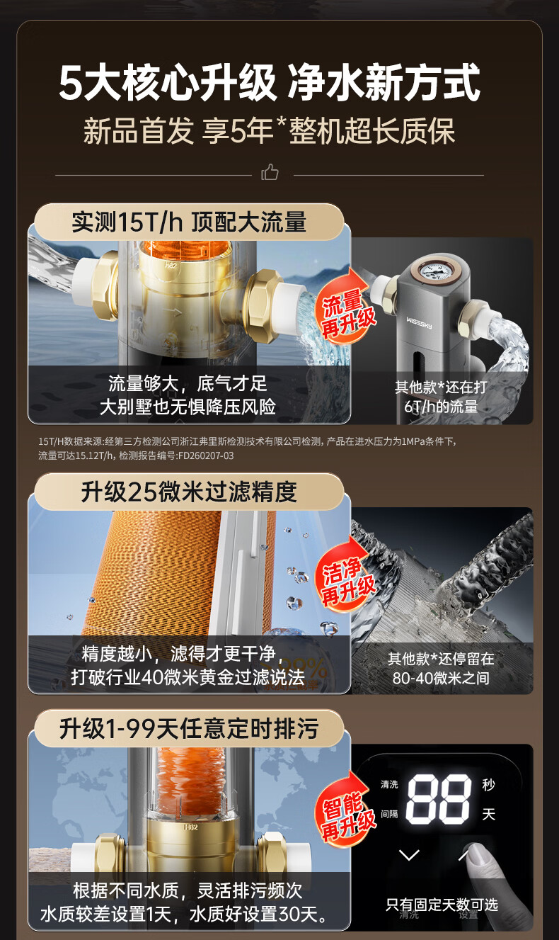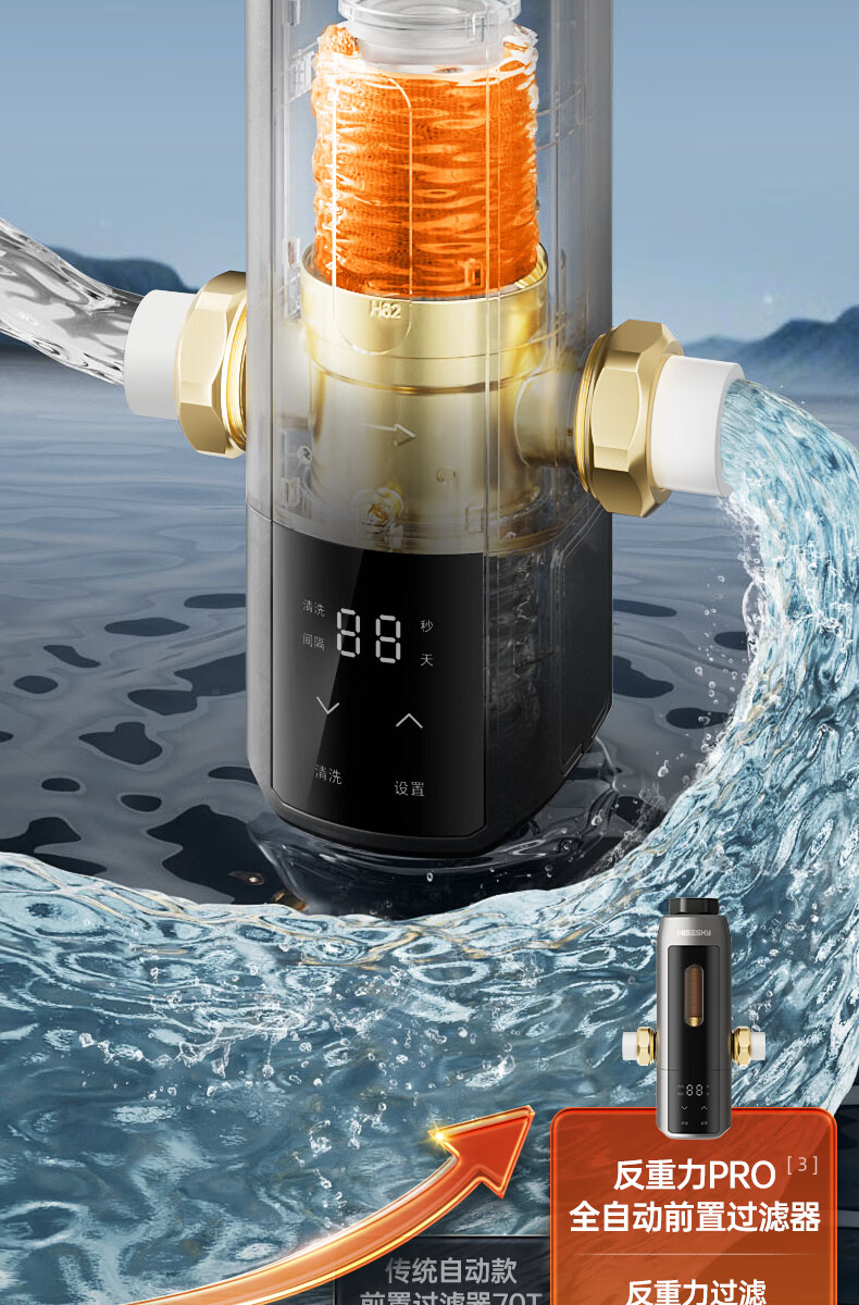 WISESKY韦思卡尔全自动款前置过滤器反重力大流量全屋家用反冲洗净水器