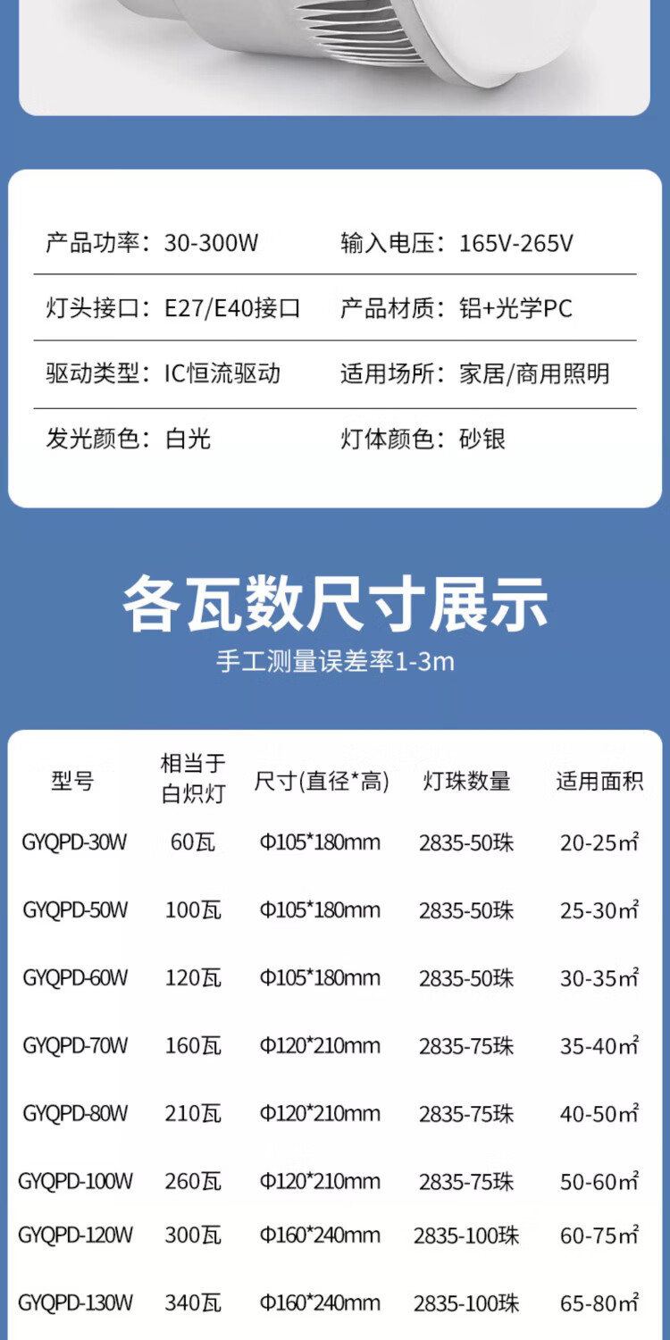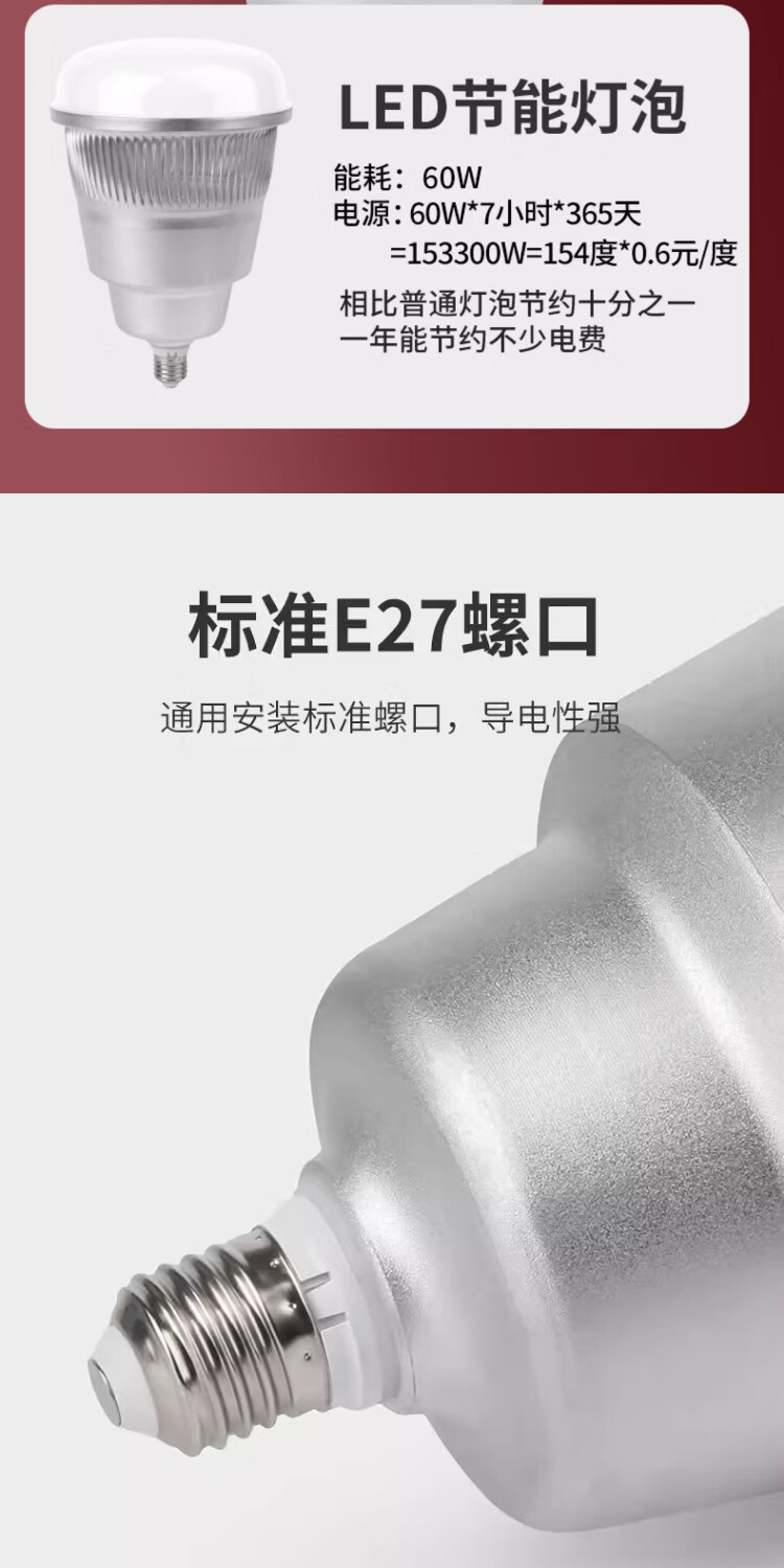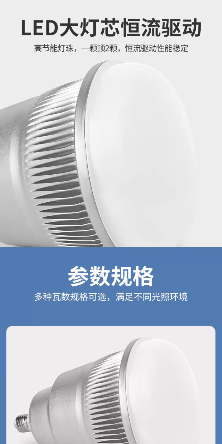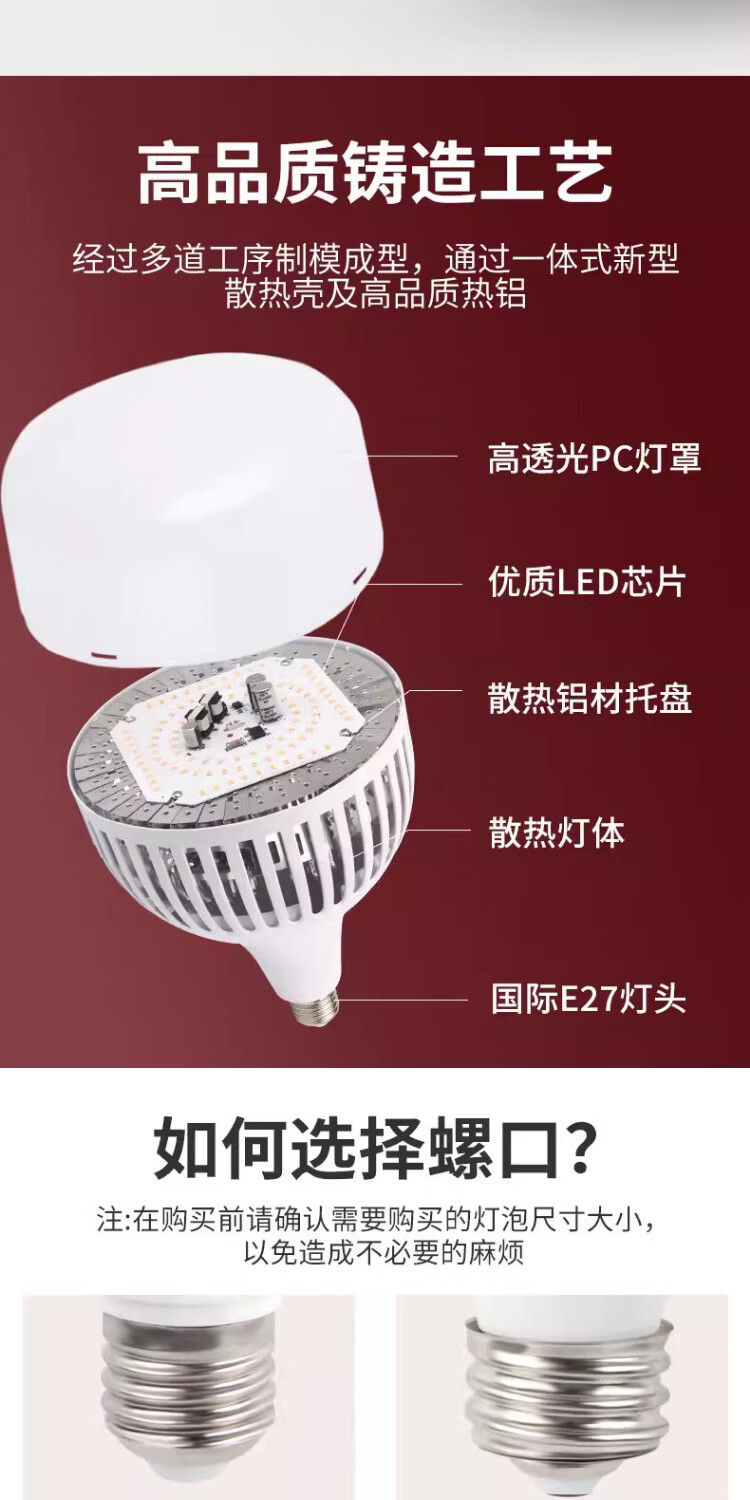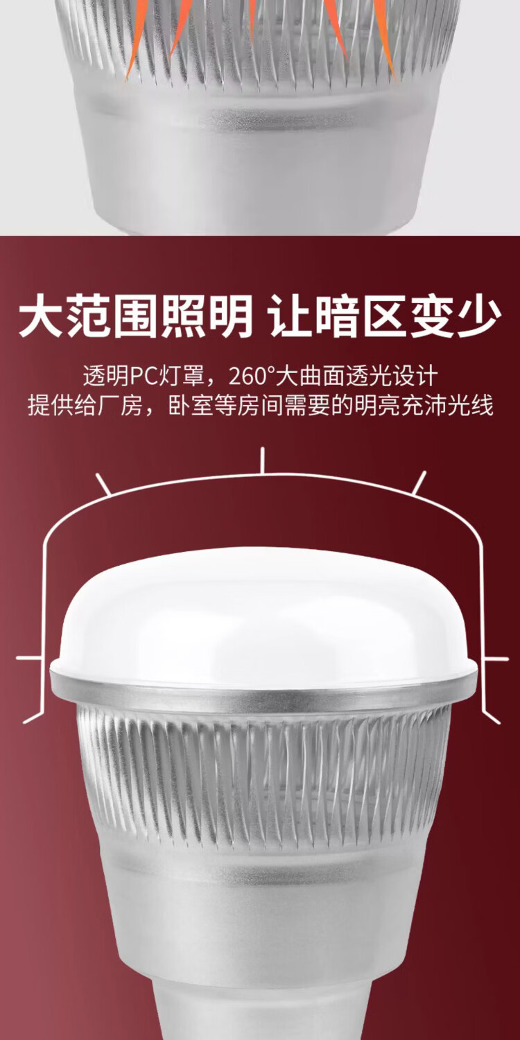 振牛led灯泡大功率超亮E27螺口家用护眼白光照明球泡工厂车间节能灯泡 【省电顶配】30W 白光 防蚊防雾防尘-2026新款