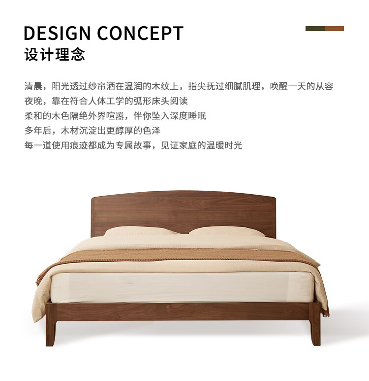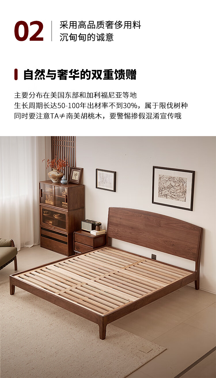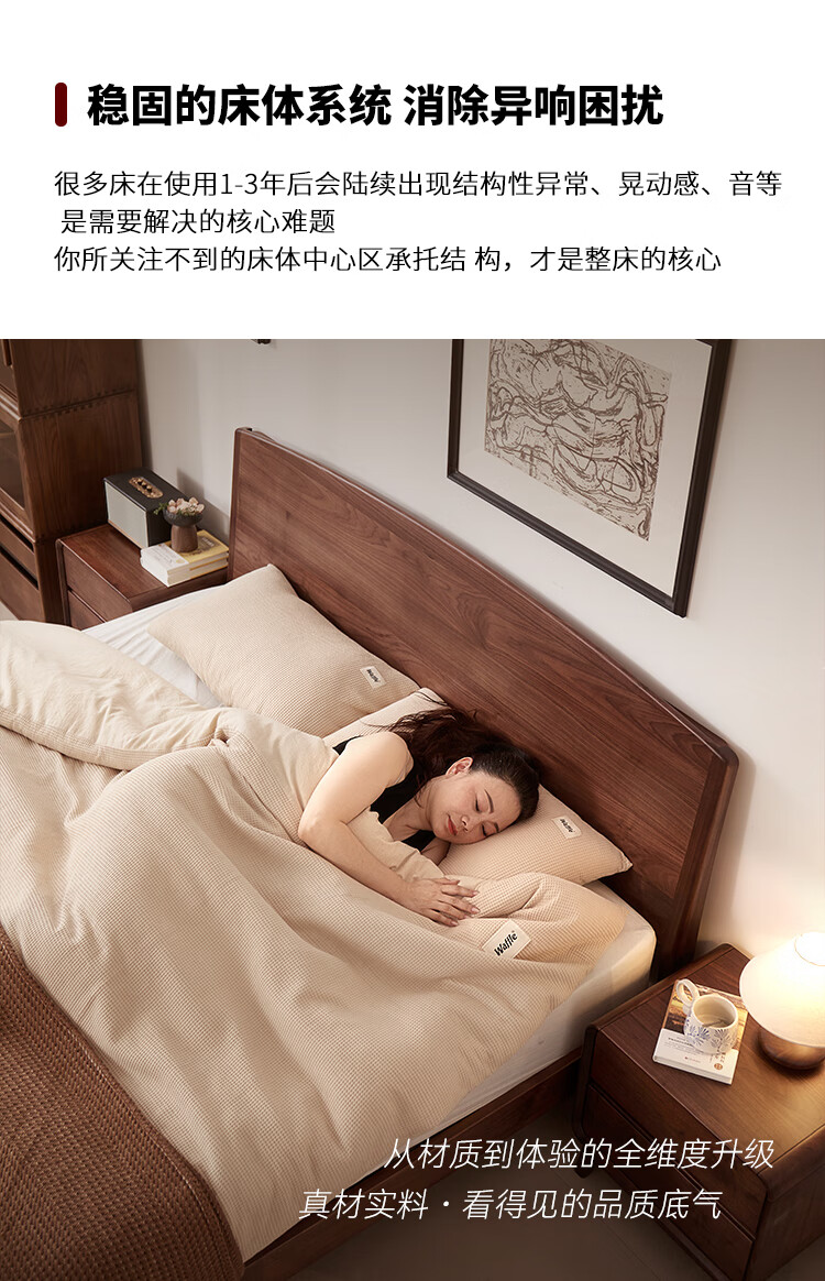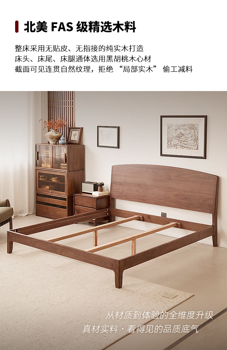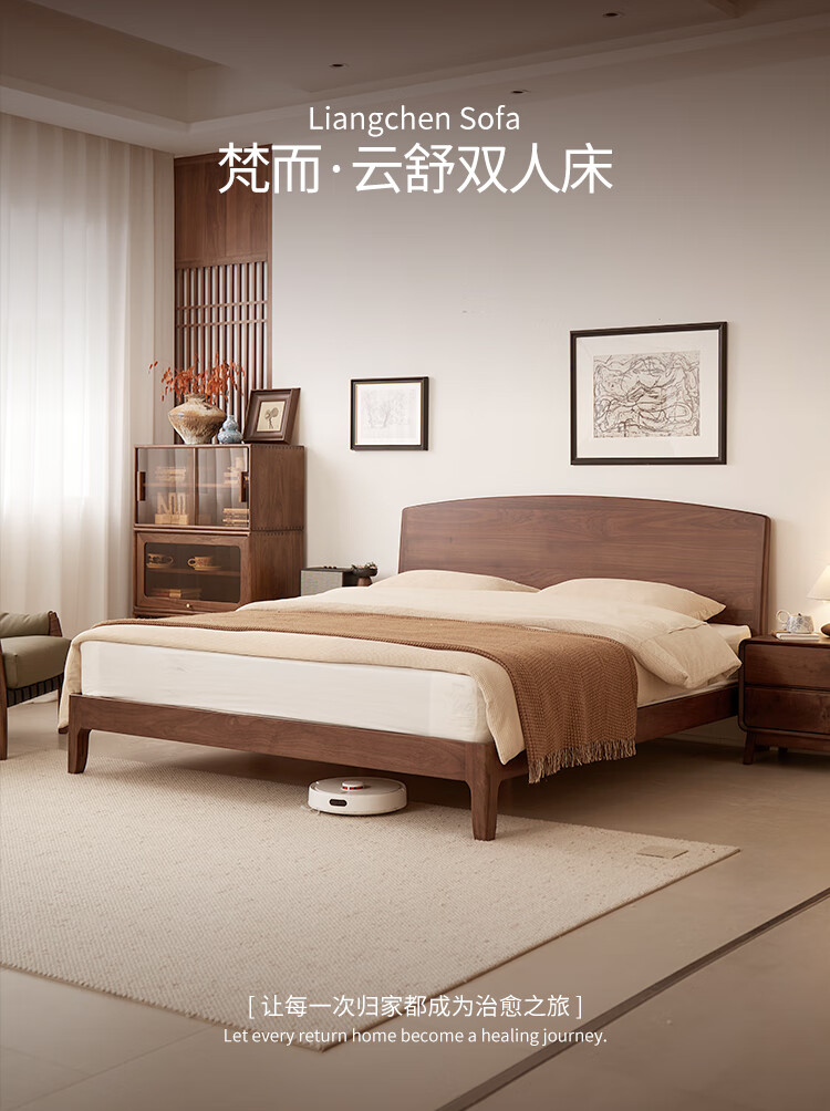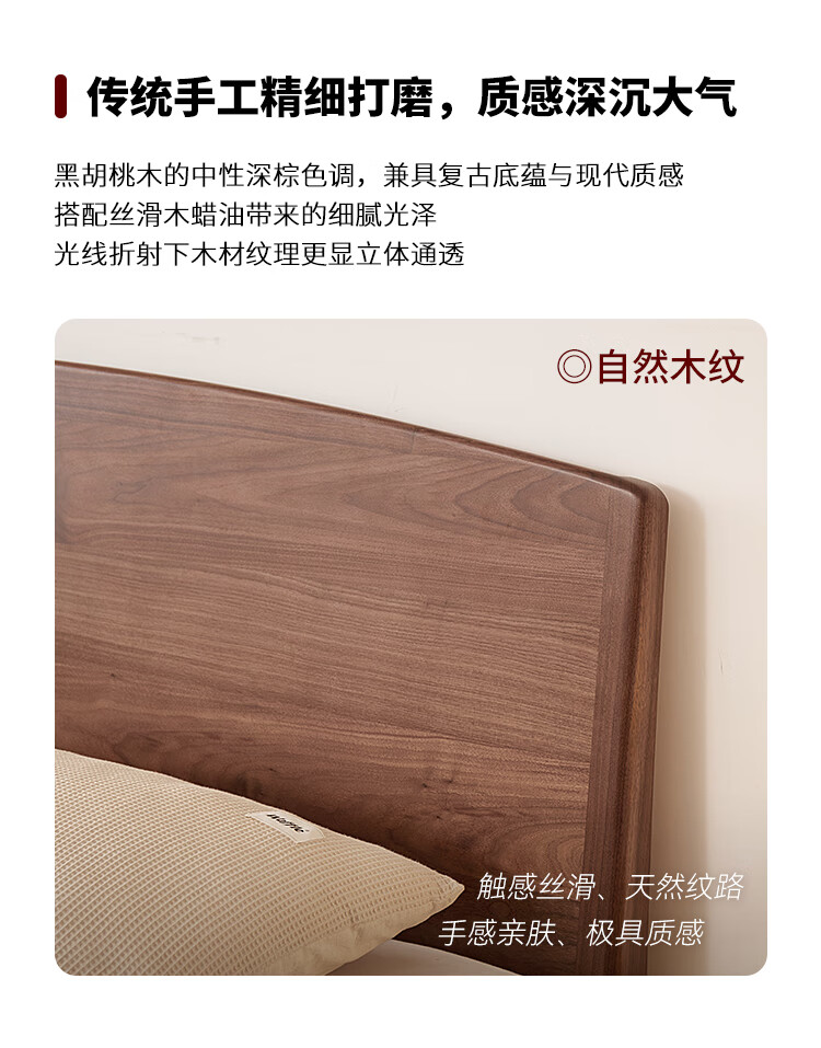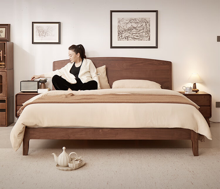 梵而全实木双人床北美黑胡桃家具小户型主卧双人2米大床1.5米单人床 云舒双人床·1.8m