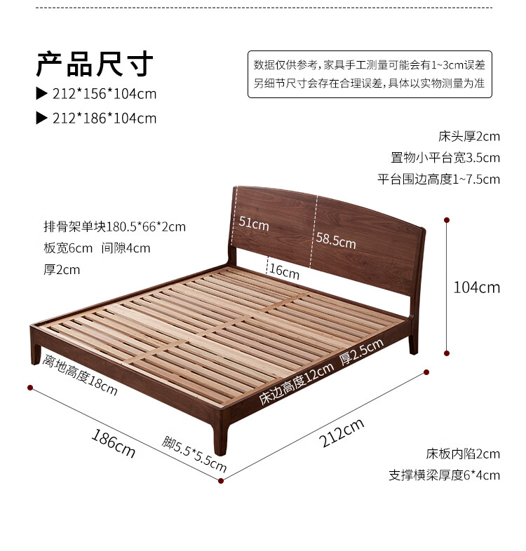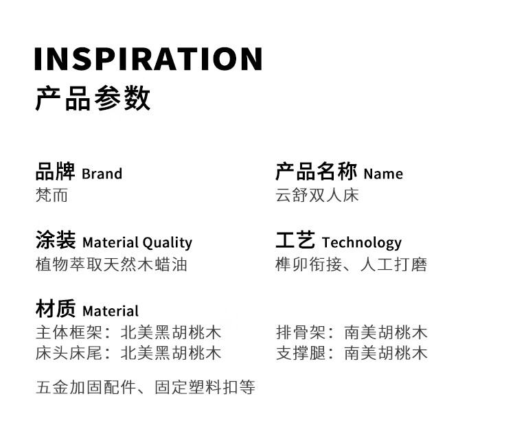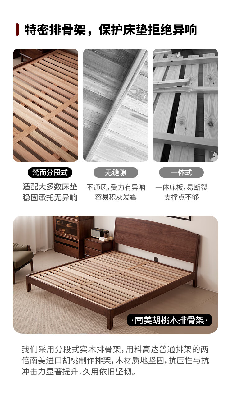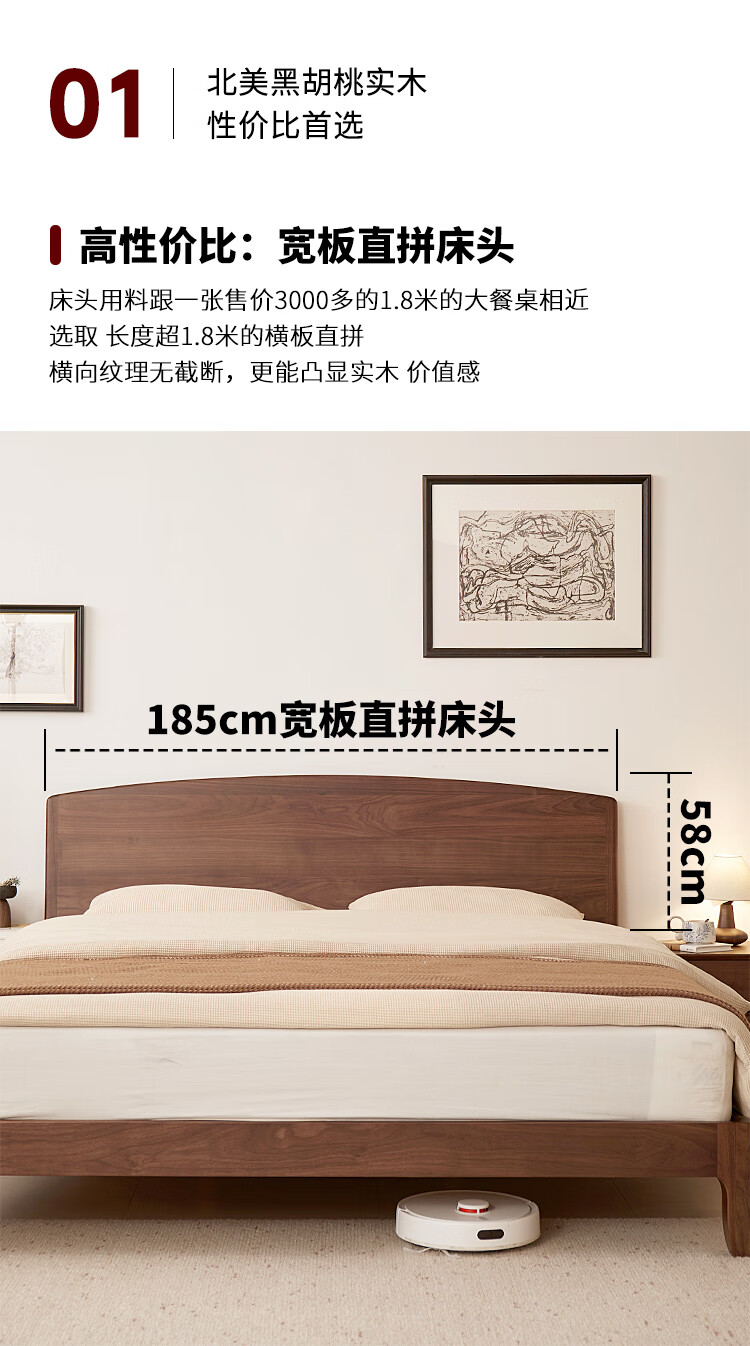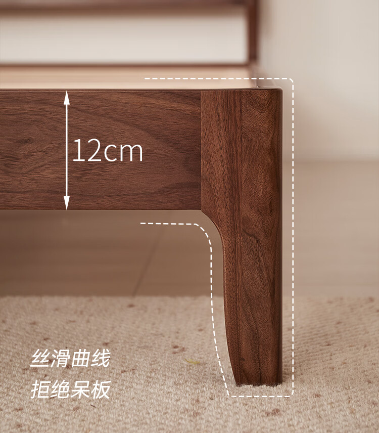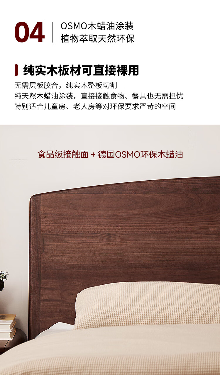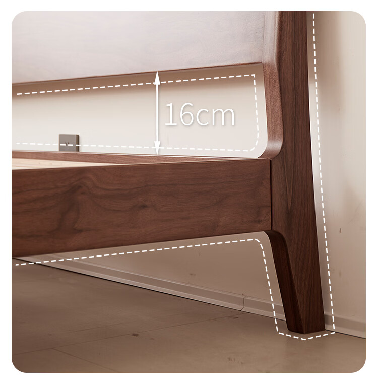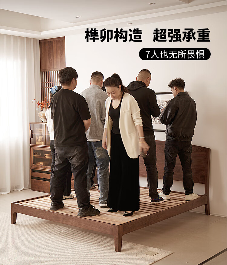 梵而全实木双人床北美黑胡桃家具小户型主卧双人2米大床1.5米单人床 云舒双人床·1.8m