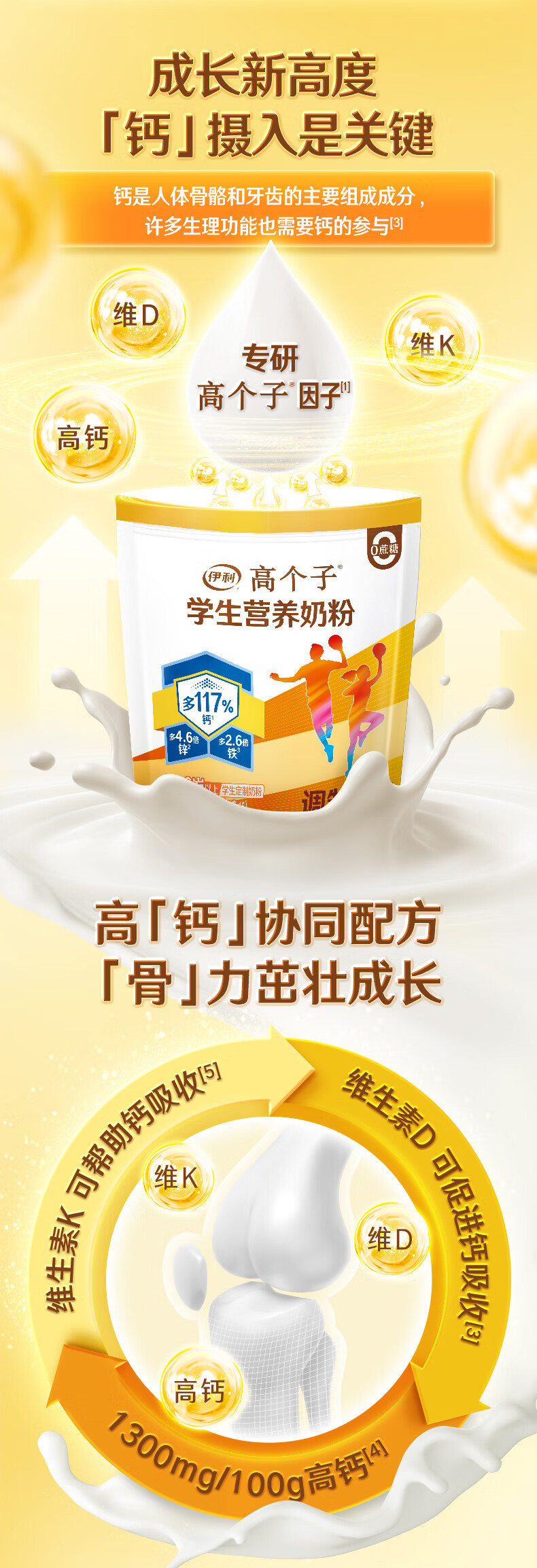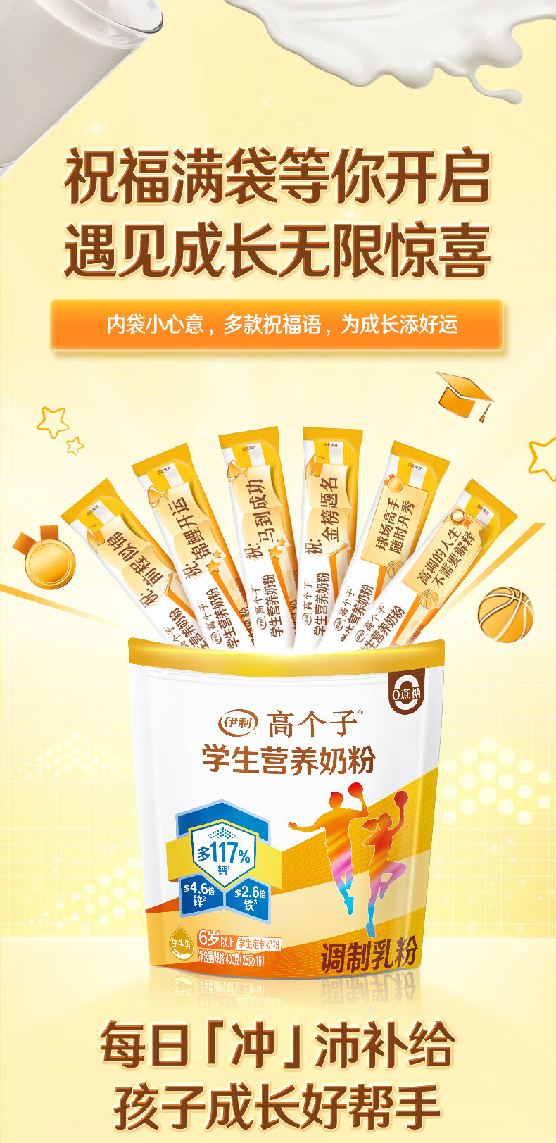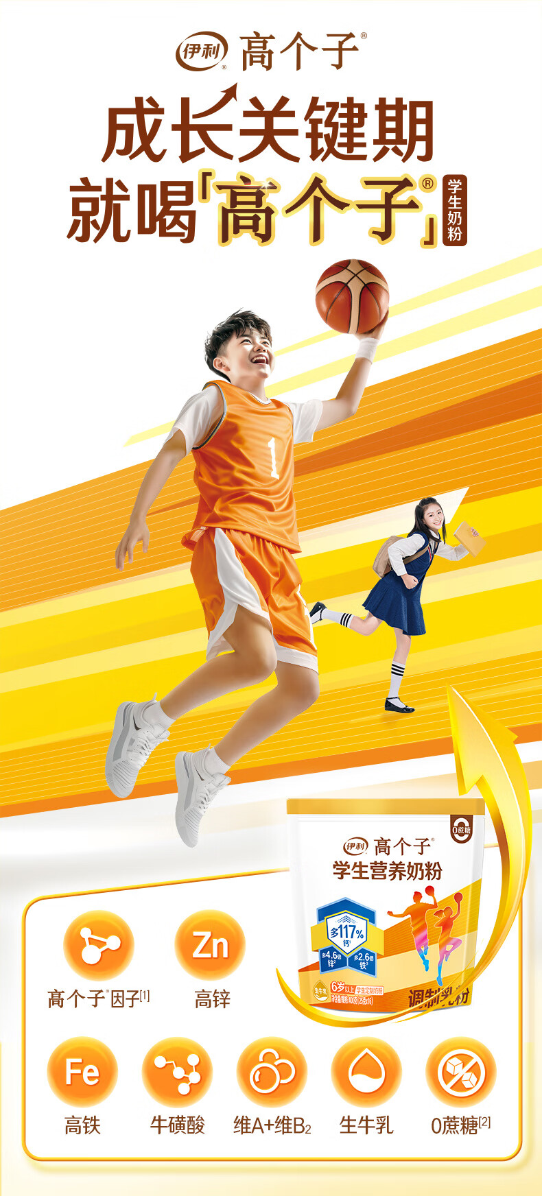 伊利高个子学生奶粉 营养高钙高锌高铁 奶粉儿童6-14岁 早餐冲饮 400g