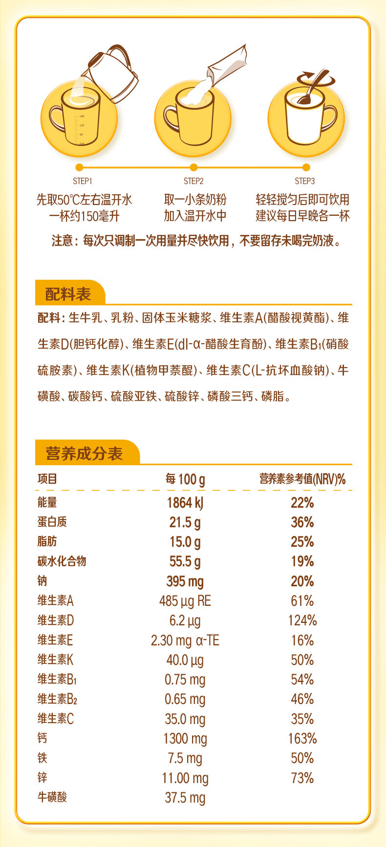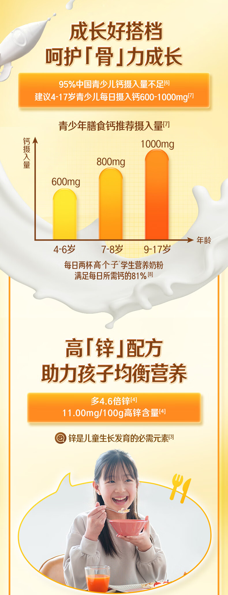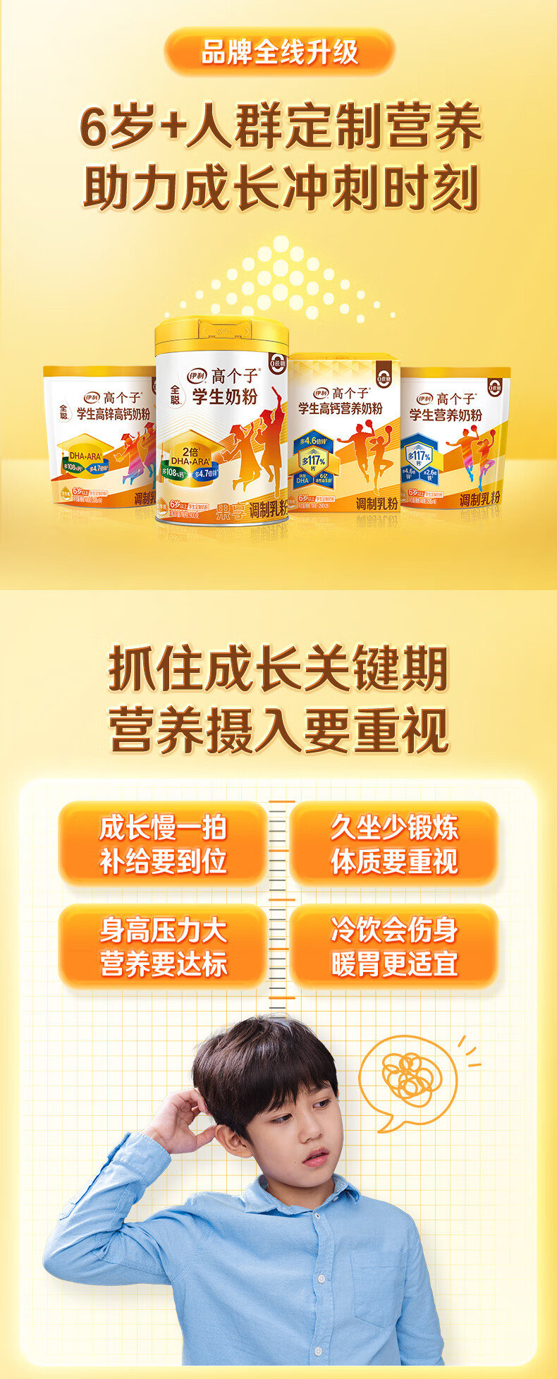 伊利高个子学生奶粉 营养高钙高锌高铁 奶粉儿童6-14岁 早餐冲饮 400g