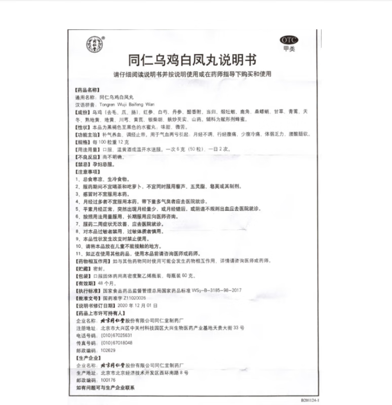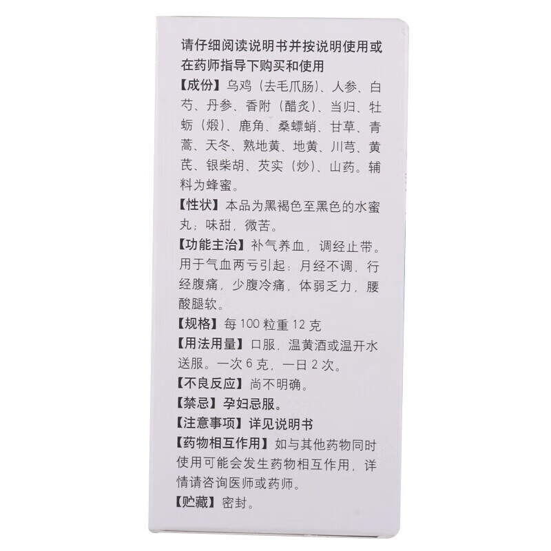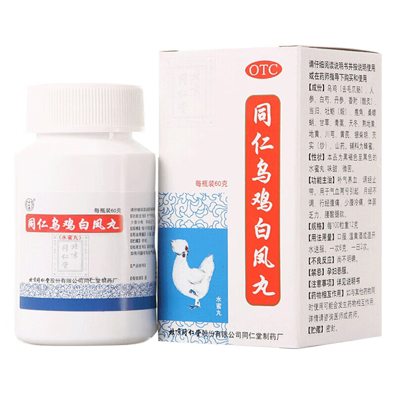 同仁堂同仁乌鸡白凤丸60g 补气养血 调经止带 气血不足 月经不调 行经腹痛 少腹冷痛 体弱乏力 腰酸腿软