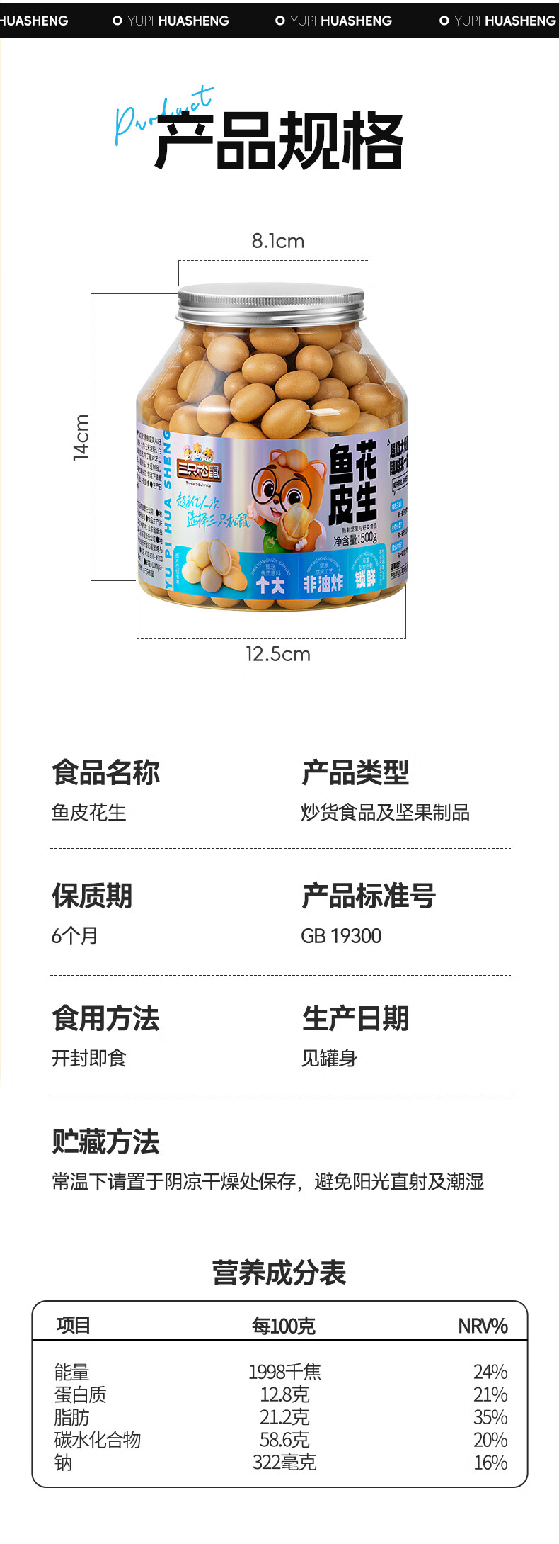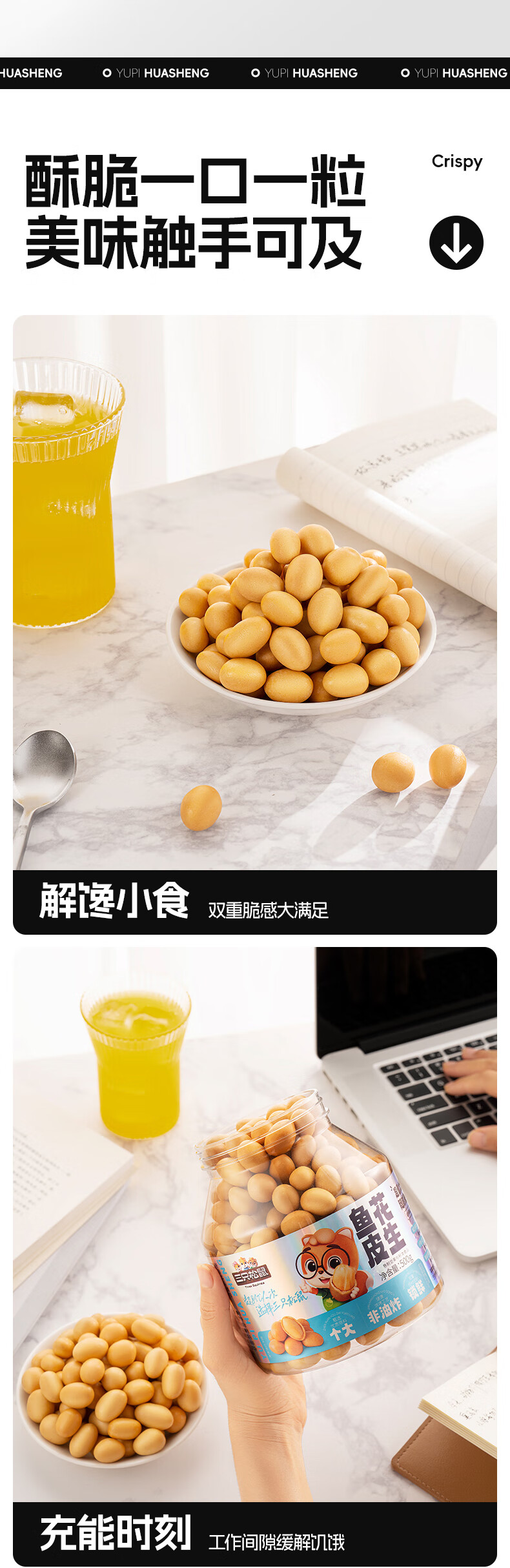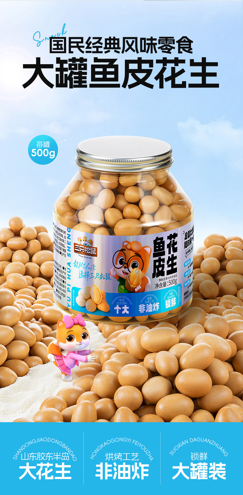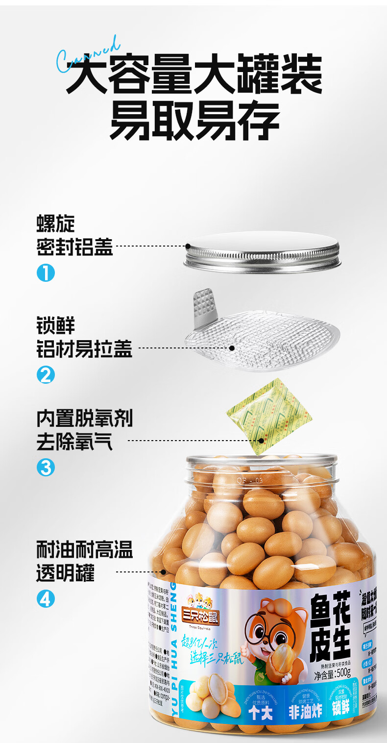 三只松鼠鱼皮花生500g/罐 坚果炒货花生米网红休闲零食