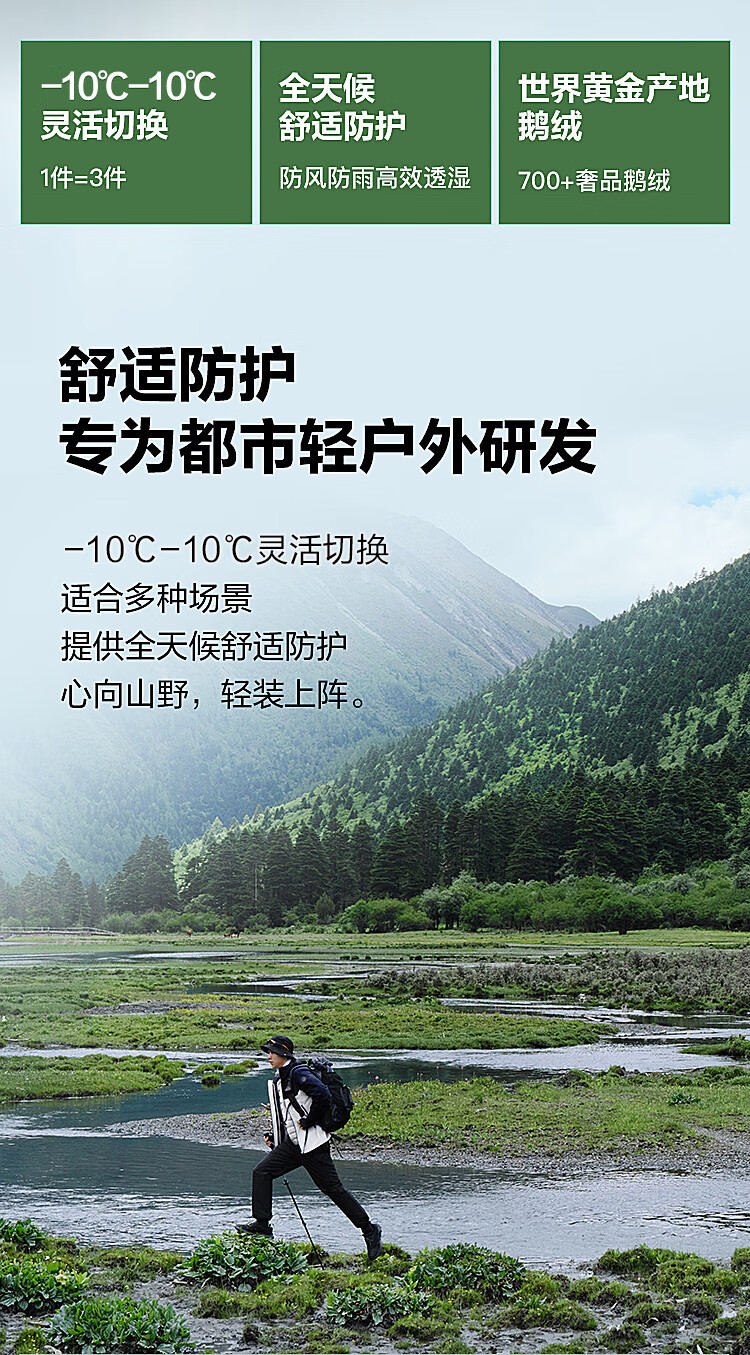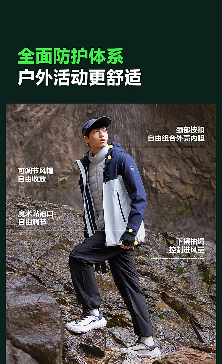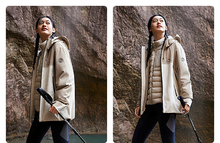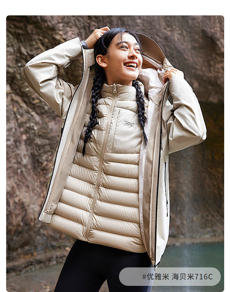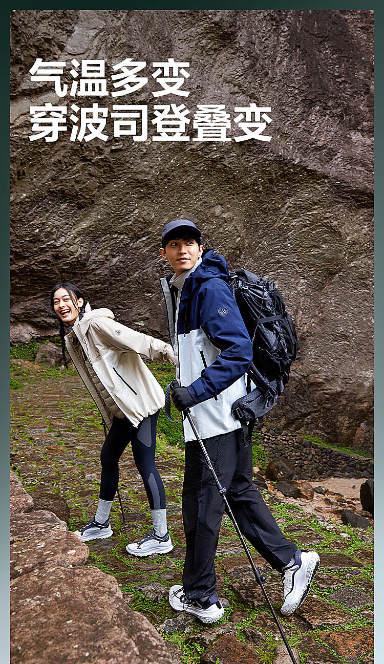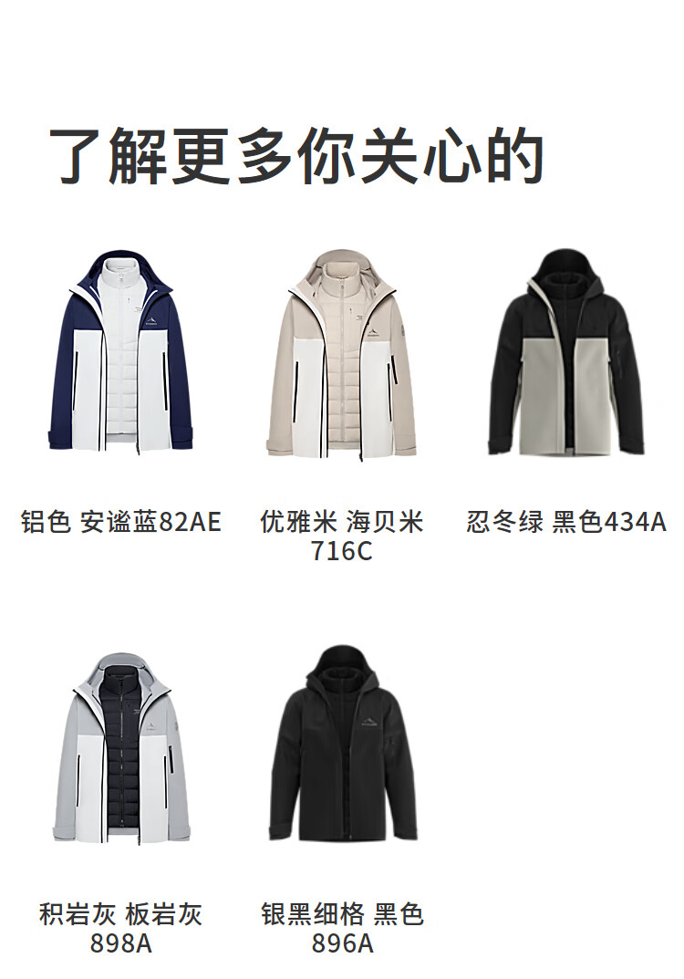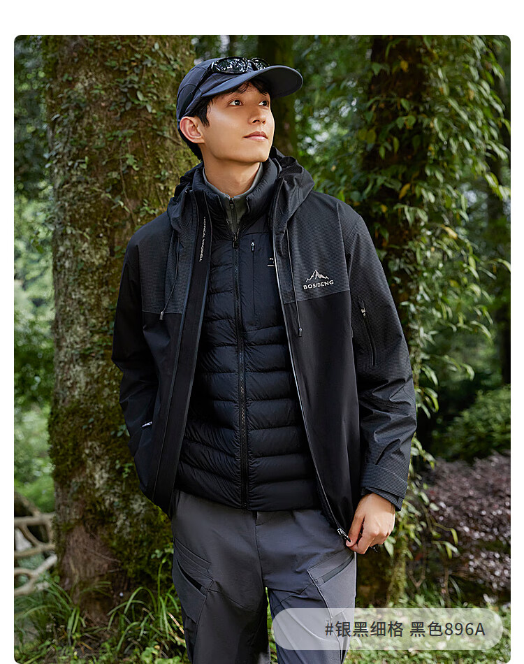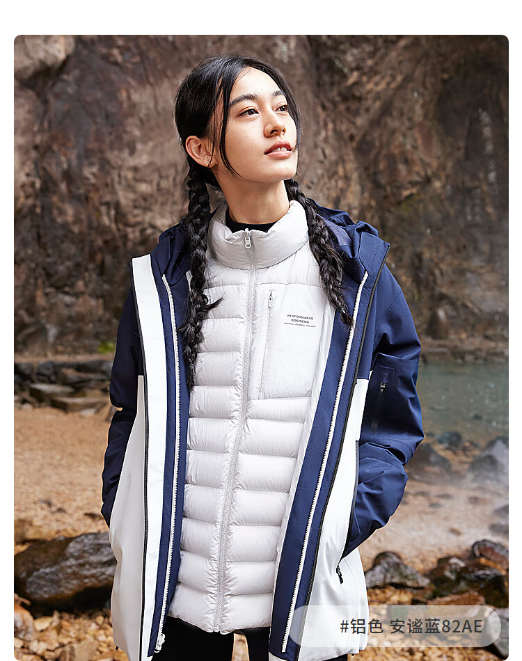 波司登(BOSIDENG)谷爱凌同款冲锋衣鹅绒羽绒服短款男女同款90绒三合一登山外套 积岩灰 板岩灰898A 175/96A