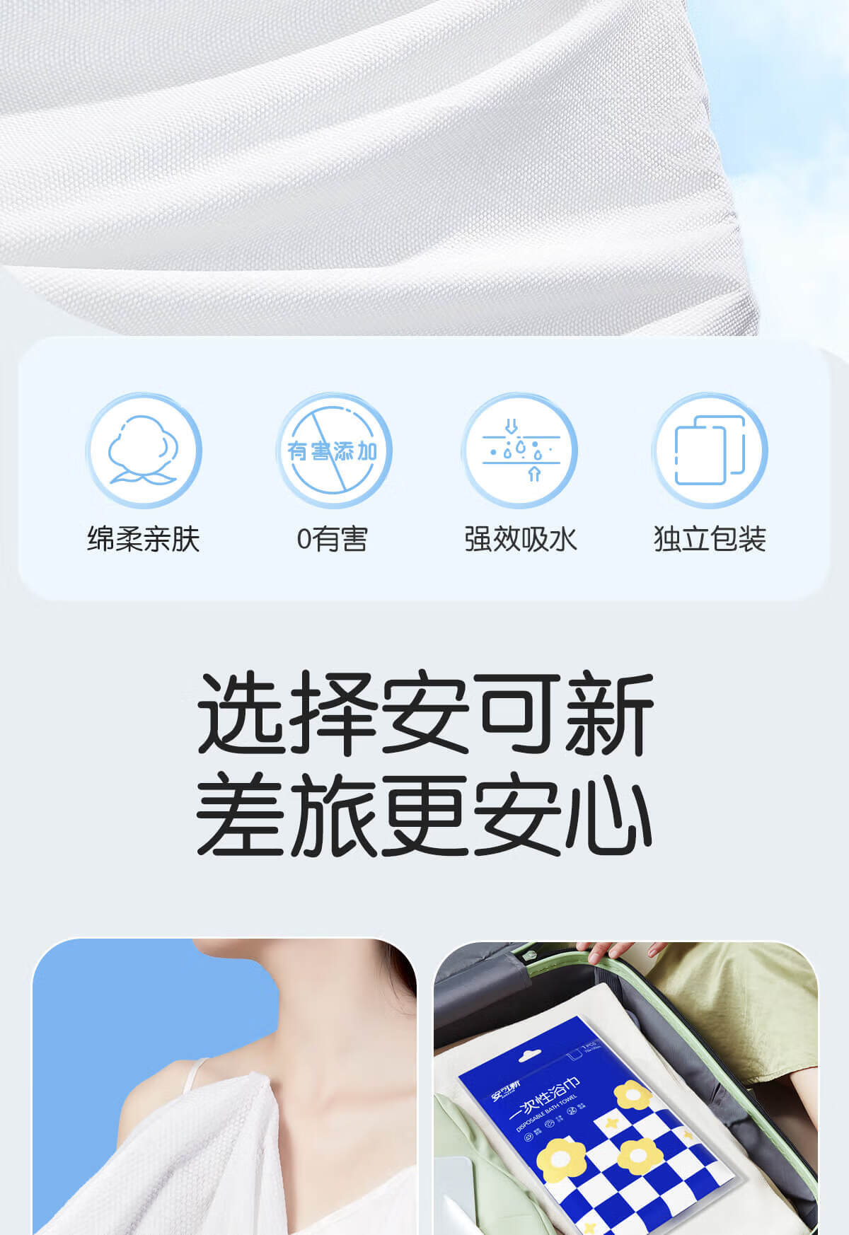 安可新一次性浴巾10条装加厚70*100cm 珍珠纹游泳旅游出行酒店便携毛巾