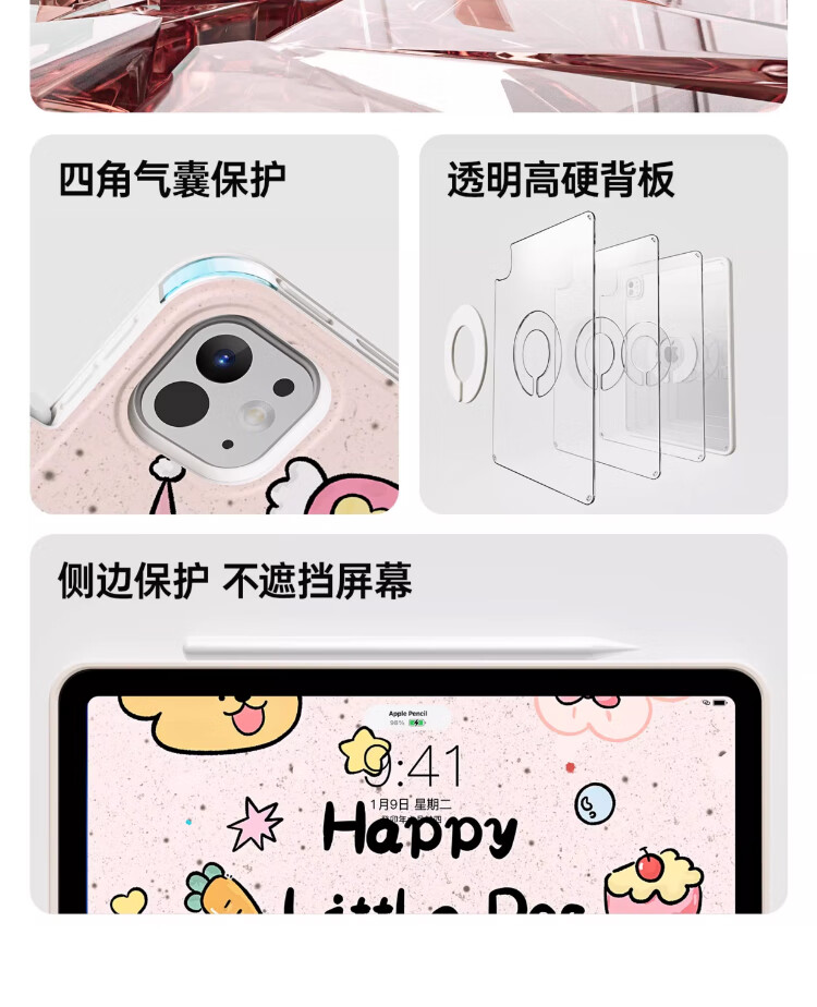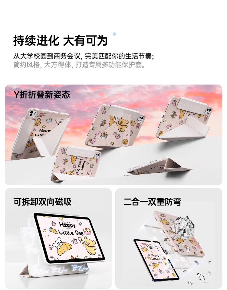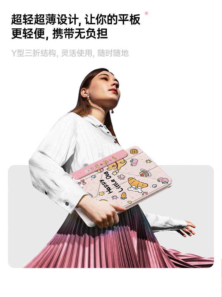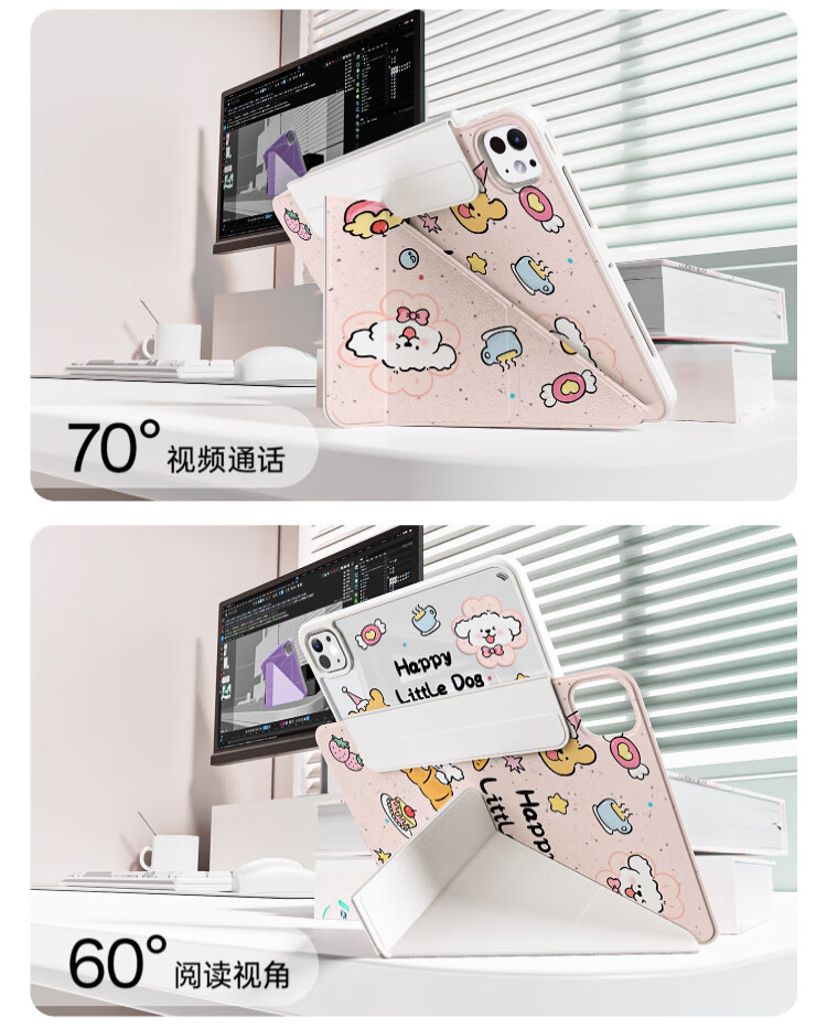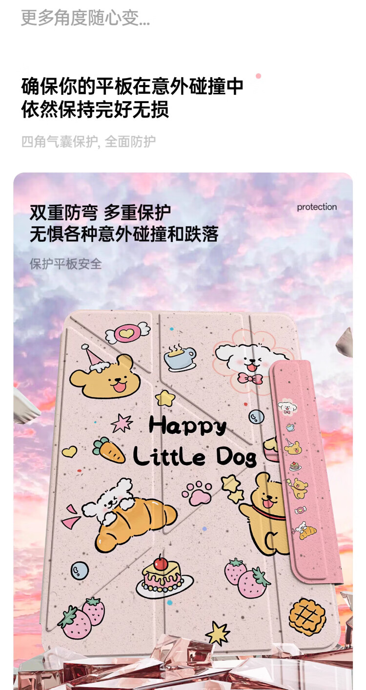 治霆适用iPad789平板保护套10.2英寸3Y折叠720°旋转磁吸可拆卸防弯硬壳-快乐粉狗