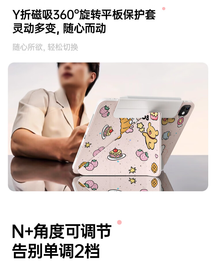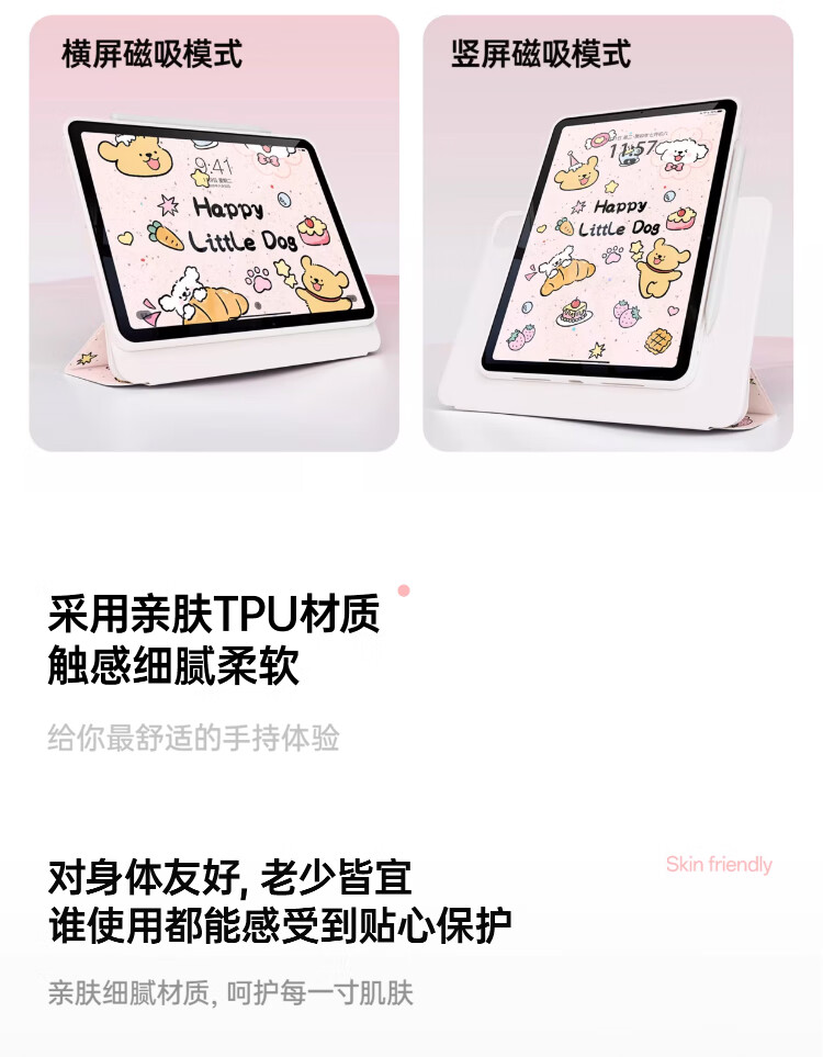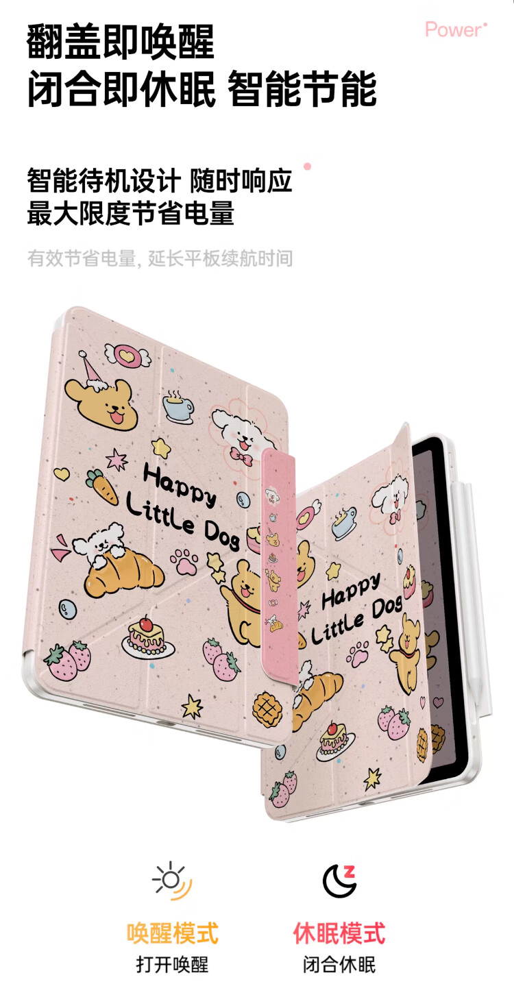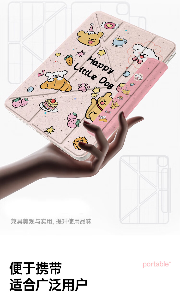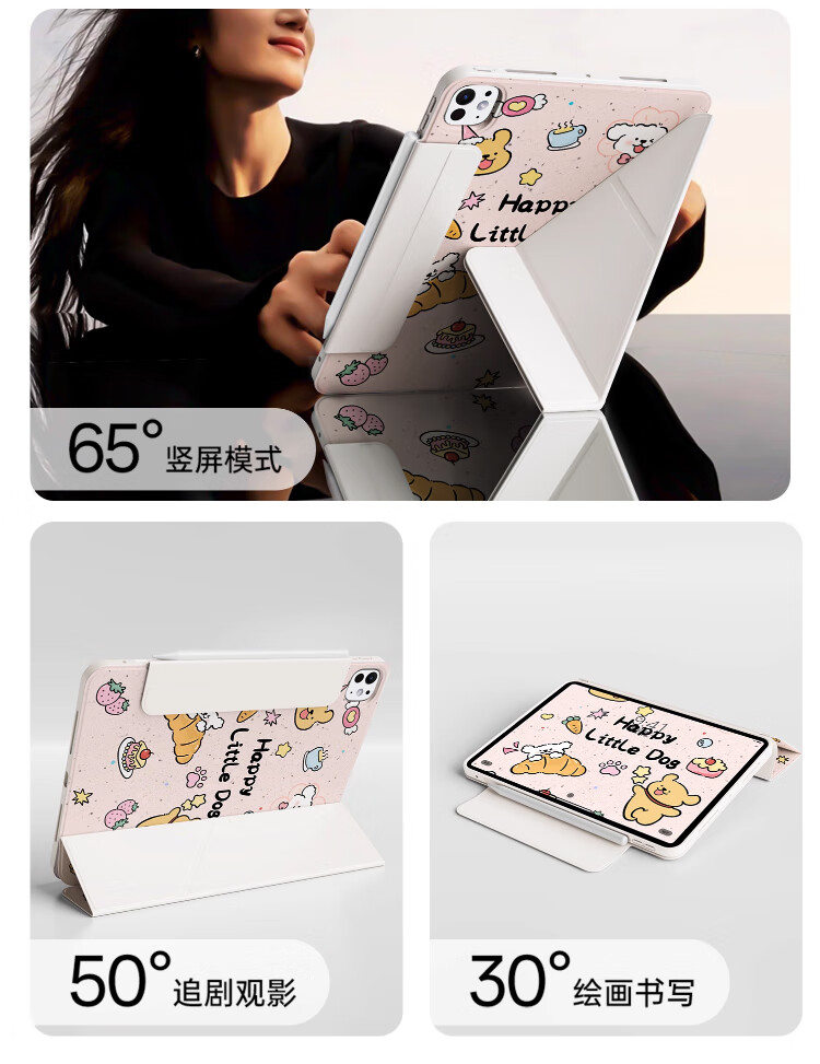 治霆适用iPad789平板保护套10.2英寸3Y折叠720°旋转磁吸可拆卸防弯硬壳-快乐粉狗