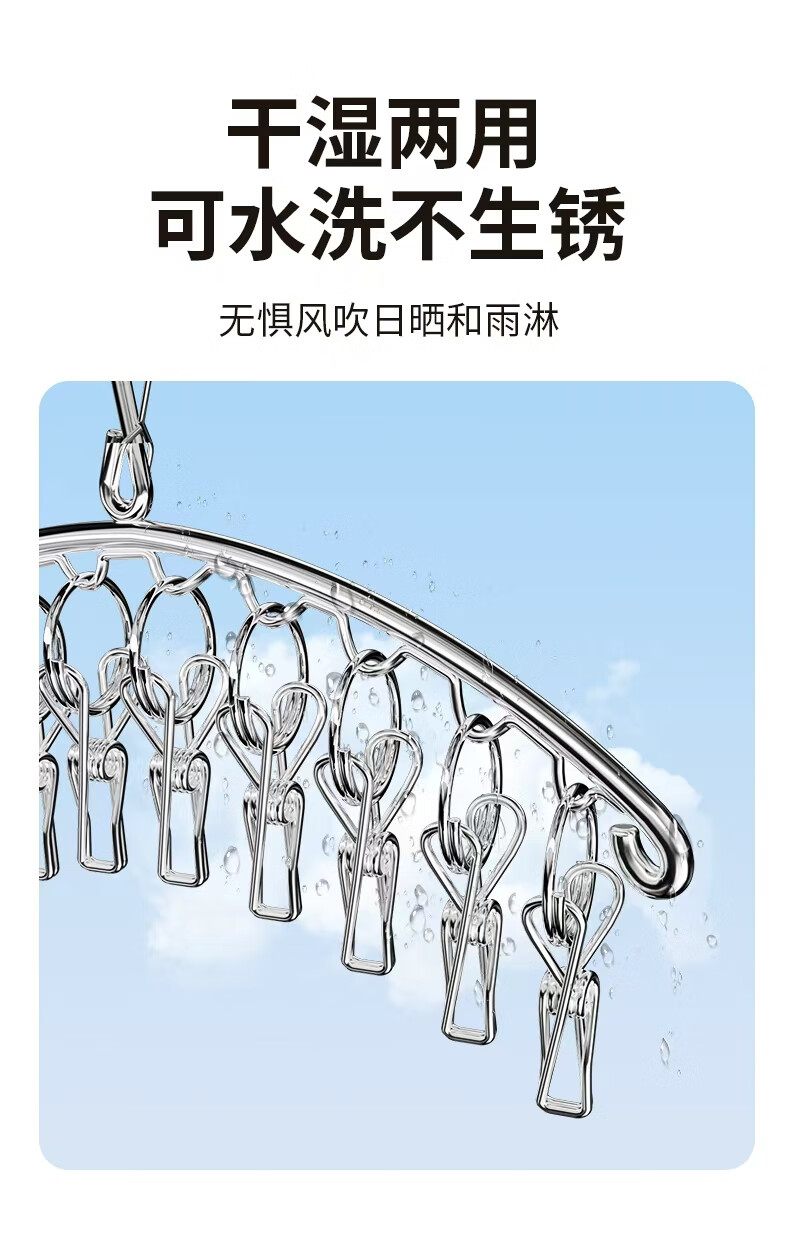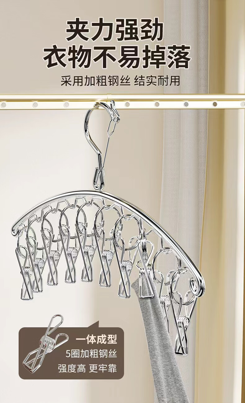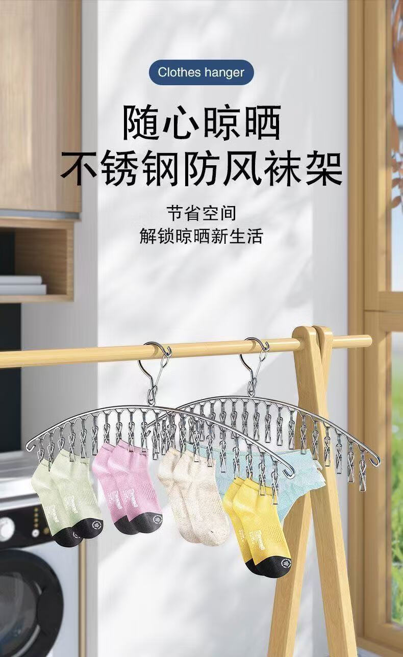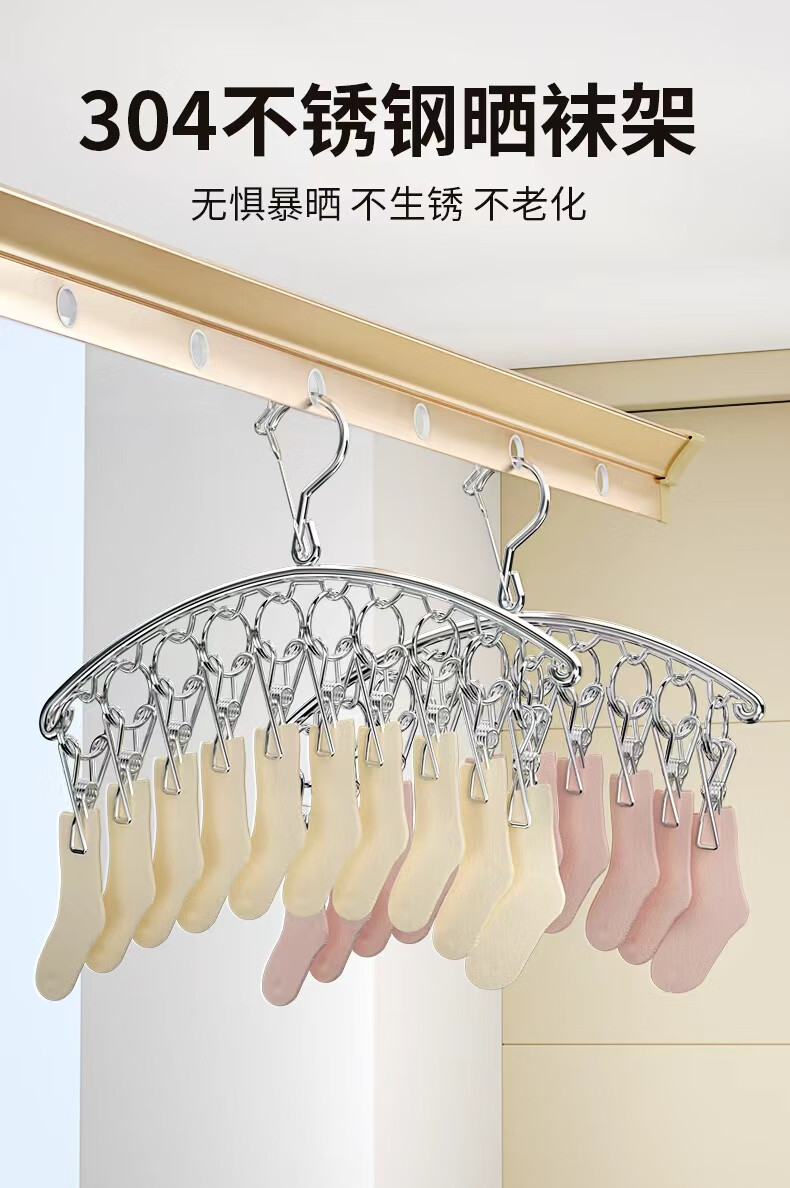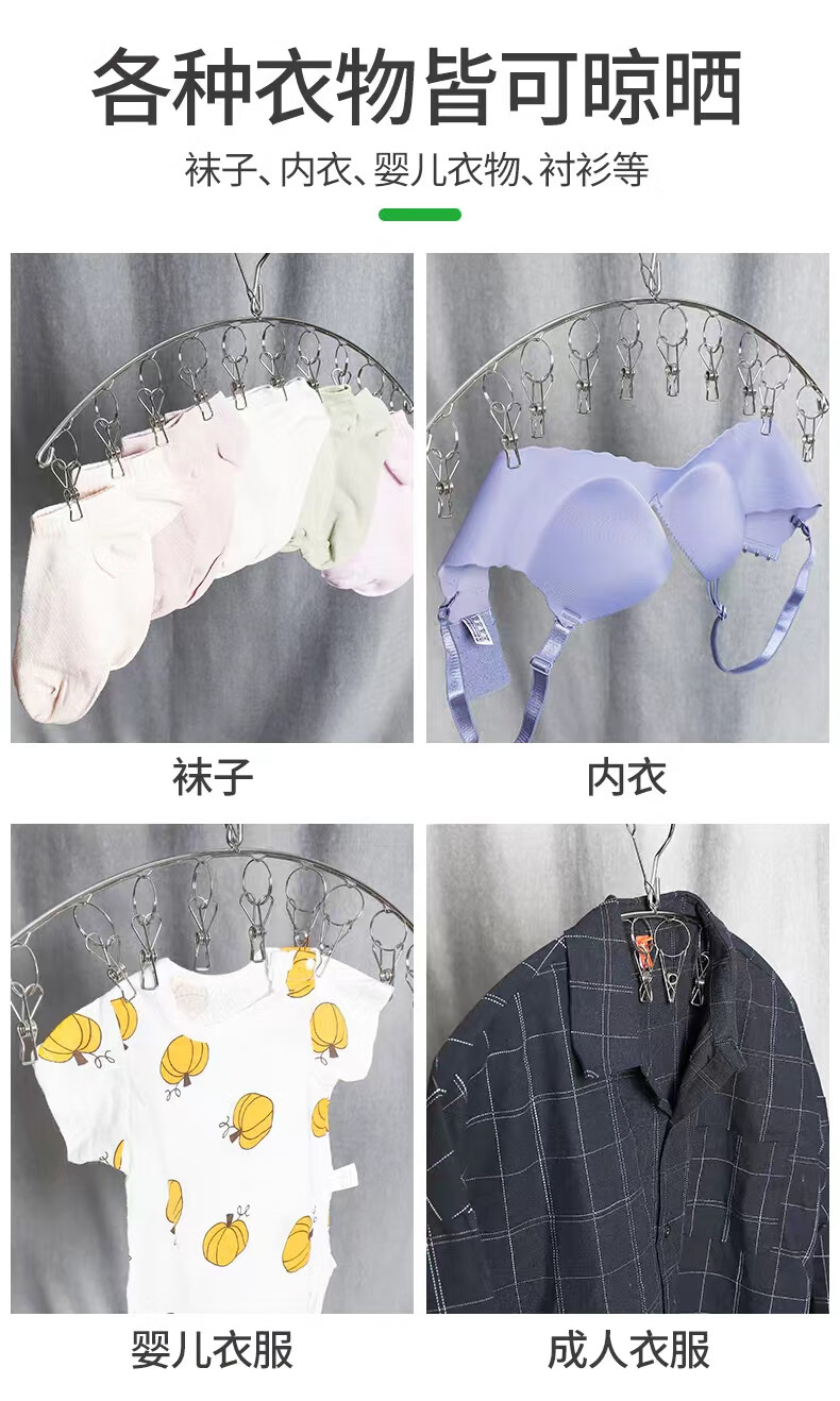 不锈钢晾衣架袜子夹内衣夹防风弧形家用收纳晾晒衣架晒挂架晾袜子晾内衣神器 防风弧形晾干衣夹【10夹】 1L 【活动专属】