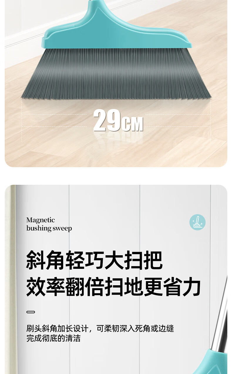 知本熊扫把套装大簸箕家用扫帚组合笤帚撮箕魔术扫地 轻奢绿单独扫把 1个