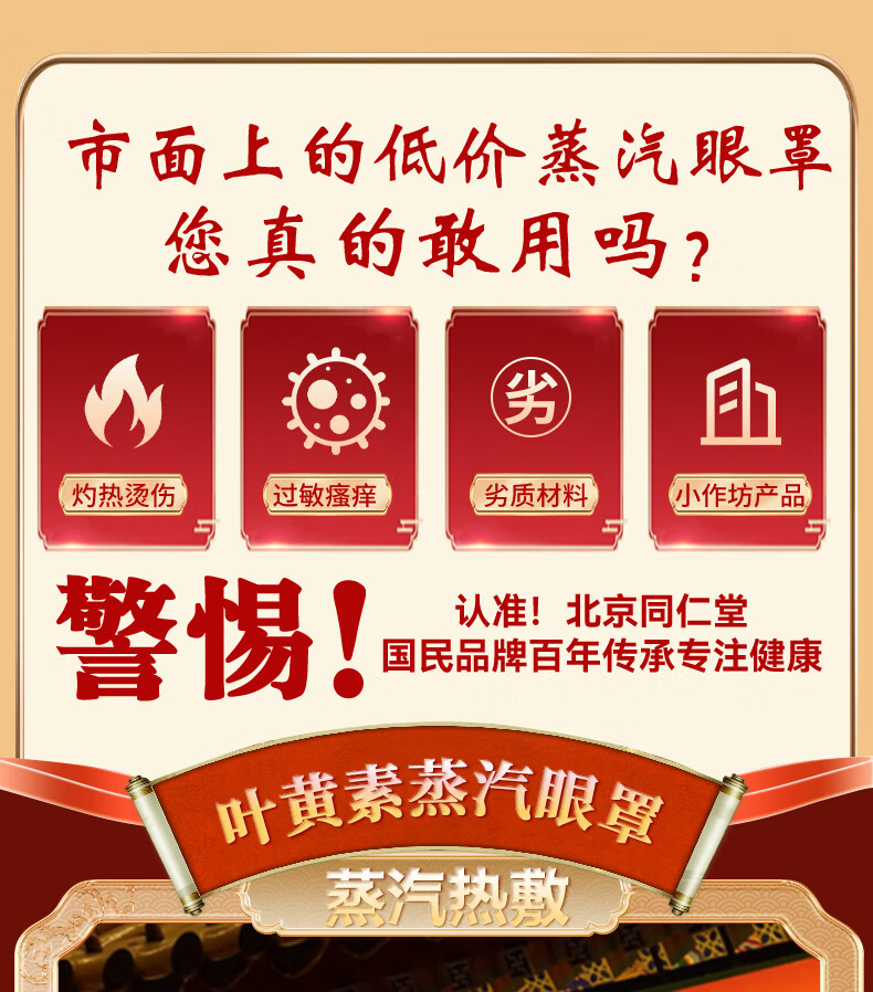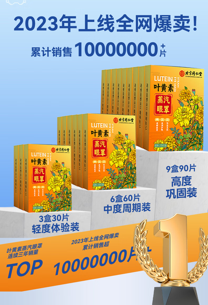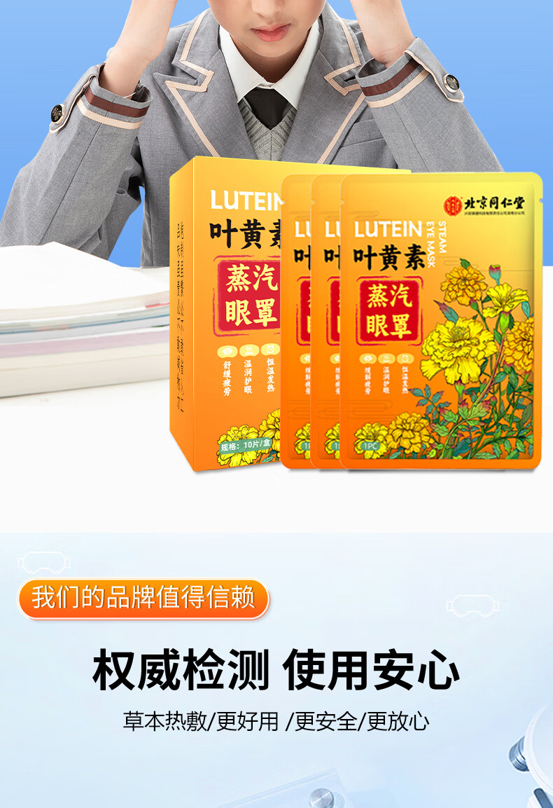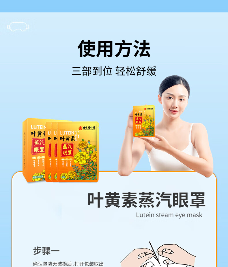 内廷上用北京同仁堂叶黄素蒸汽眼罩缓解眼疲劳黑眼圈自发热睡眠护眼贴30片