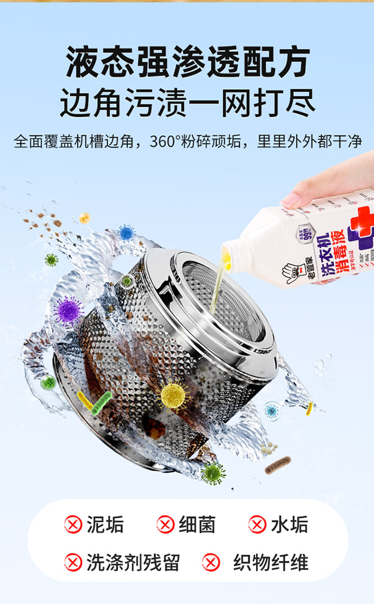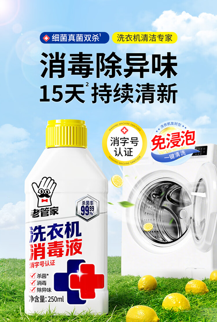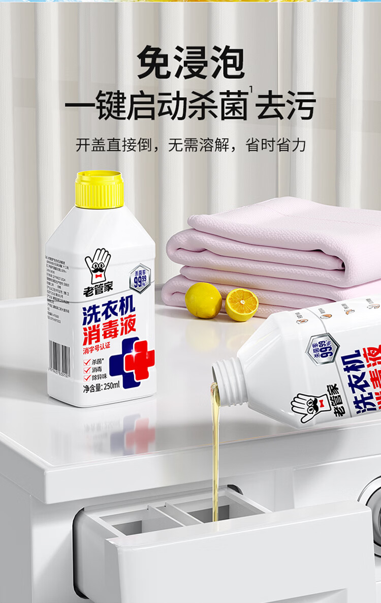 老管家洗衣机清洗剂消毒液 滚筒波轮洗衣机消毒杀菌清洁剂除垢除味250ml 2瓶装【抖音爆款同款】