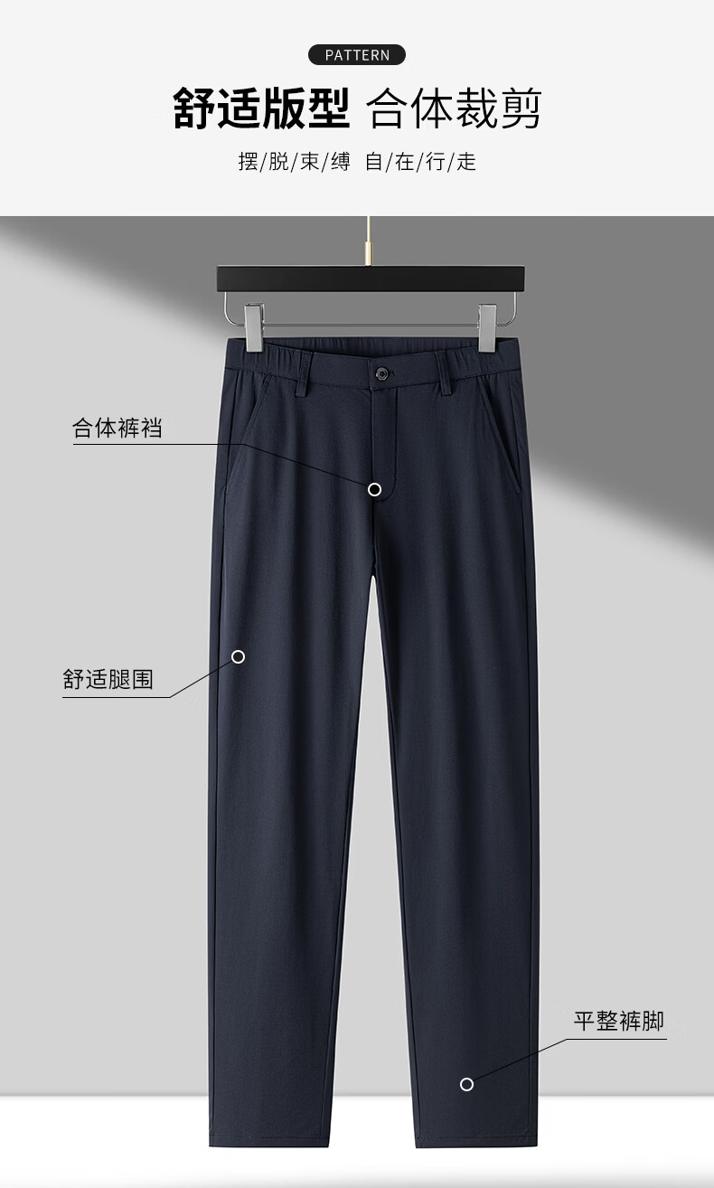 SHANSHAN杉杉【锦氨弹力】长裤子2026春季轻薄口袋透气亲肤休闲直筒 蓝色 29 /160