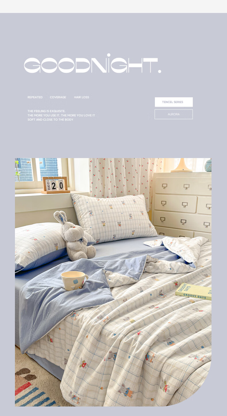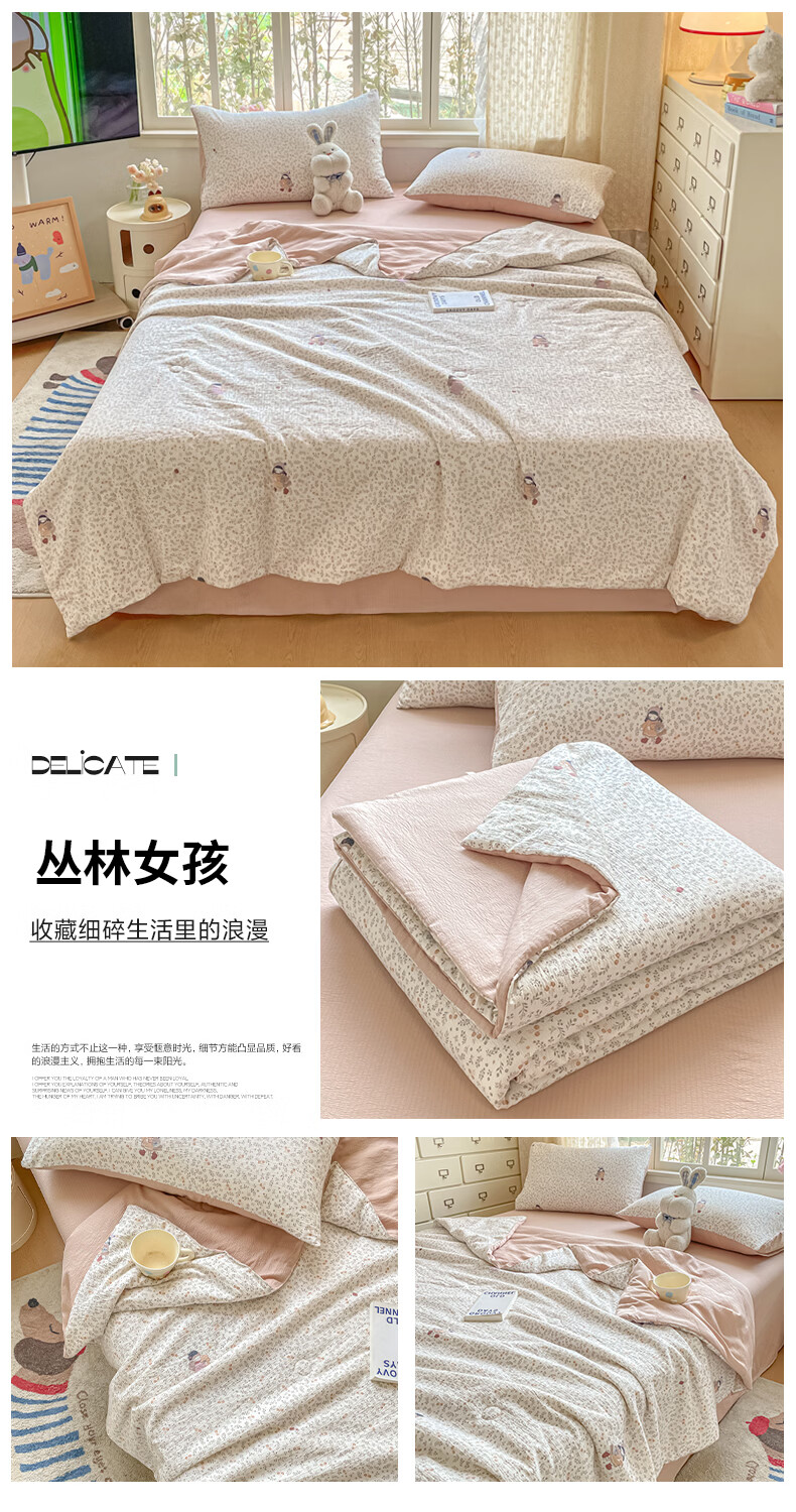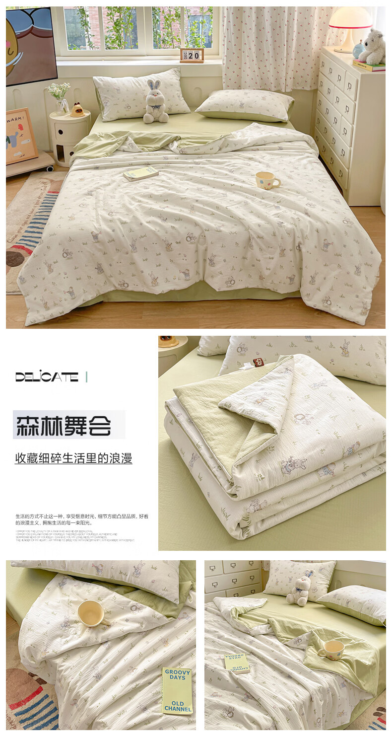苏萱2026新款热卖水洗冰丝夏被四件套夏季夏凉被空调被可机水洗单双人 亚丁绿+冰川灰 单人夏被-150*200cm