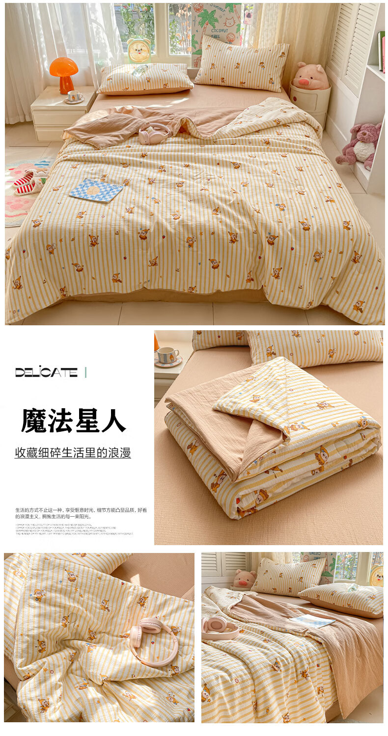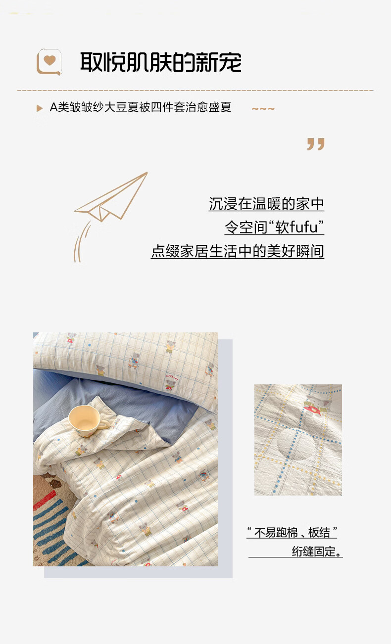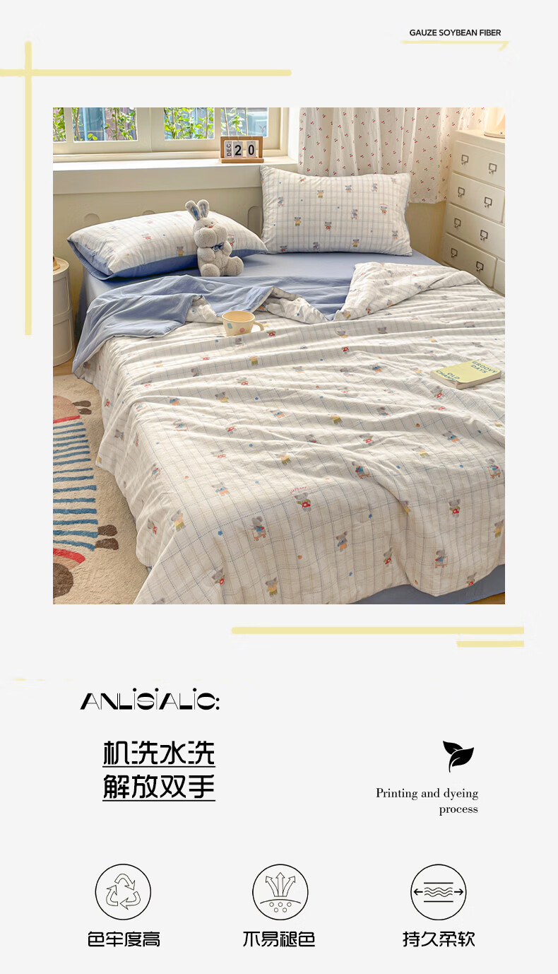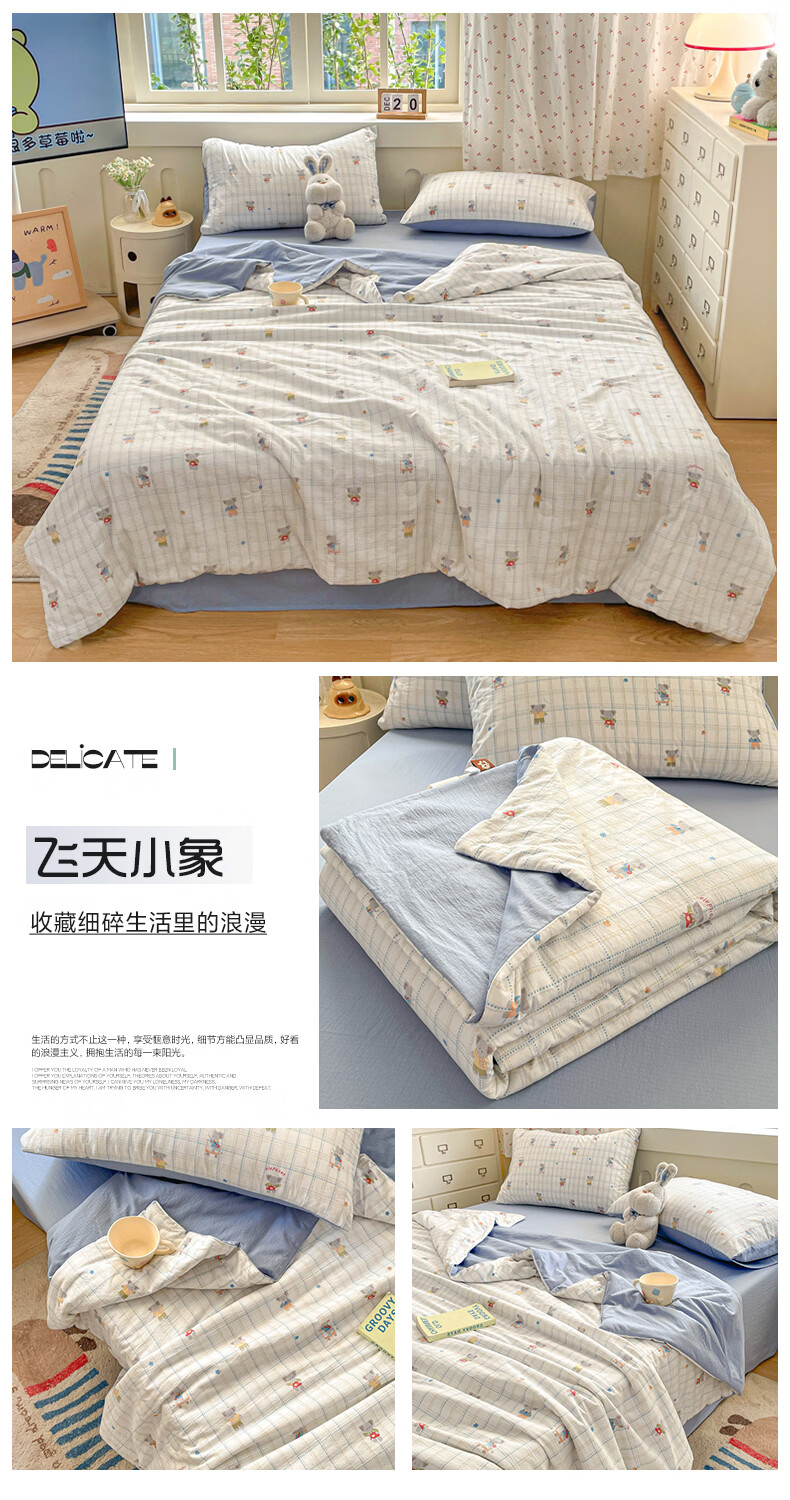 无印良品皱皱纱大豆被空调被可机洗裸睡夏凉被夏季单人被子薄款夏被四件套 飞天小象【不易闷热 舒爽透气】 150x200cm单夏被