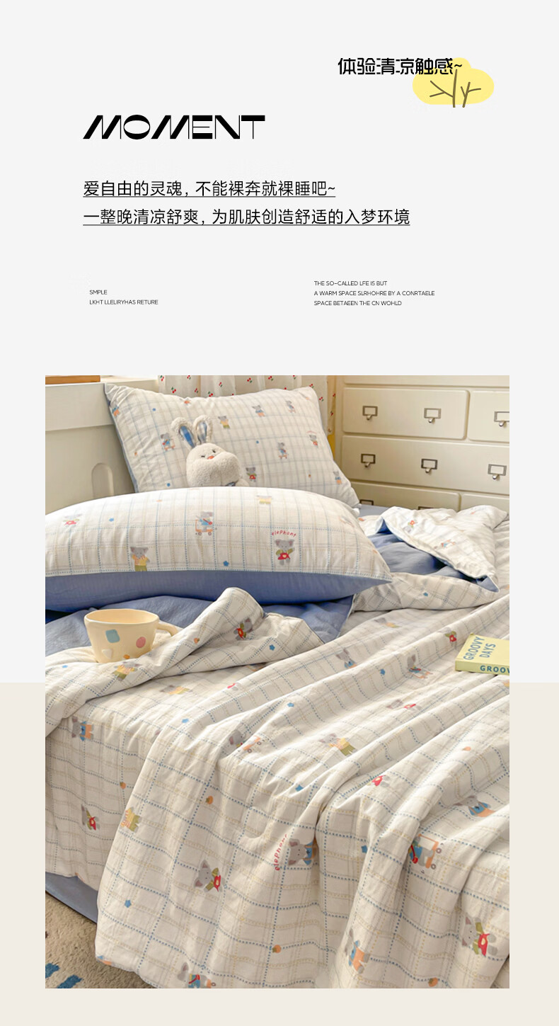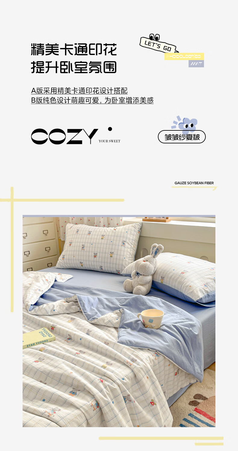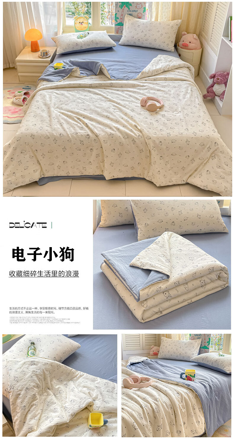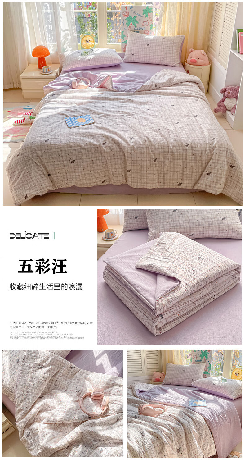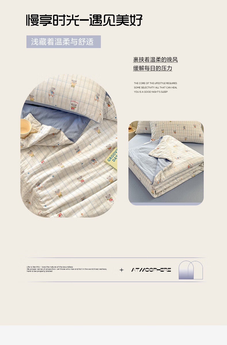 无印良品皱皱纱大豆被空调被可机洗裸睡夏凉被夏季单人被子薄款夏被四件套 飞天小象【不易闷热 舒爽透气】 150x200cm单夏被