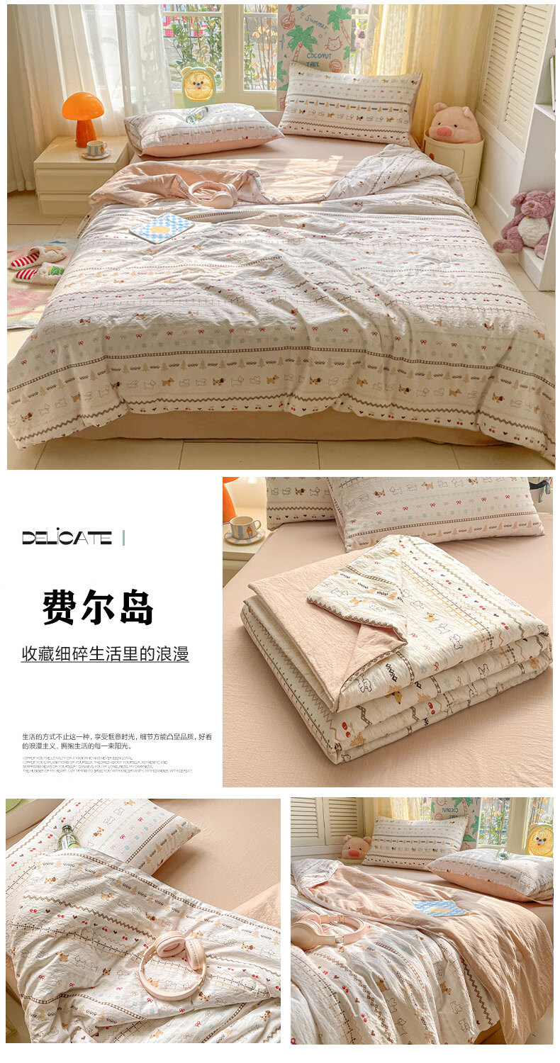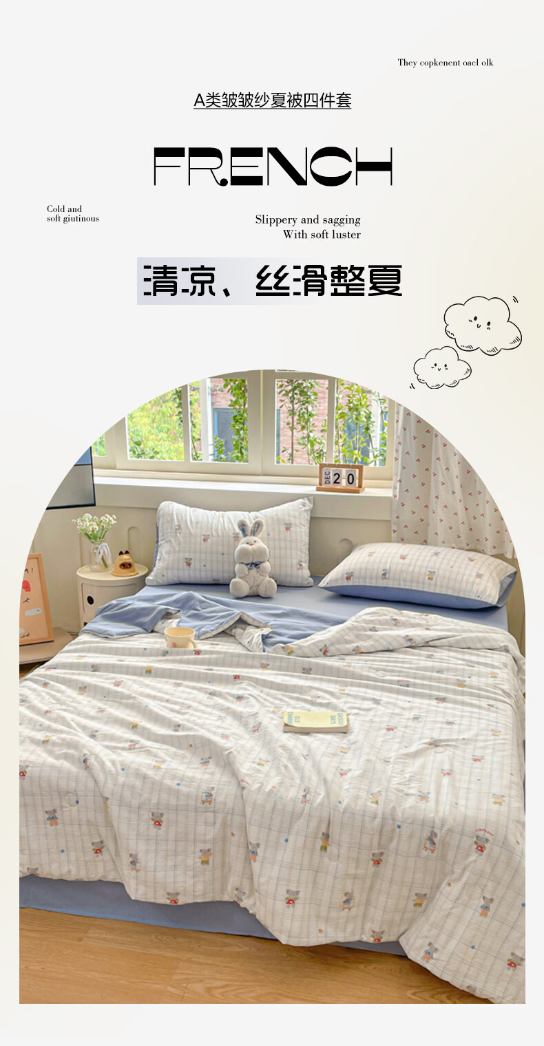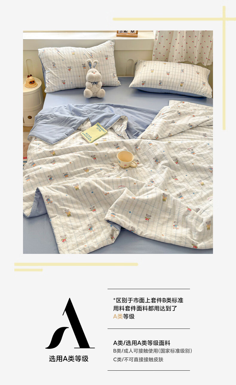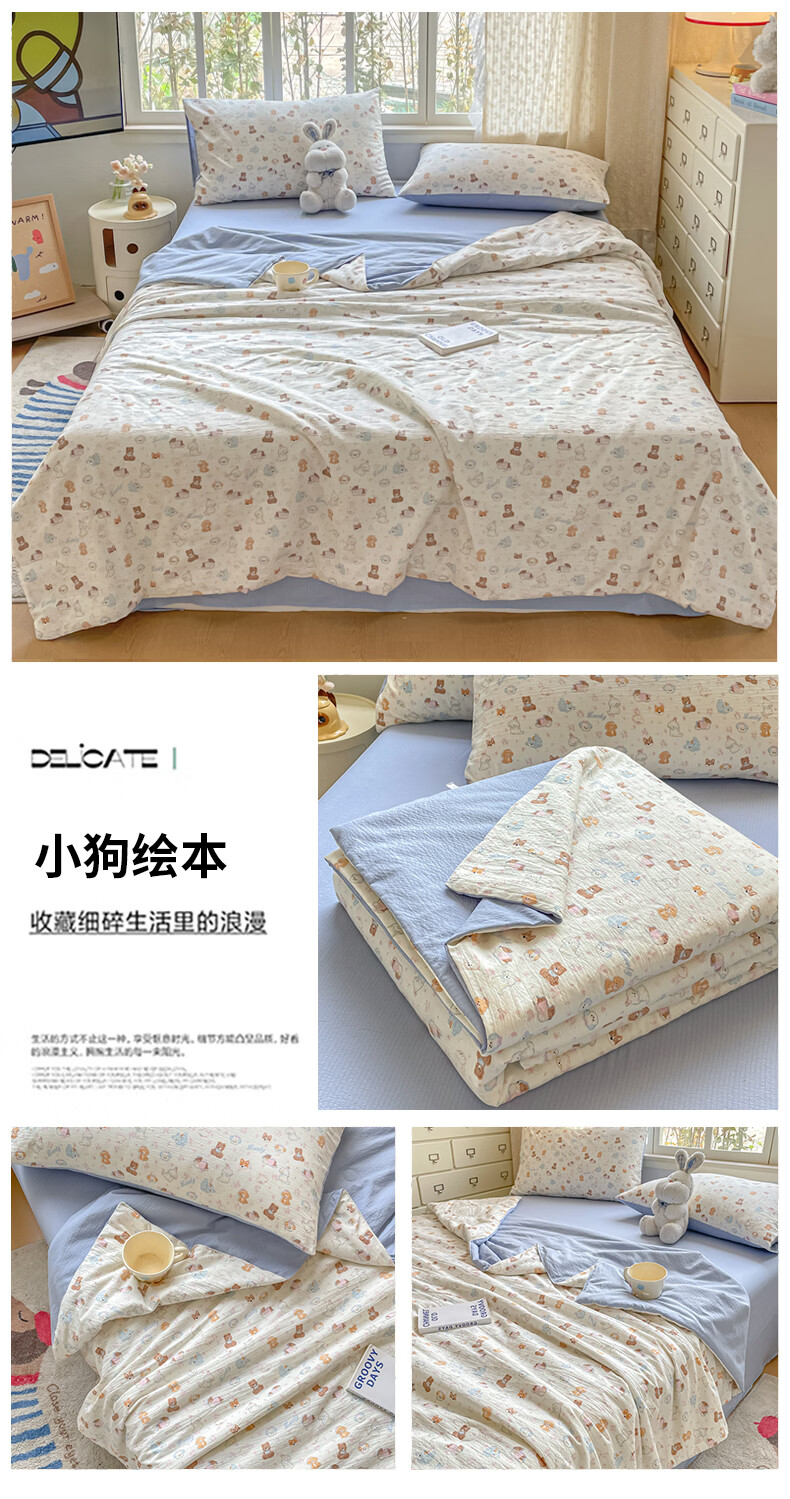 无印良品皱皱纱大豆被空调被可机洗裸睡夏凉被夏季单人被子薄款夏被四件套 飞天小象【不易闷热 舒爽透气】 150x200cm单夏被