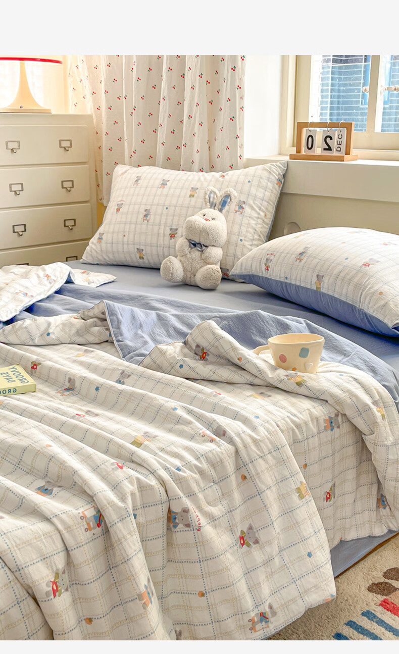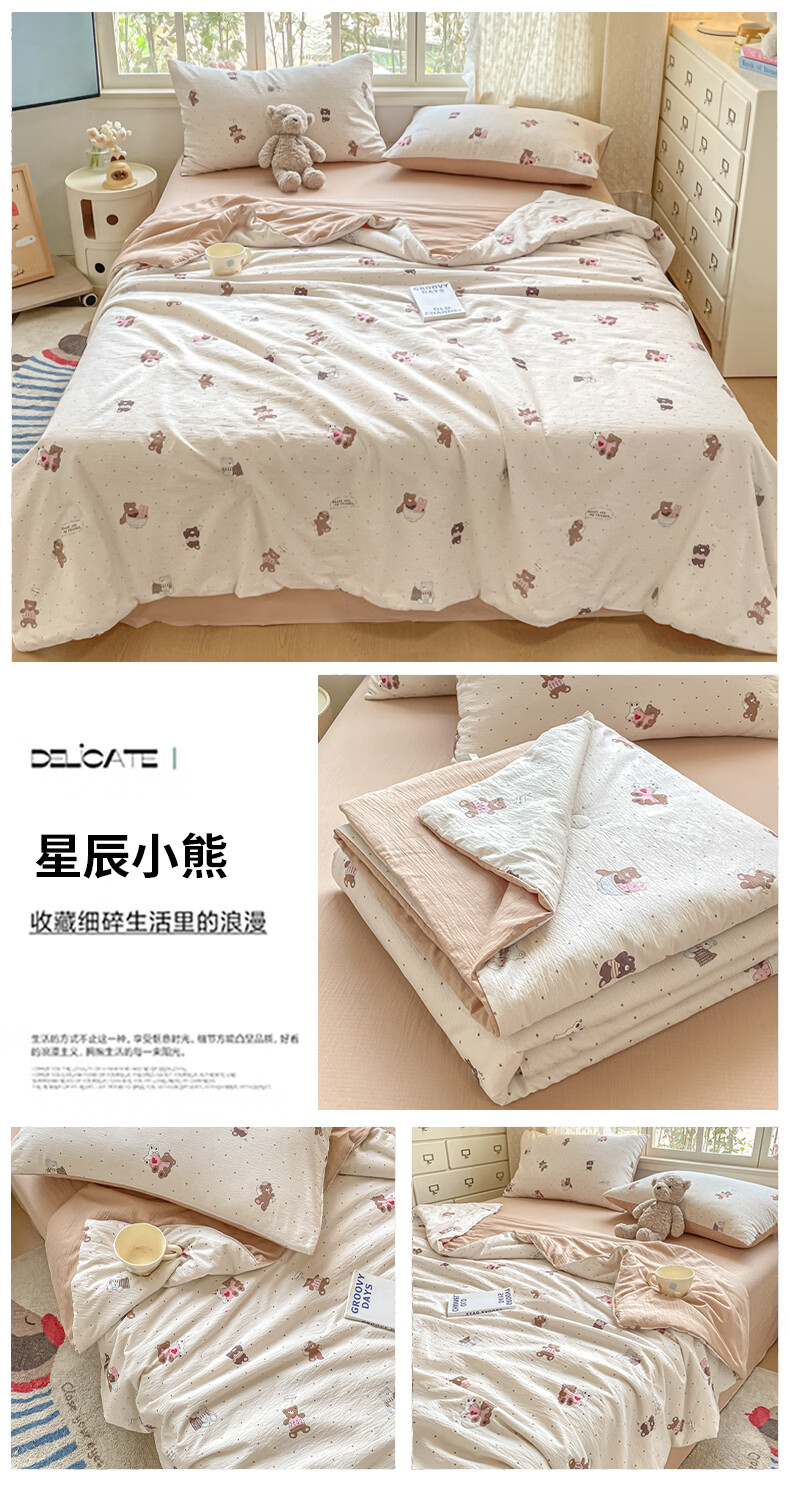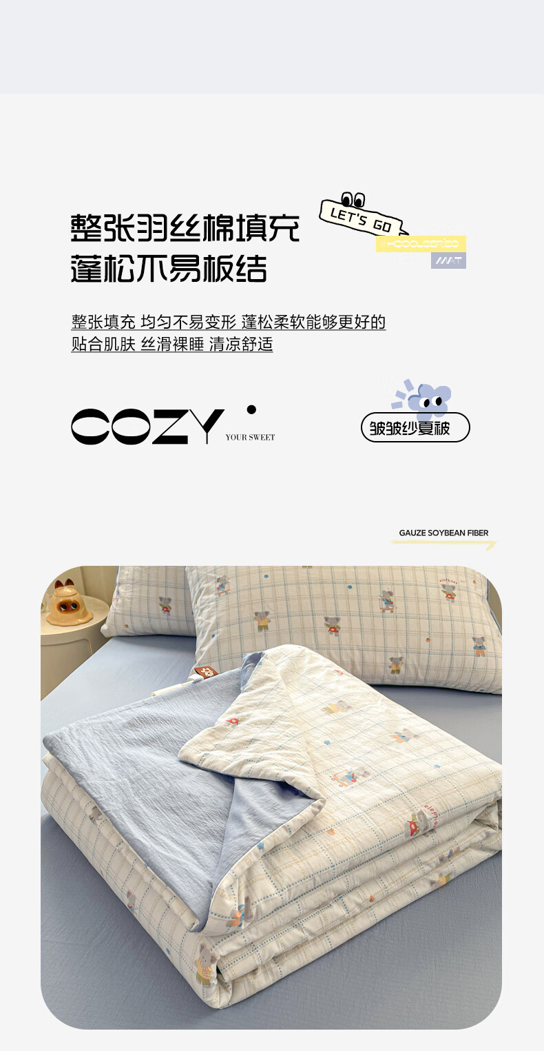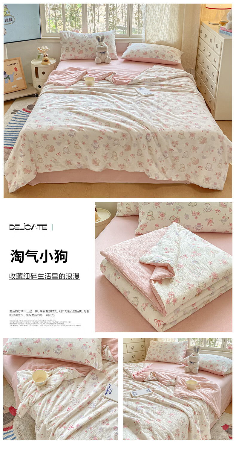 无印良品皱皱纱大豆被空调被可机洗裸睡夏凉被夏季单人被子薄款夏被四件套 飞天小象【不易闷热 舒爽透气】 150x200cm单夏被