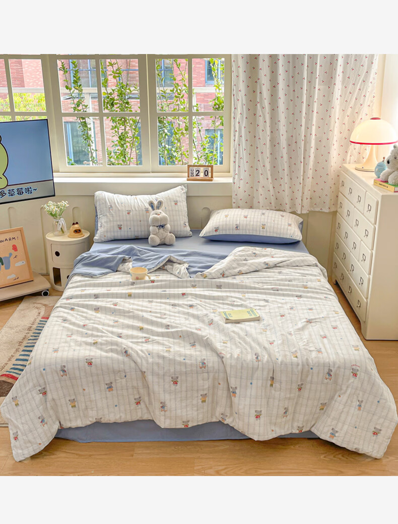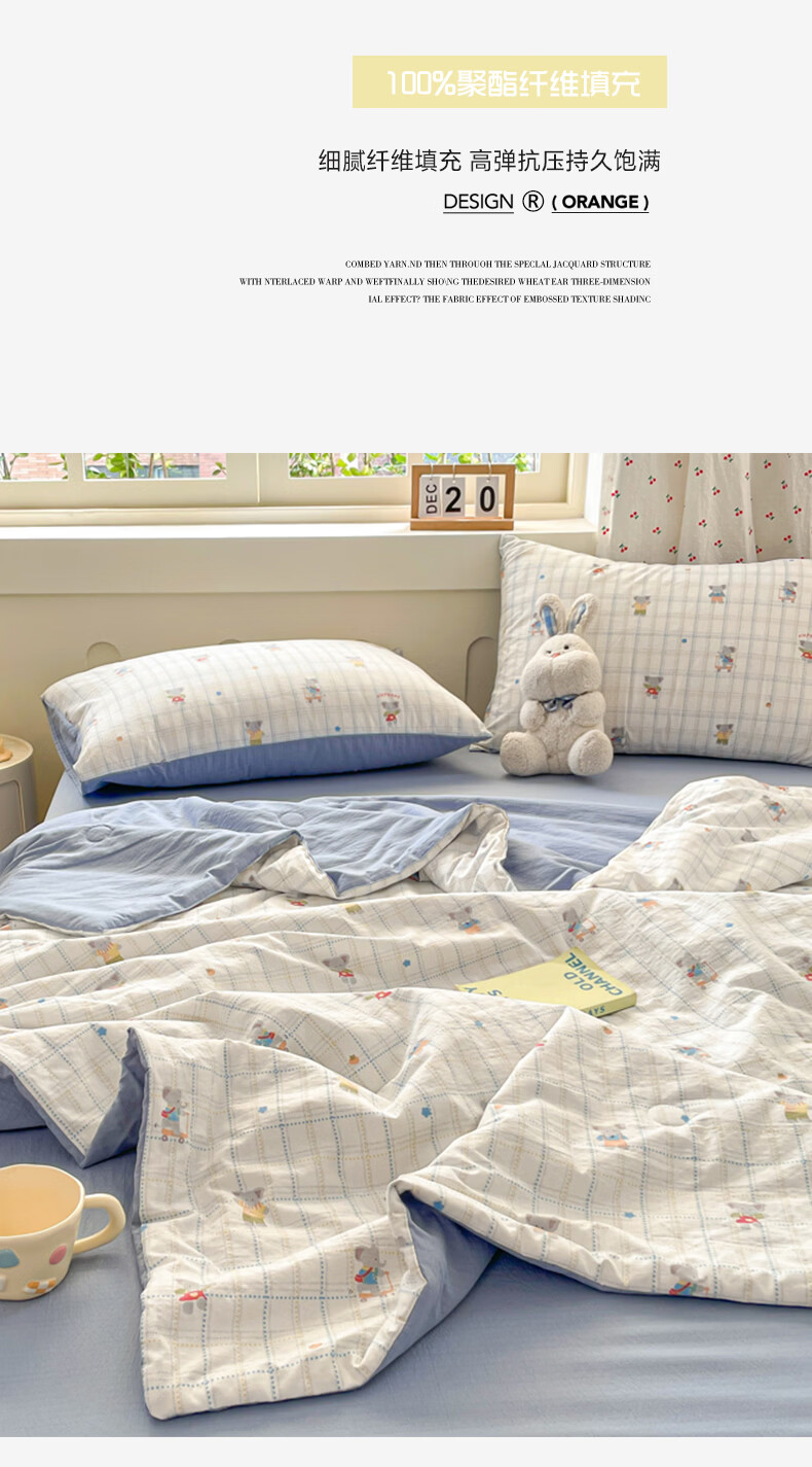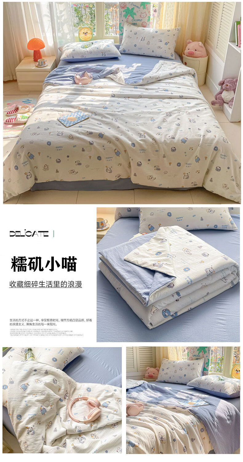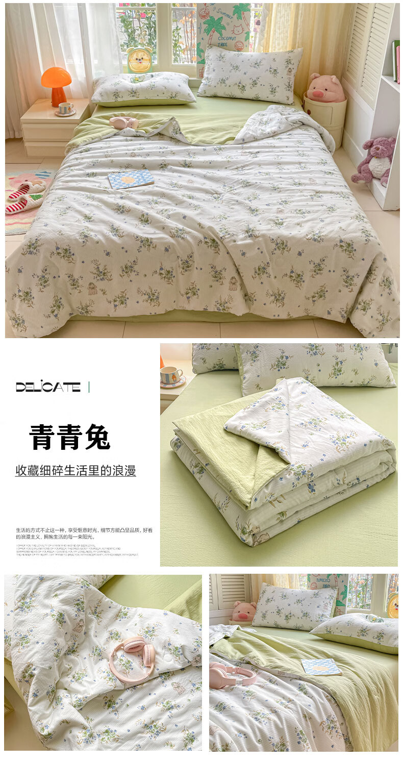 苏萱2026新款全棉纯棉华夫格夏被四件套夏季夏凉被空调被可机洗单双人 简森兰 单人夏被-150*200cm