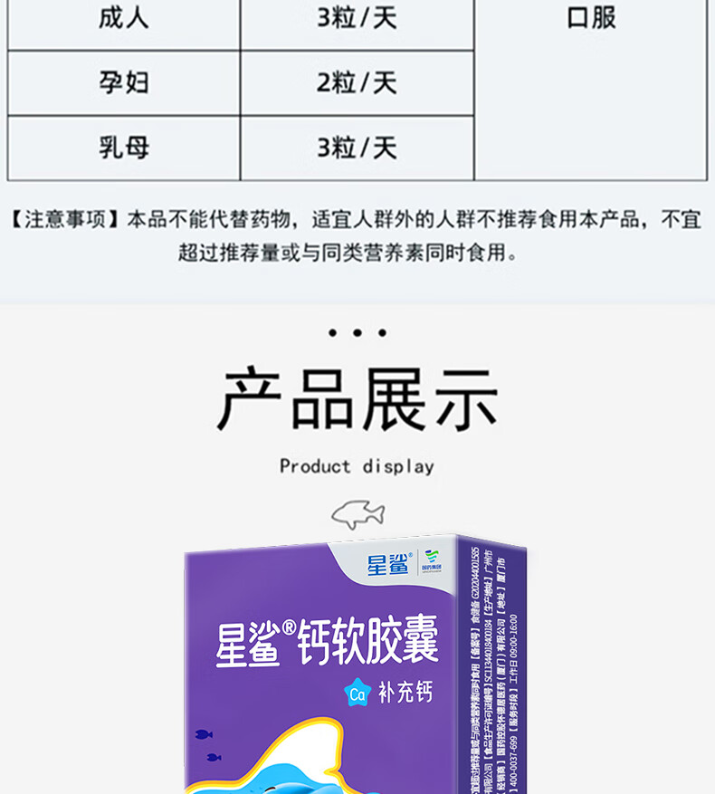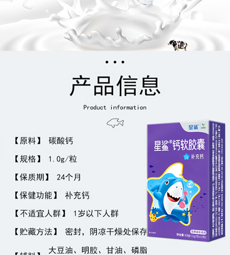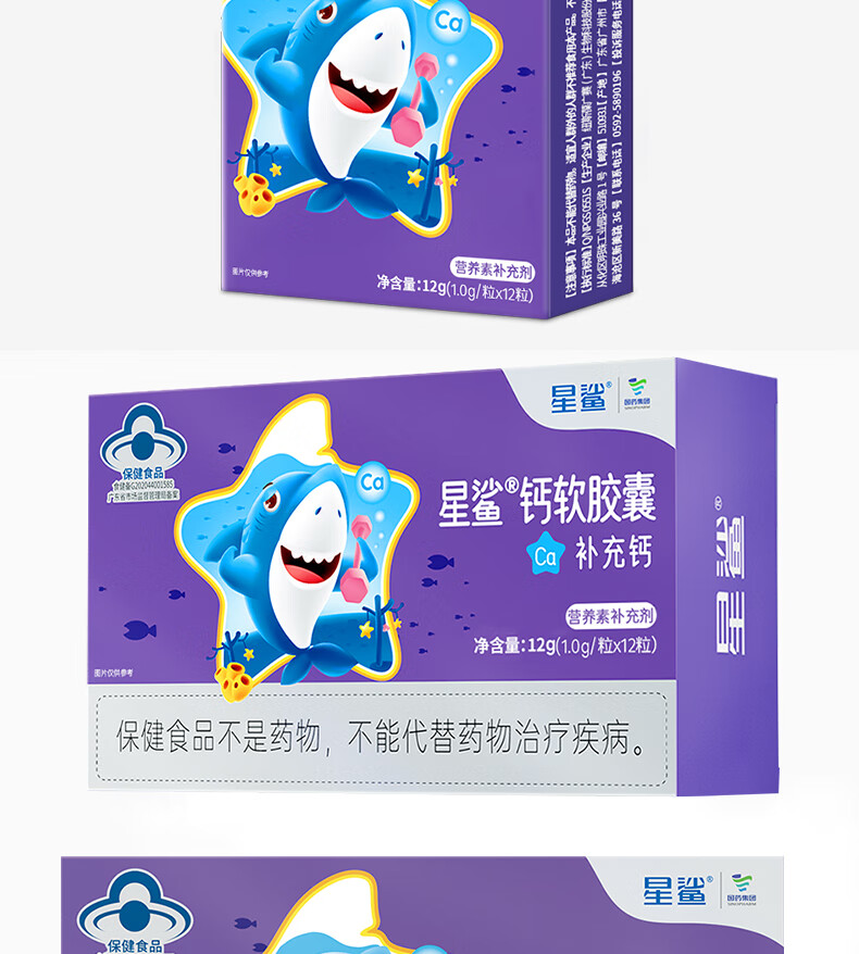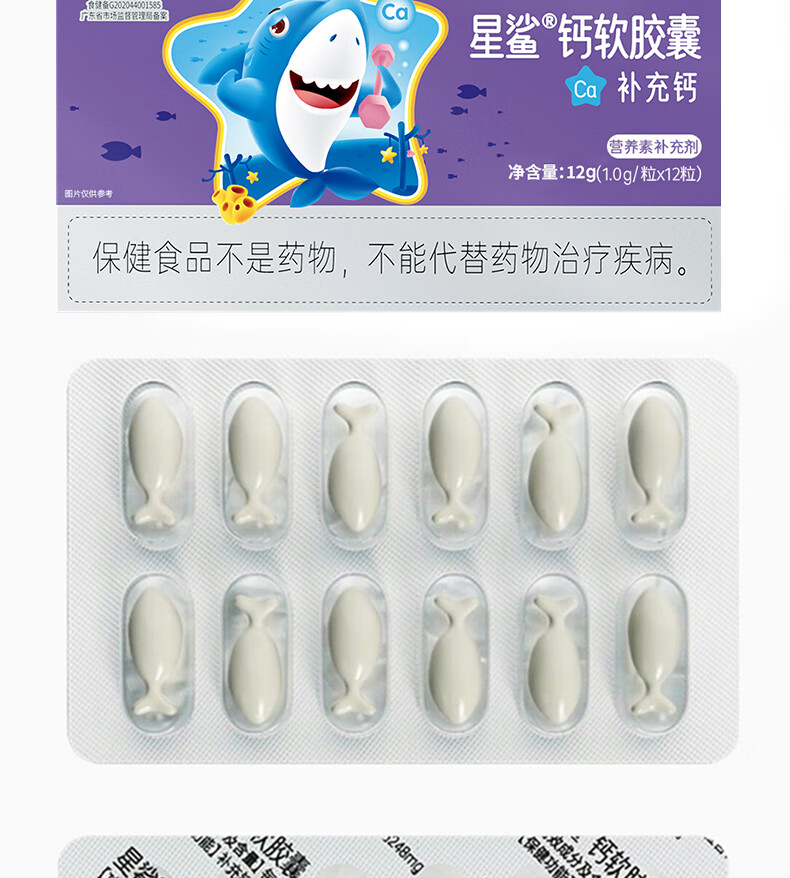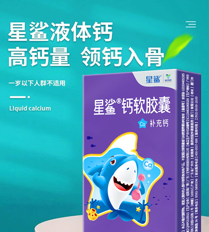 星鲨钙软胶囊 儿童钙片 孕妇哺乳期补钙 1-17岁青少年成人通用液体钙 12粒*4盒