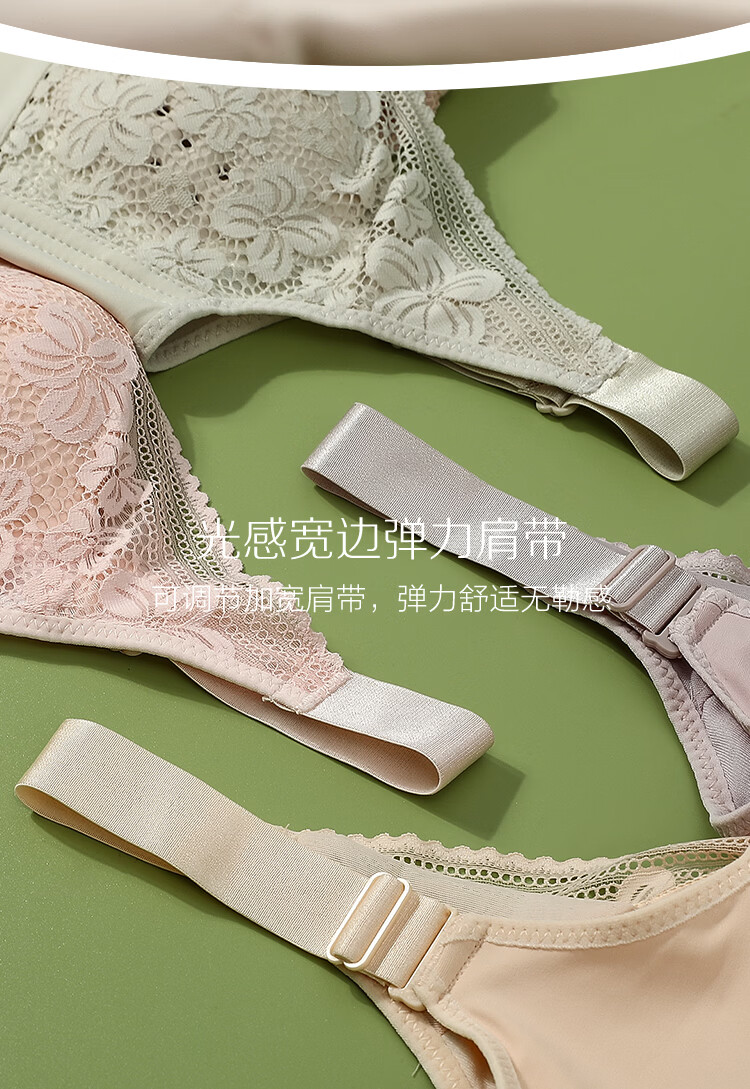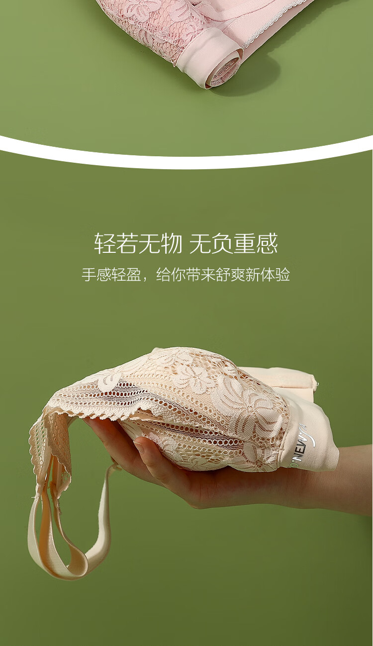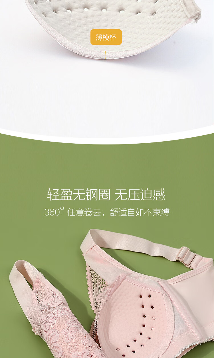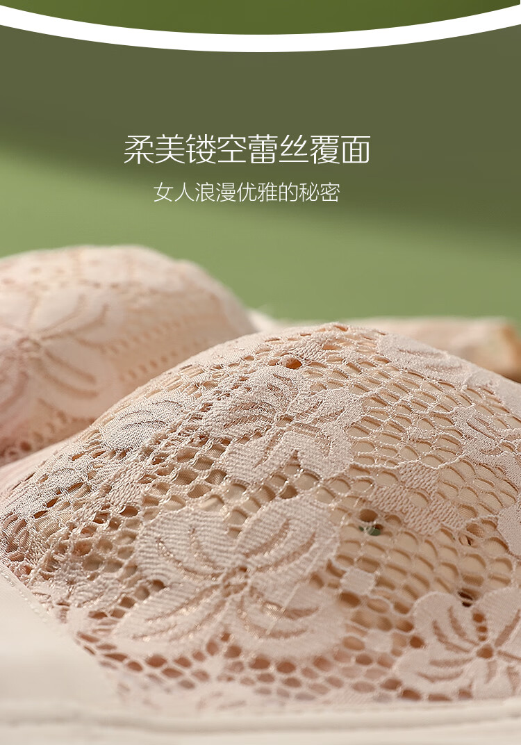红豆居家女士文胸聚拢性感蕾丝无钢圈舒适透气调整型薄文胸胸罩 藕粉 90B