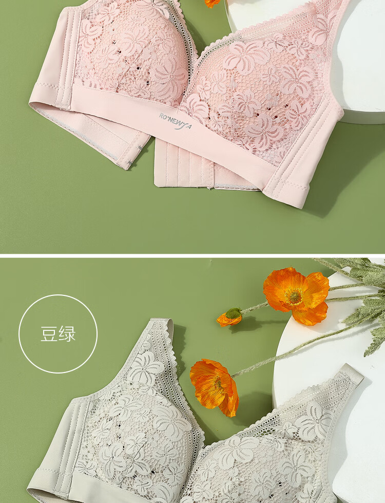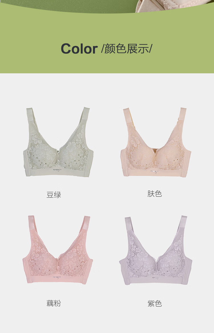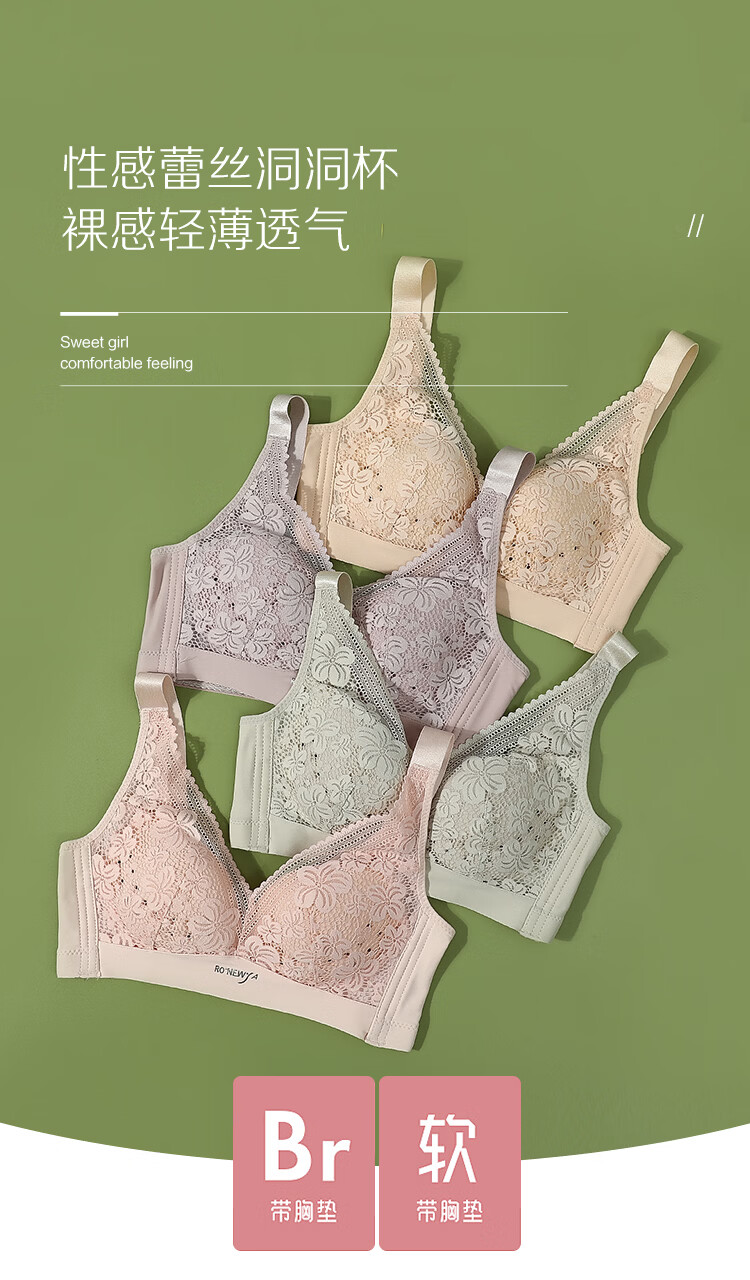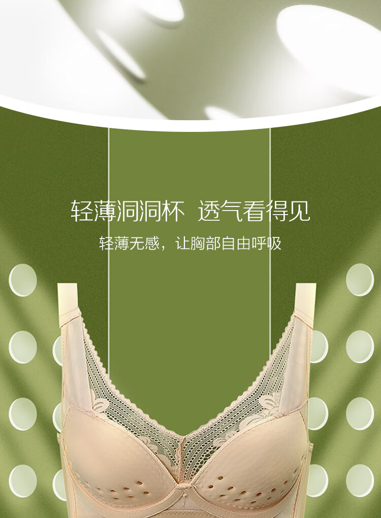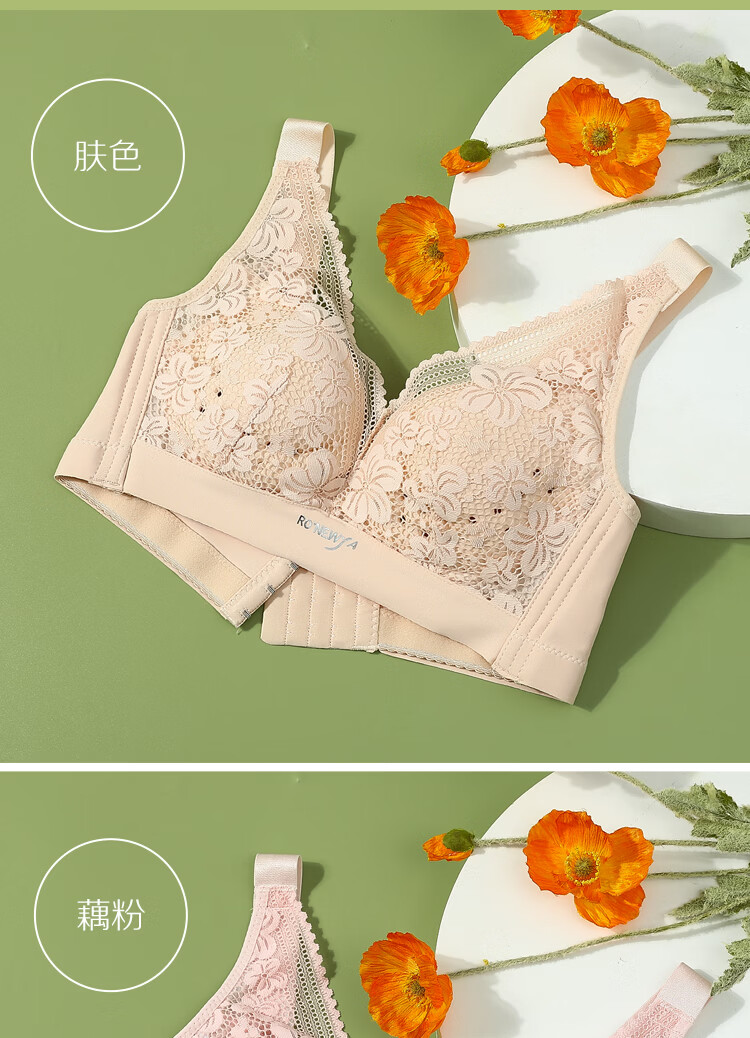 红豆居家女士文胸聚拢性感蕾丝无钢圈舒适透气调整型薄文胸胸罩 藕粉 90B