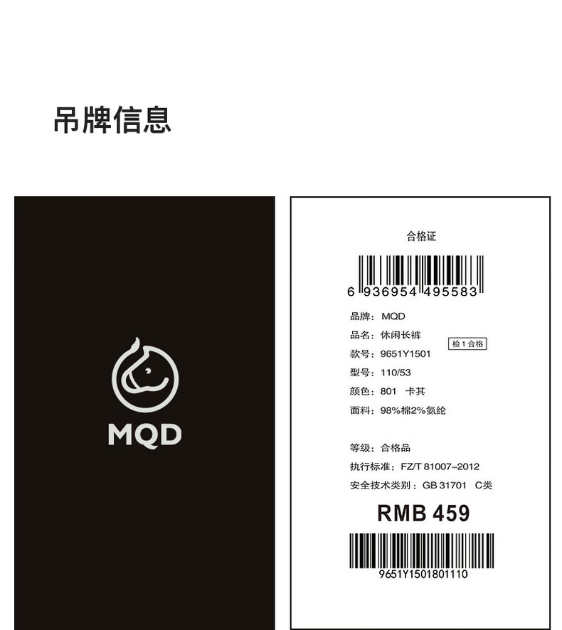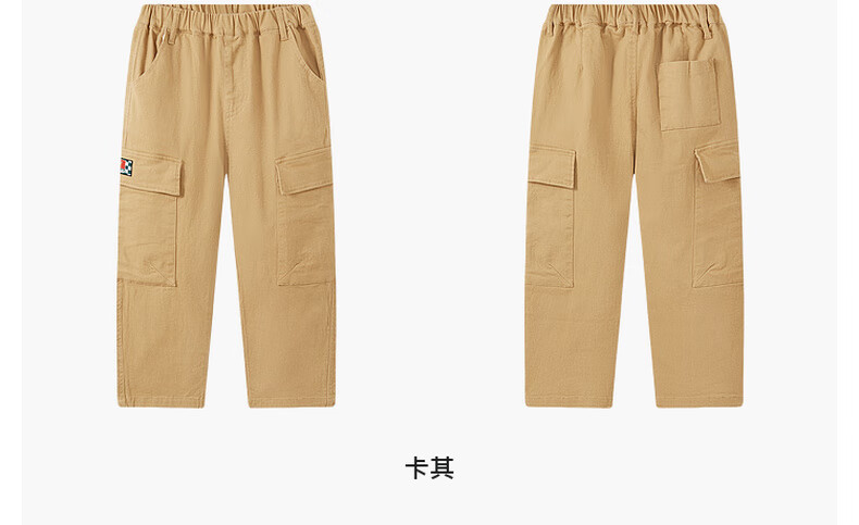 马骑顿(MQD)男大童春季新品户外露营工装大口袋休闲裤登山 卡其 120