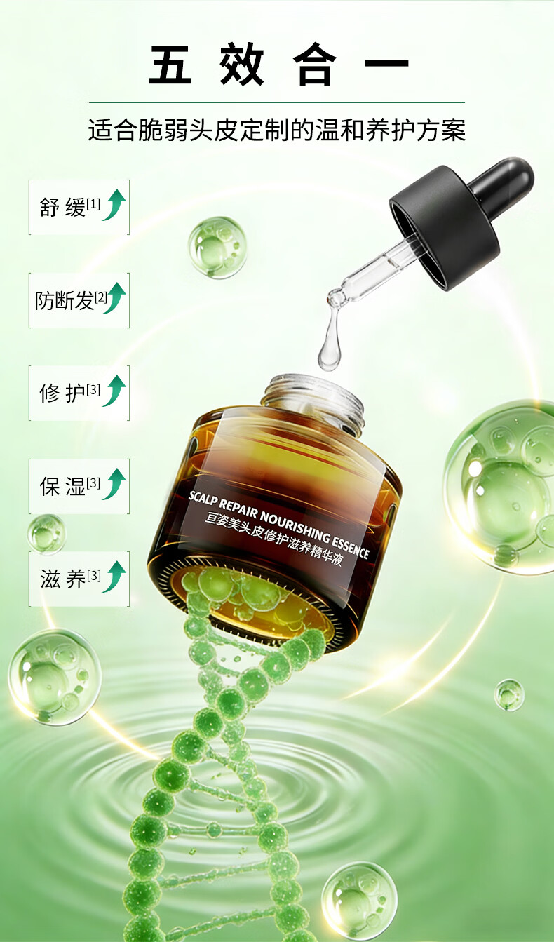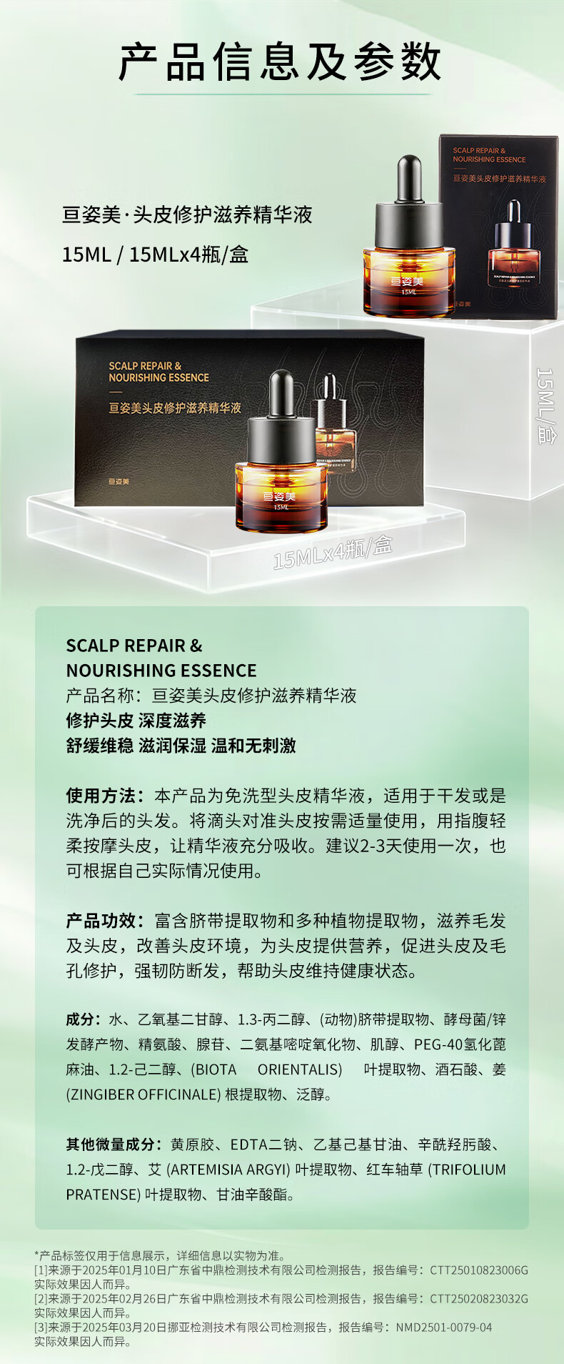 亘姿美头皮保湿精华液温和修护防断滋养头发舒缓头皮干燥补水精华营养液 15ml头皮精华液 1瓶2周用量:清爽体验/质地感知
