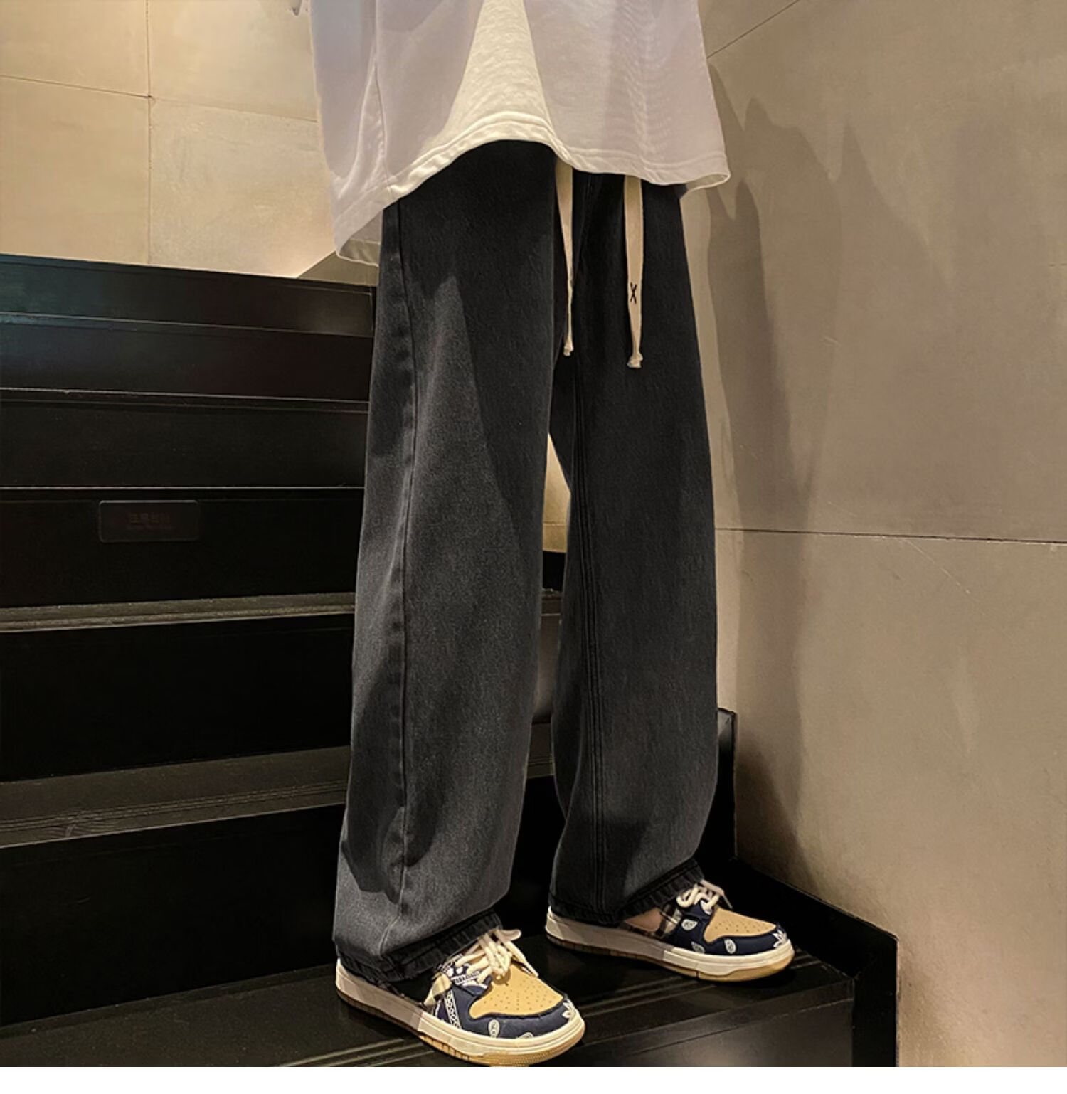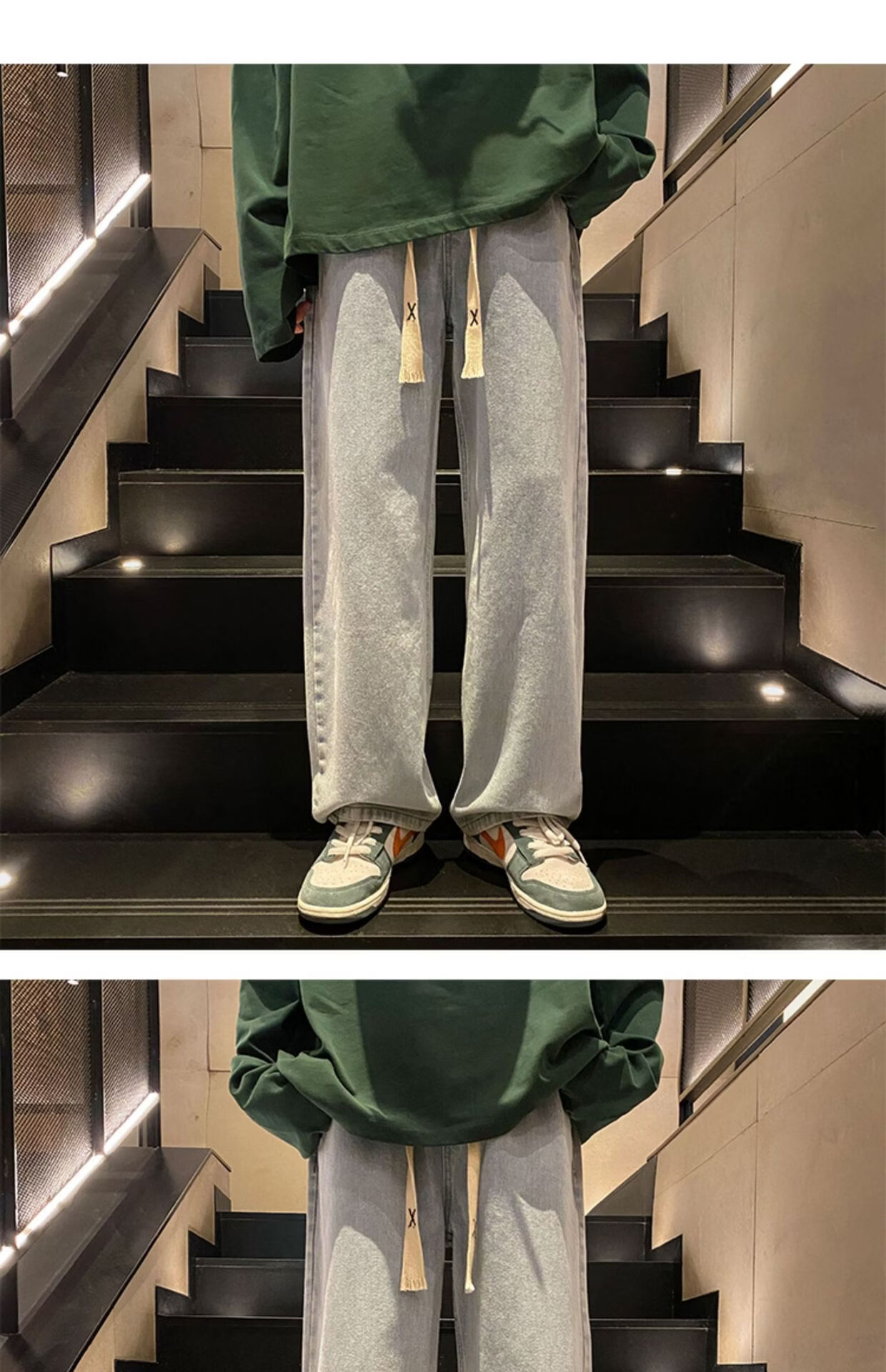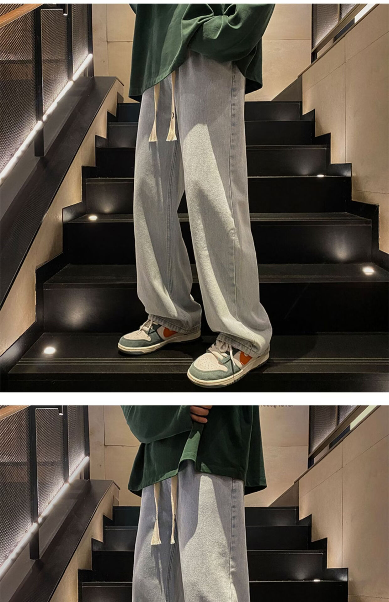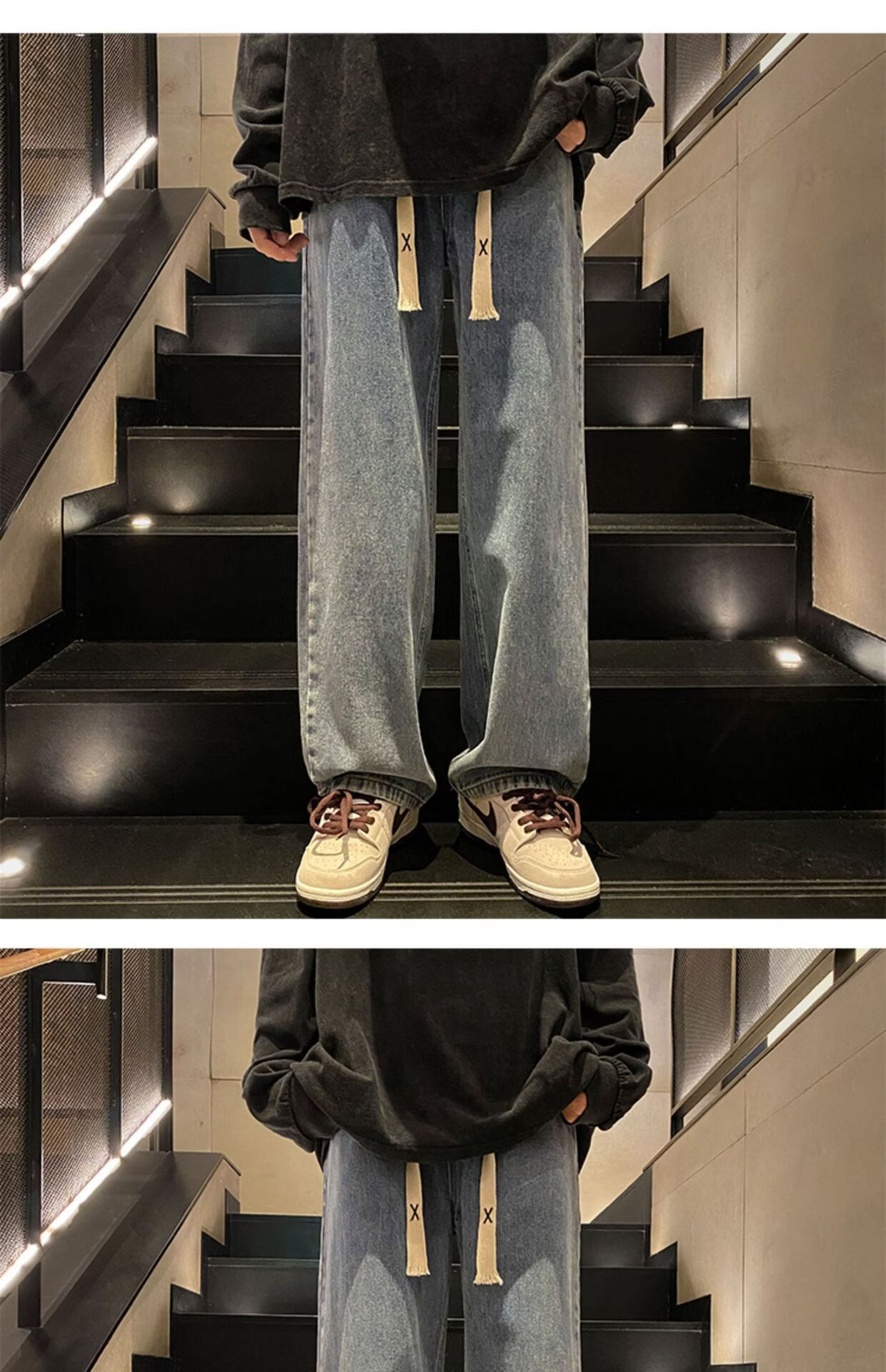 布卡澜琦青年复古春秋季纯色直筒宽松阔腿牛仔裤男美式高街百搭休闲长裤子 015牛仔裤【灰色】 XL (建议115-130斤)