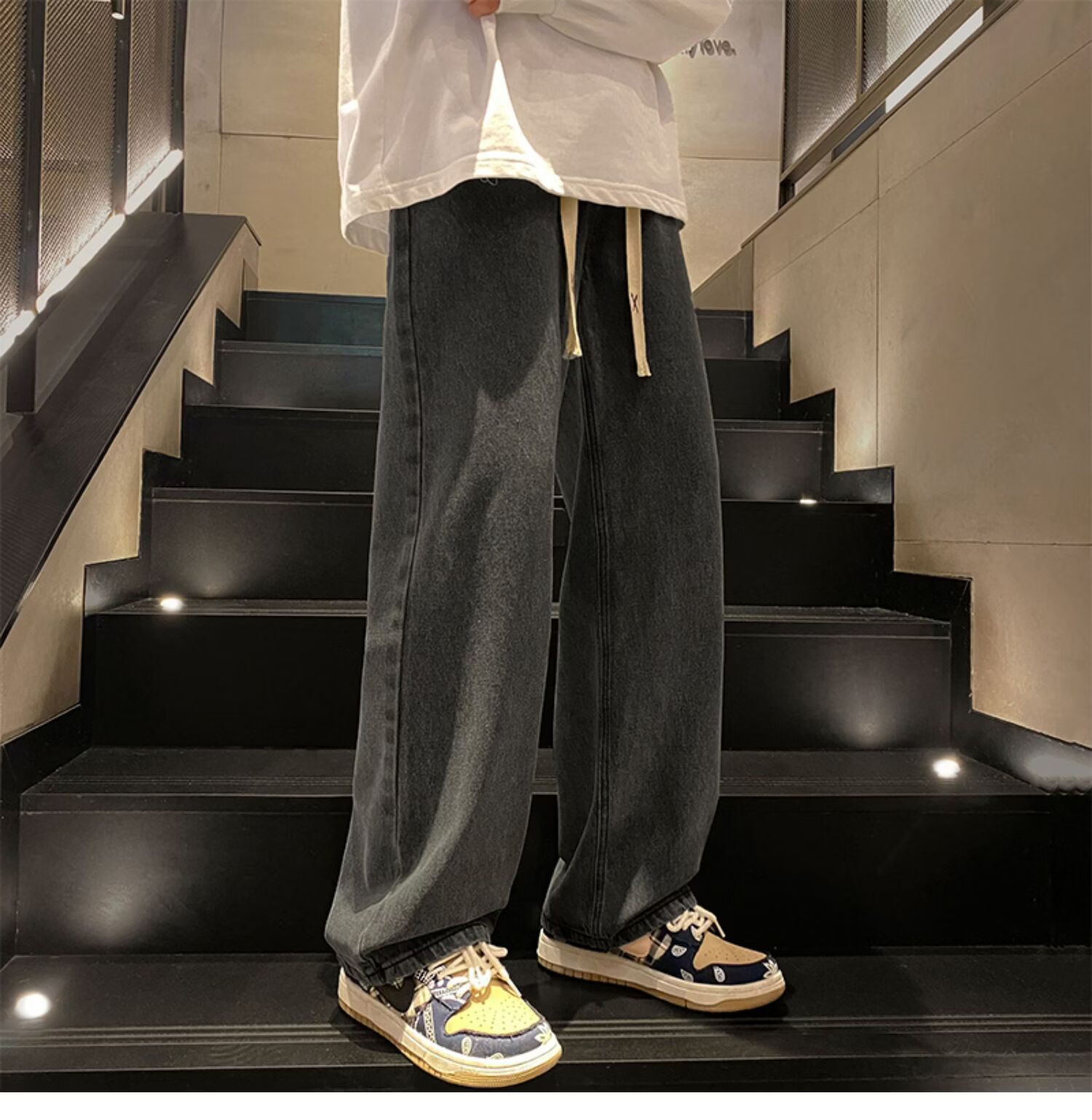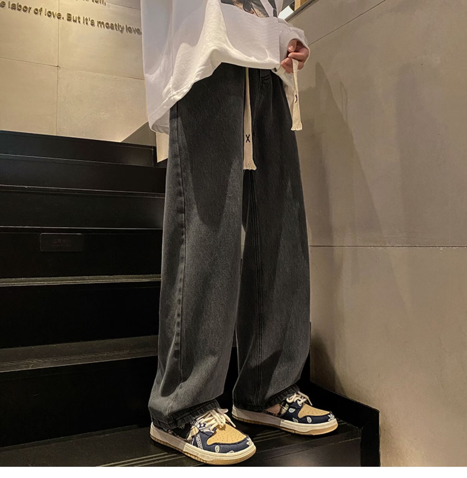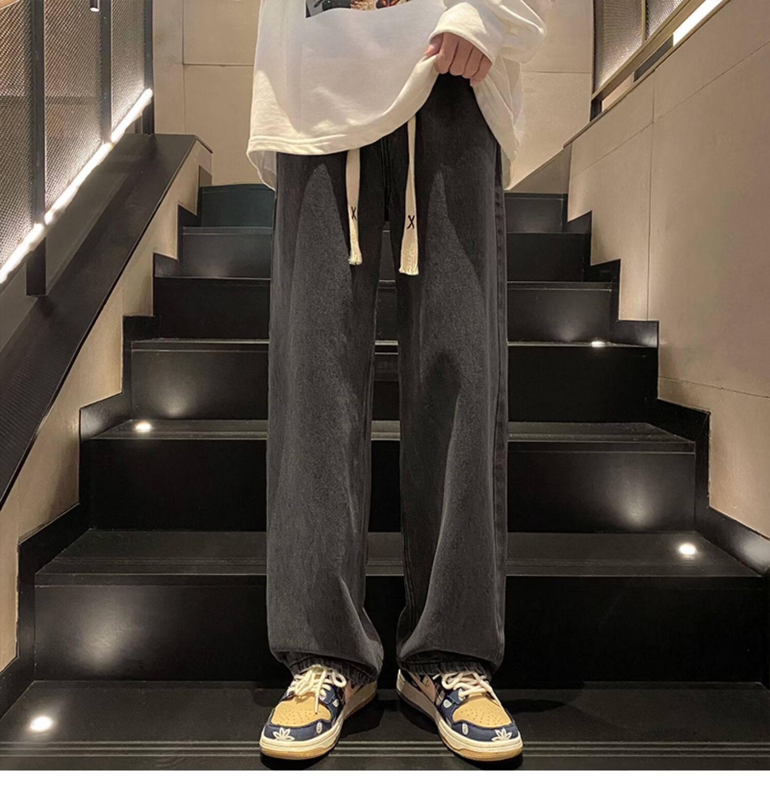 布卡澜琦青年复古春秋季纯色直筒宽松阔腿牛仔裤男美式高街百搭休闲长裤子 015牛仔裤【灰色】 XL (建议115-130斤)