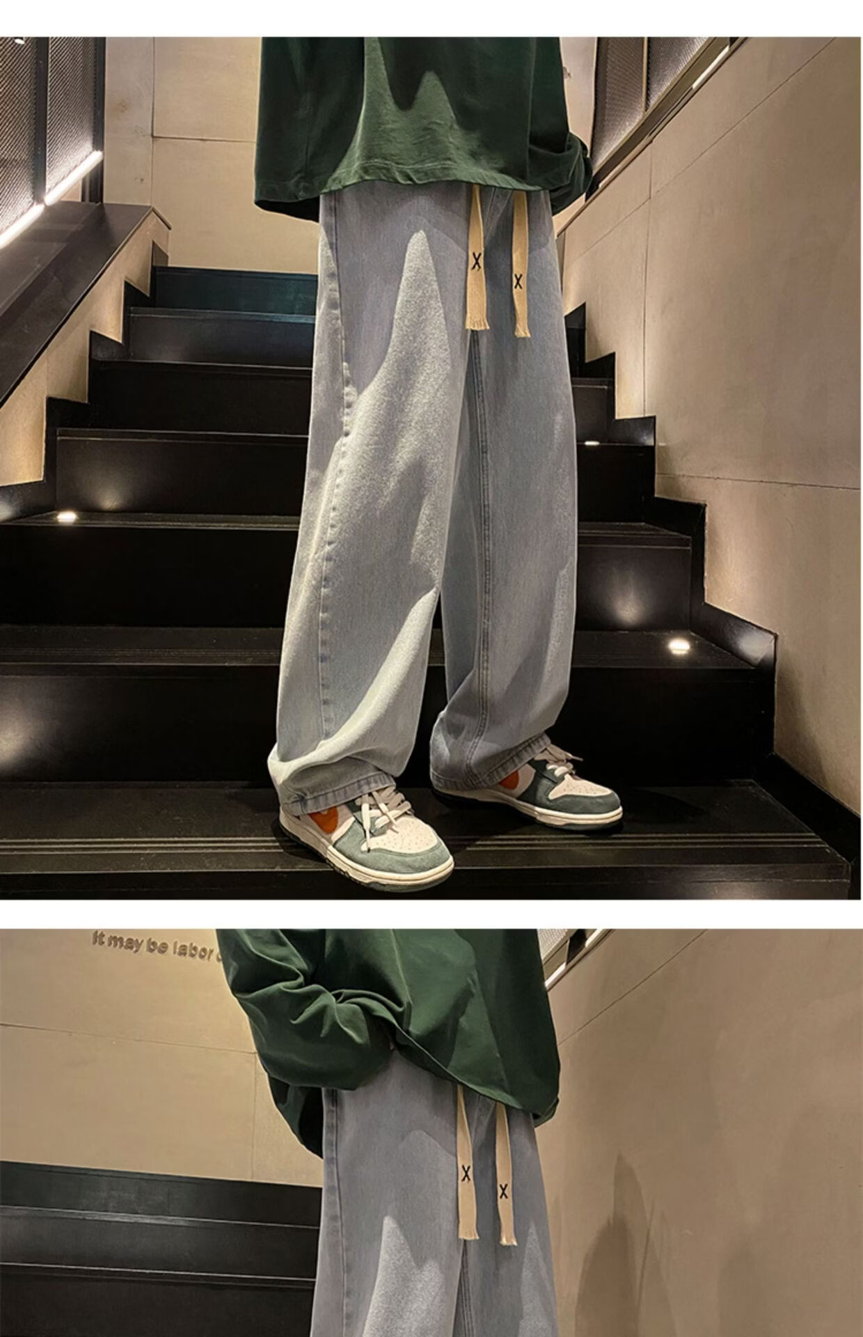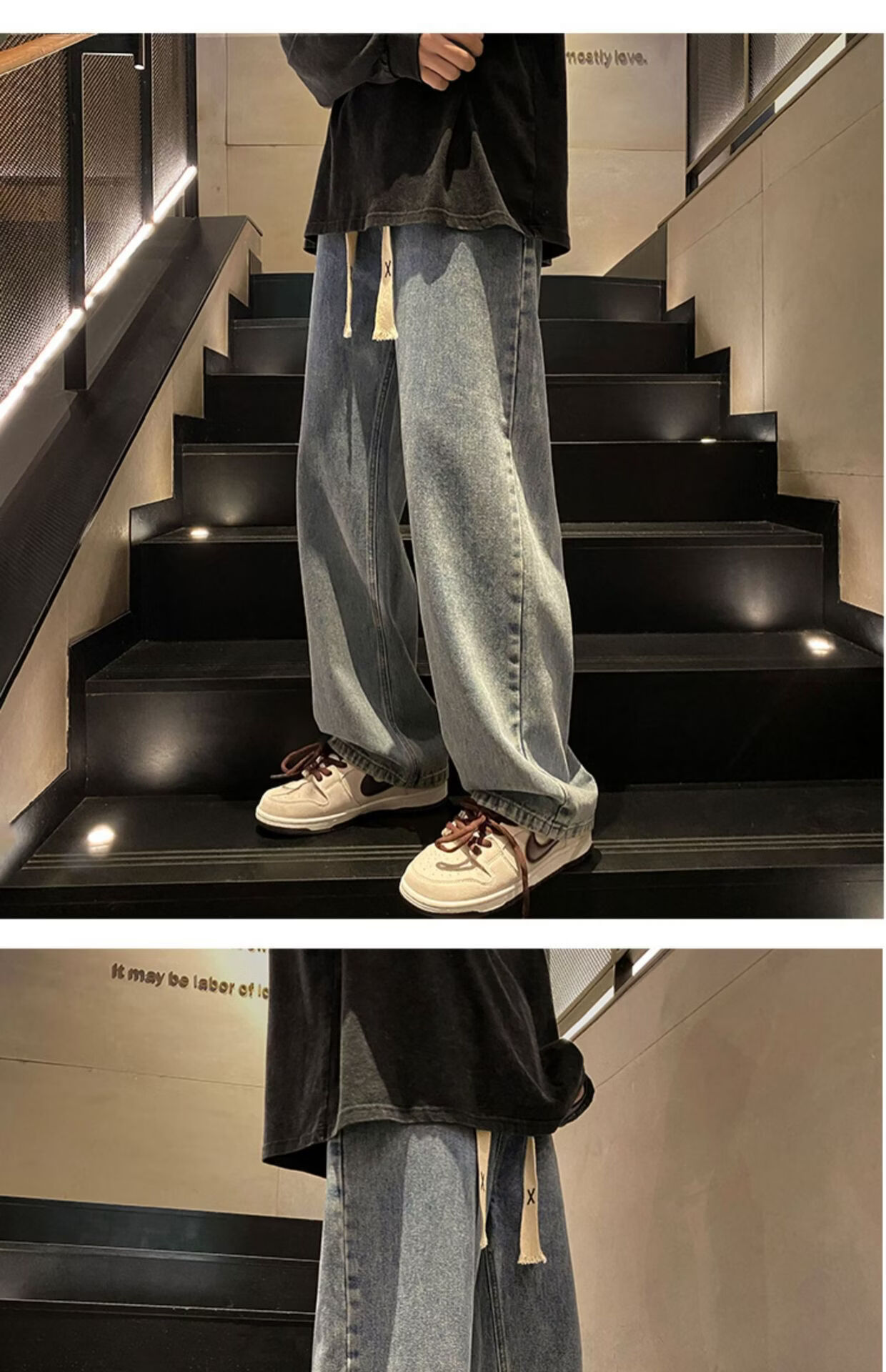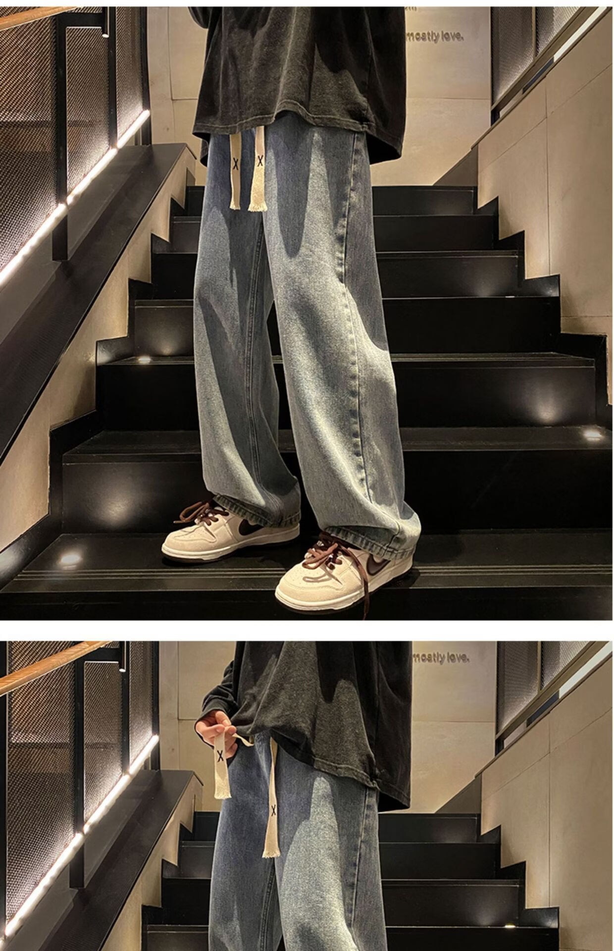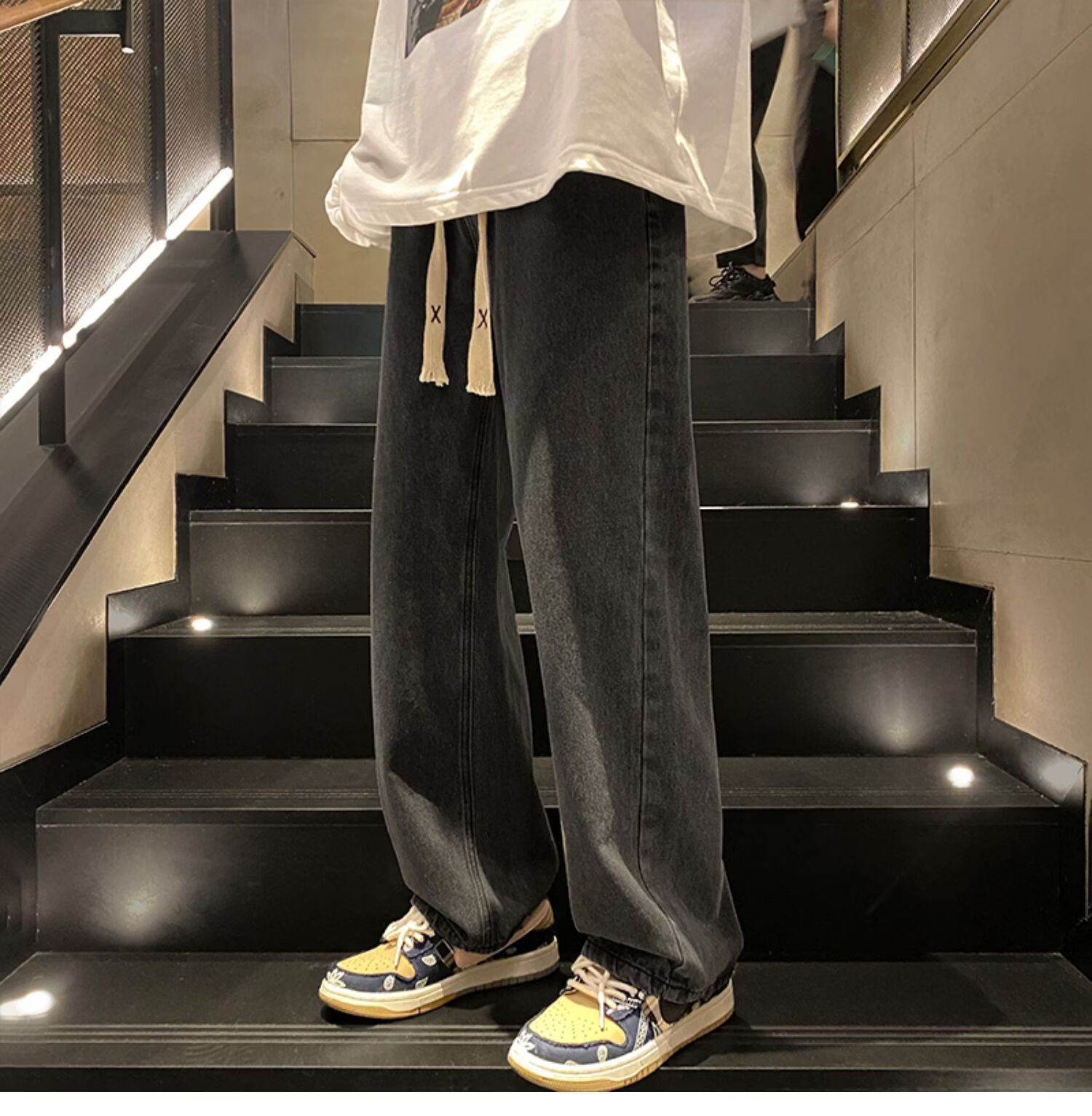 布卡澜琦青年复古春秋季纯色直筒宽松阔腿牛仔裤男美式高街百搭休闲长裤子 015牛仔裤【灰色】 XL (建议115-130斤)