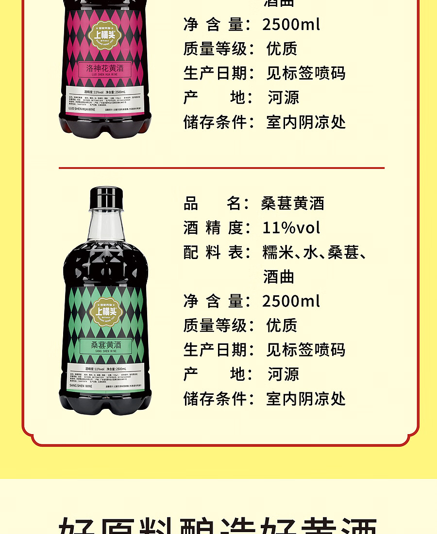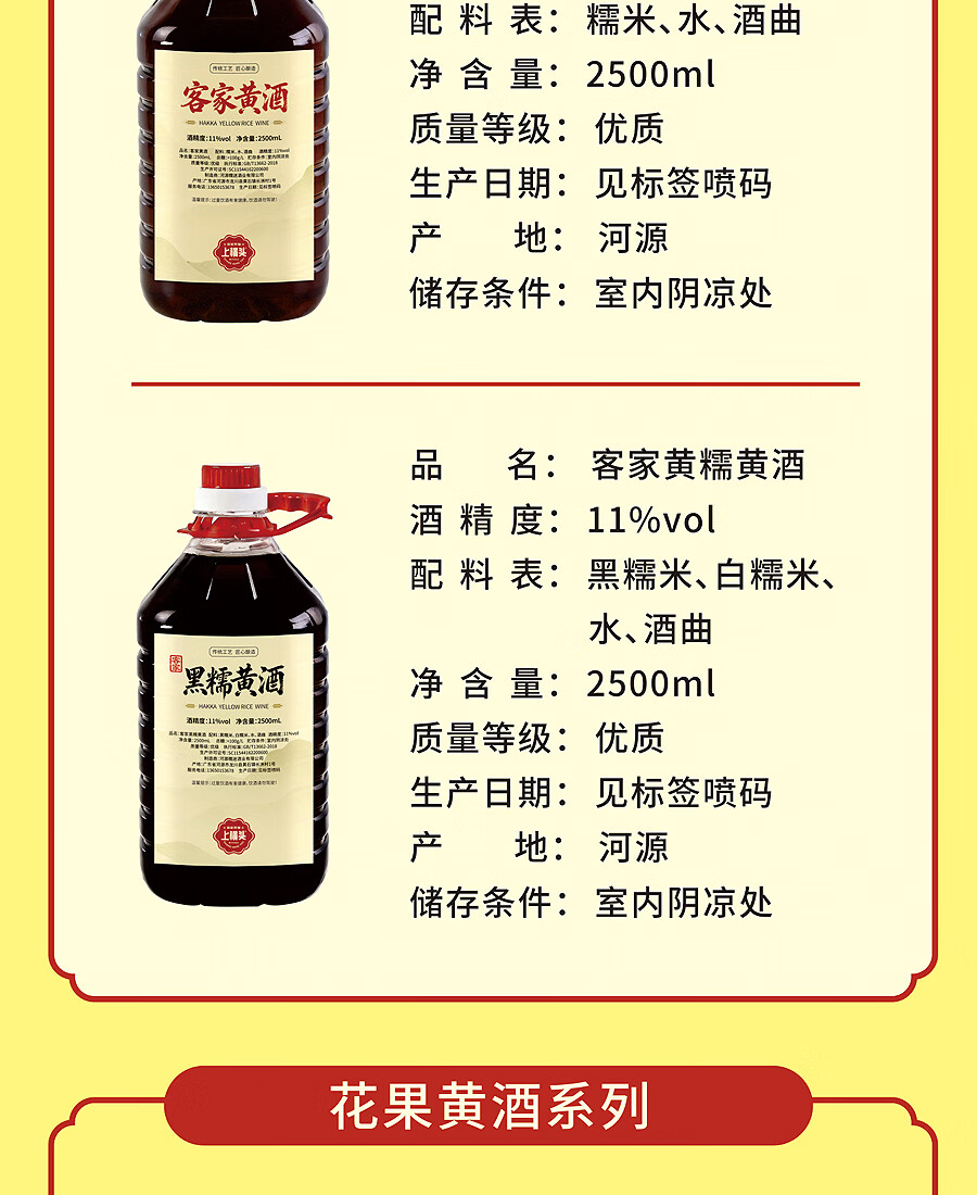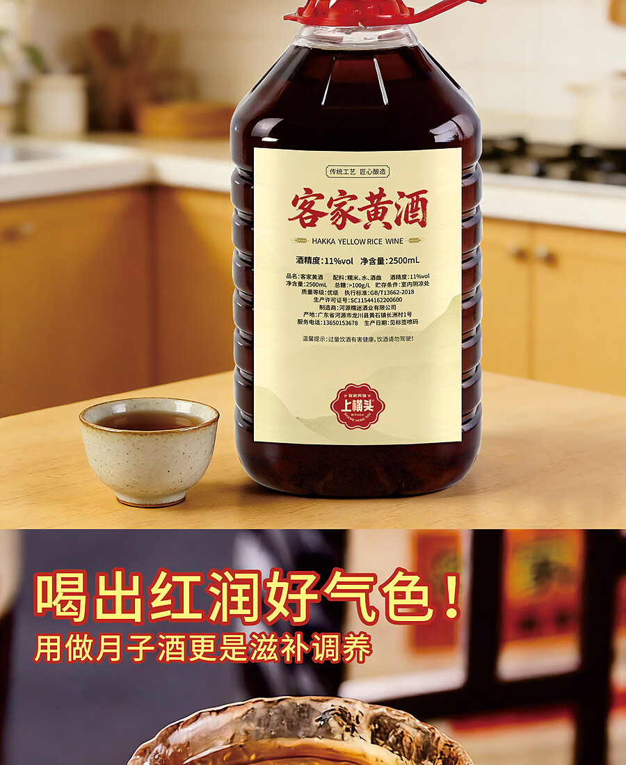 上横头 正宗客家黄酒5斤装 河源特产甜型糯米酒火炙娘酒黑糯米酒桑葚酒 2.5L 1桶 【桑葚】黄酒