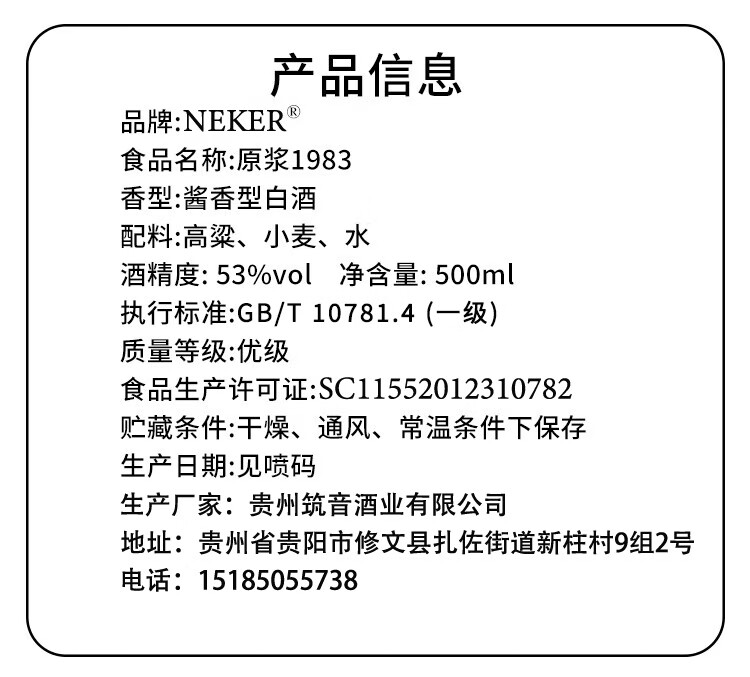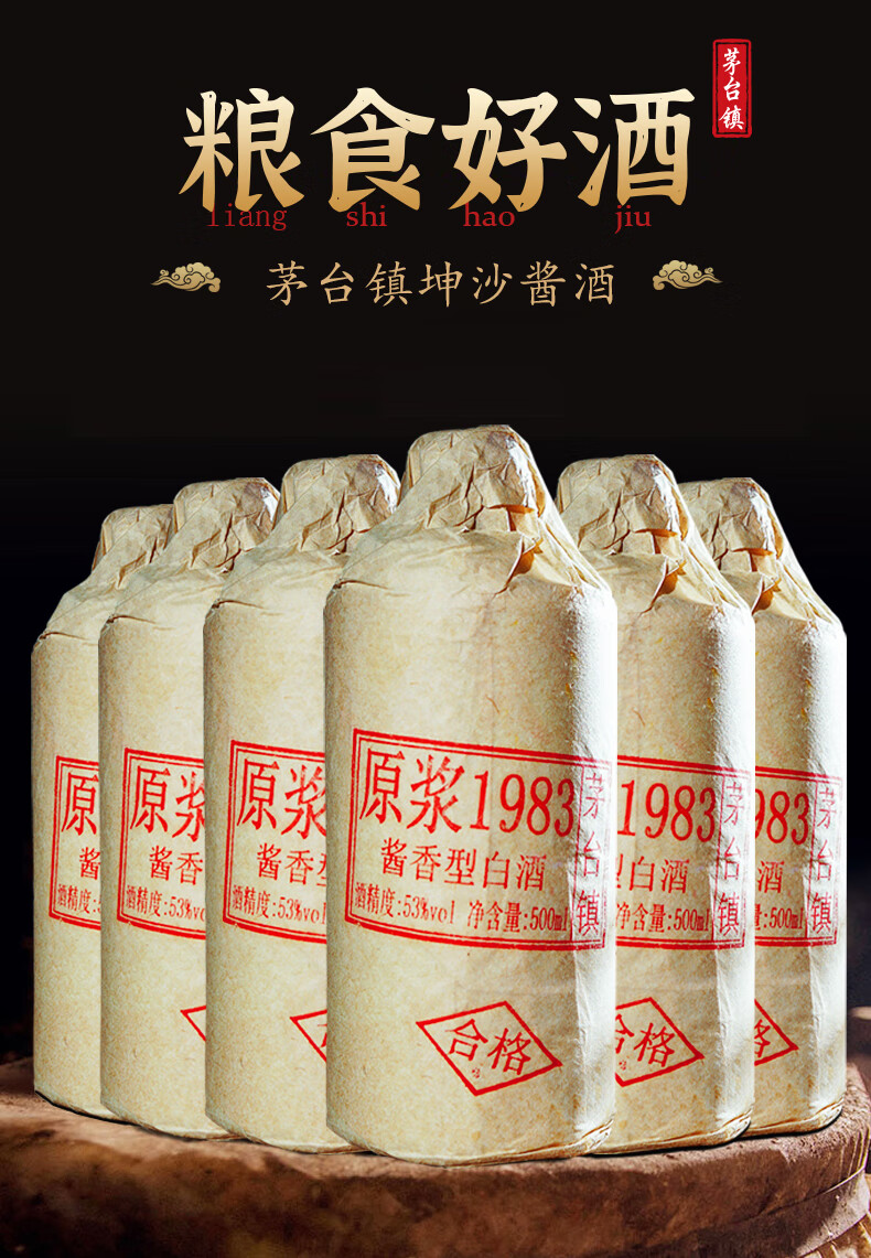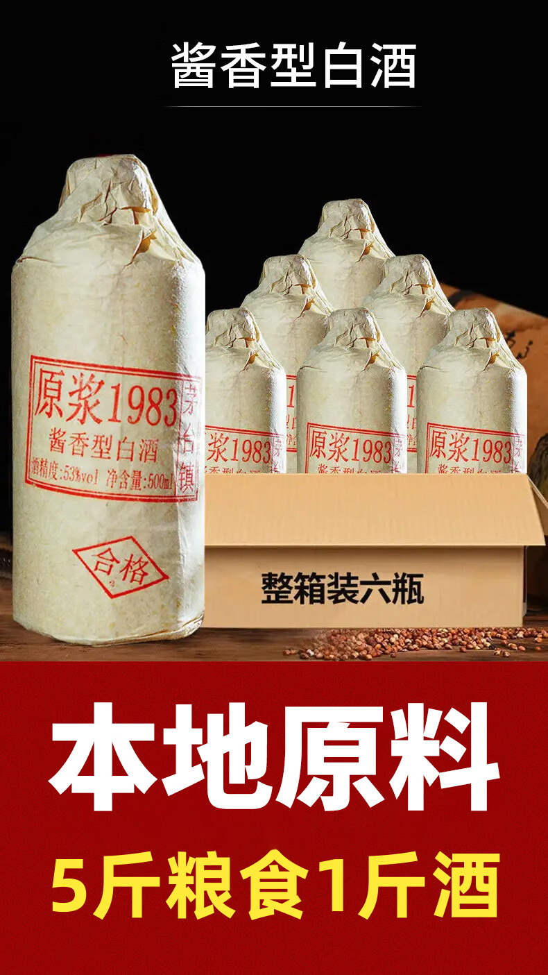 NEKER贵州原浆1983老酒坤沙酱香型白酒53度纯粮食自酿原浆陈酿整箱6瓶 53度 500mL 6瓶 十五陈酿