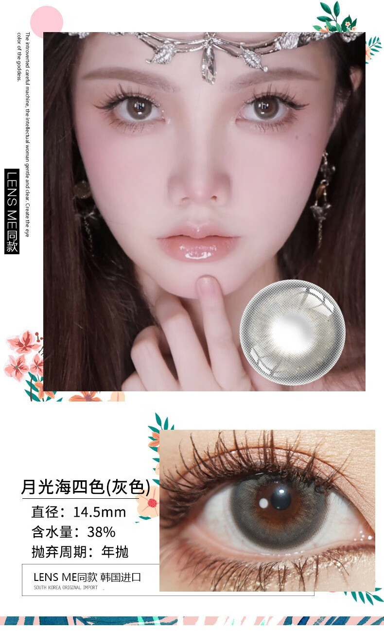 Color Baby韩国进口美瞳半年抛2片1300高度数14.5大直径自然百搭隐形眼镜 lunar-Gray 【2片装】 425度