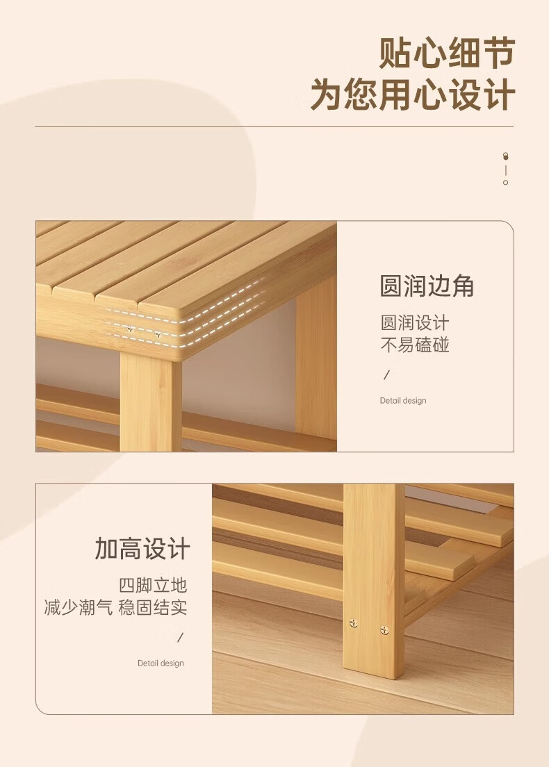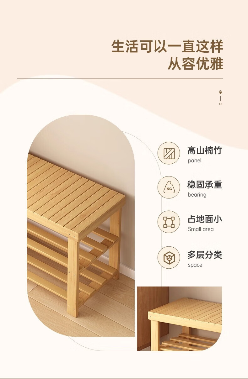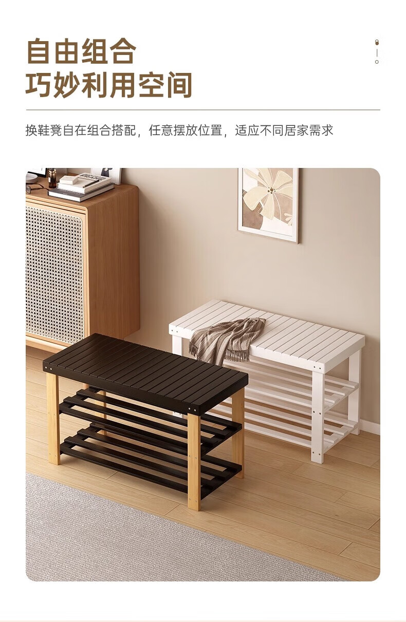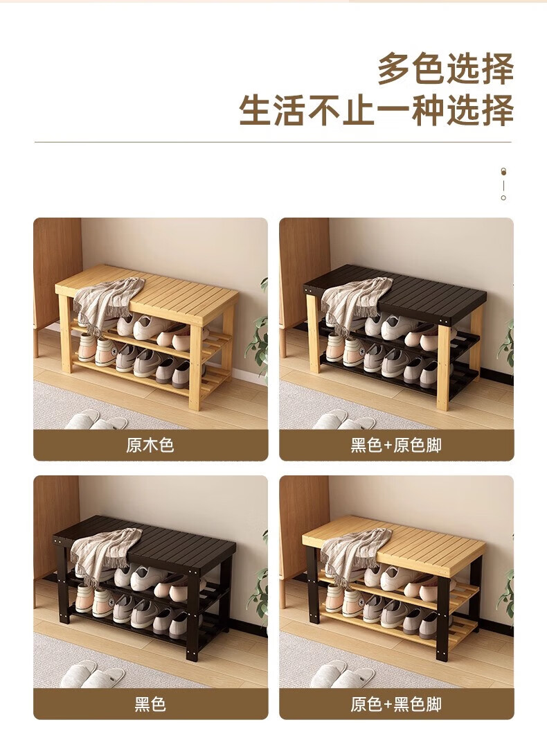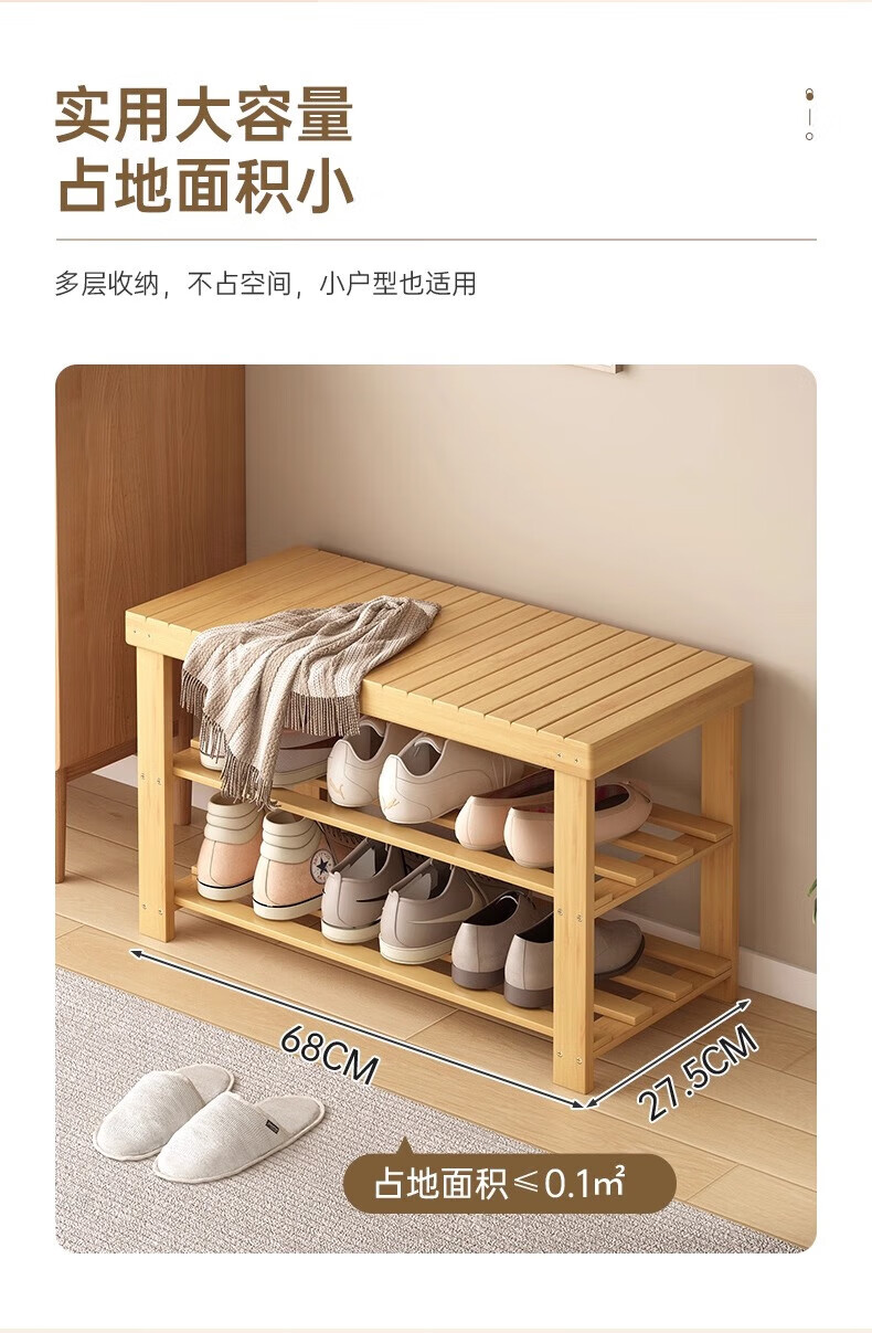 馨婺家换鞋凳家用长条竹制鞋架门口入户玄关可坐穿鞋鞋柜一体简约换鞋柜 原木色-2层【加厚加粗】