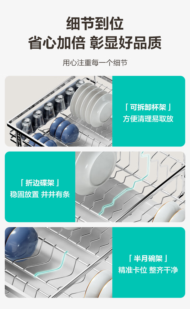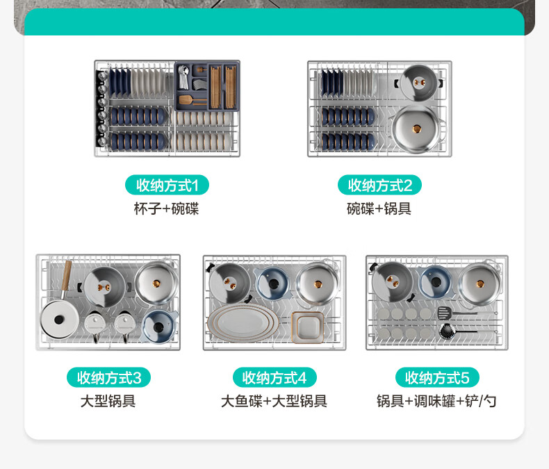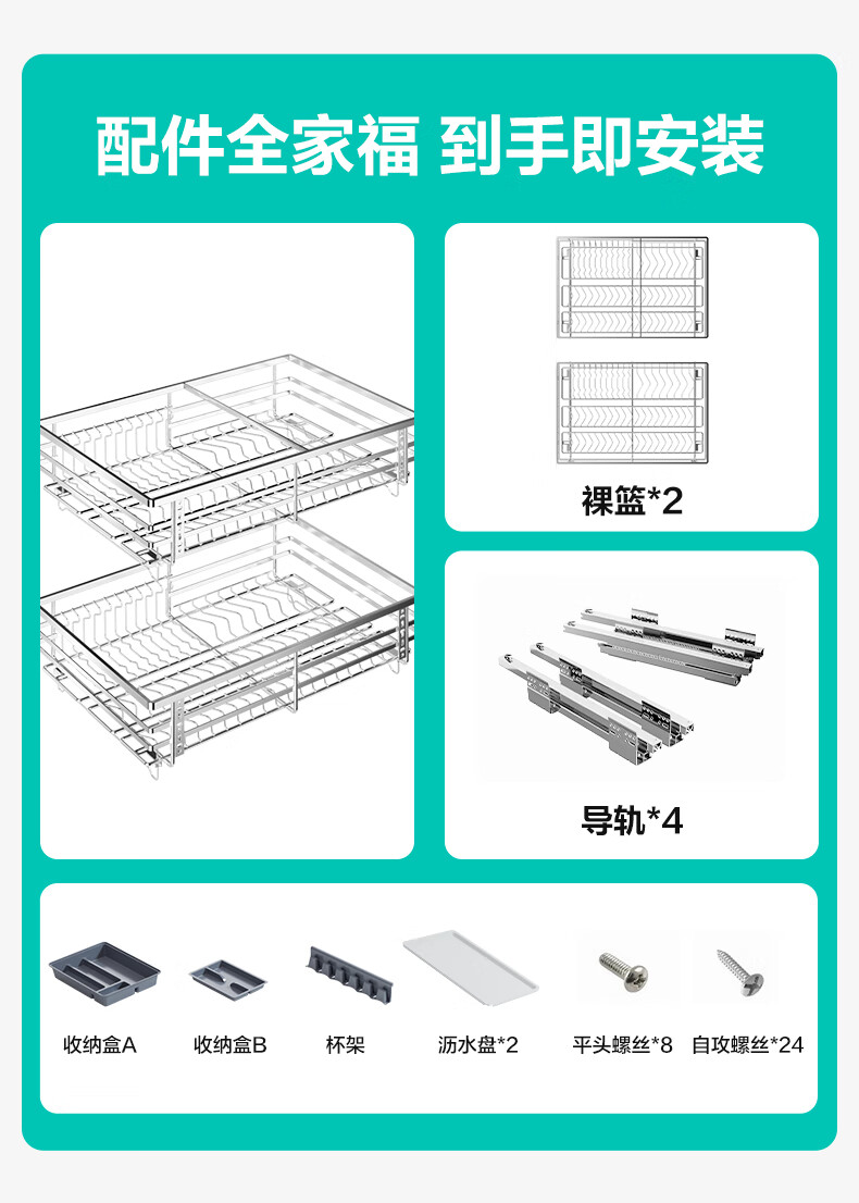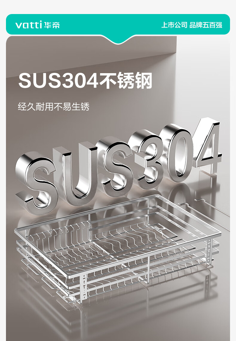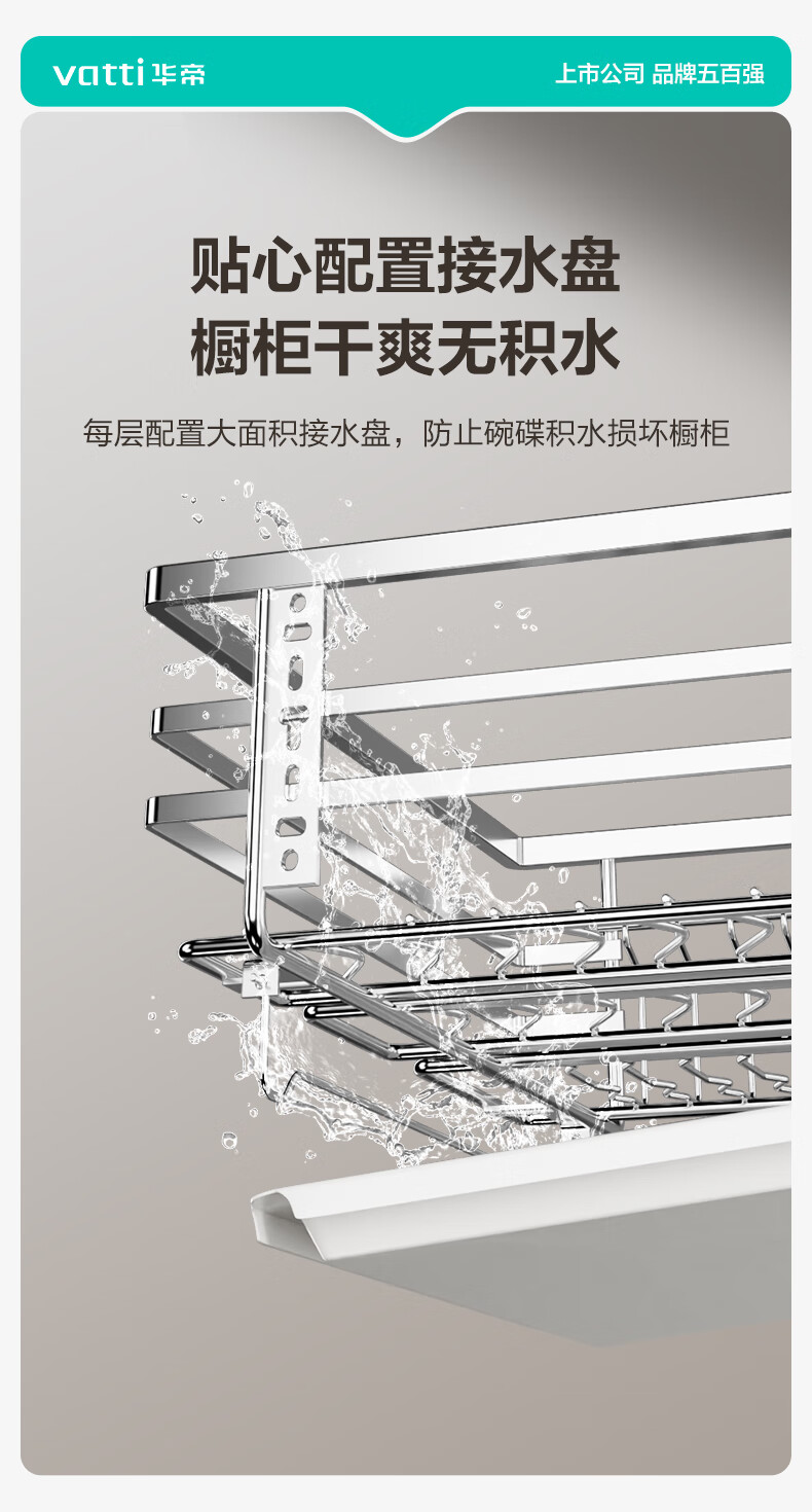 华帝(VATTI)橱柜拉篮厨房碗篮抽屉式碗碟架调味调料碗柜拉篮收纳架304不锈钢 【304不锈钢】600柜 大容量接水盘碗碟篮+平篮套装