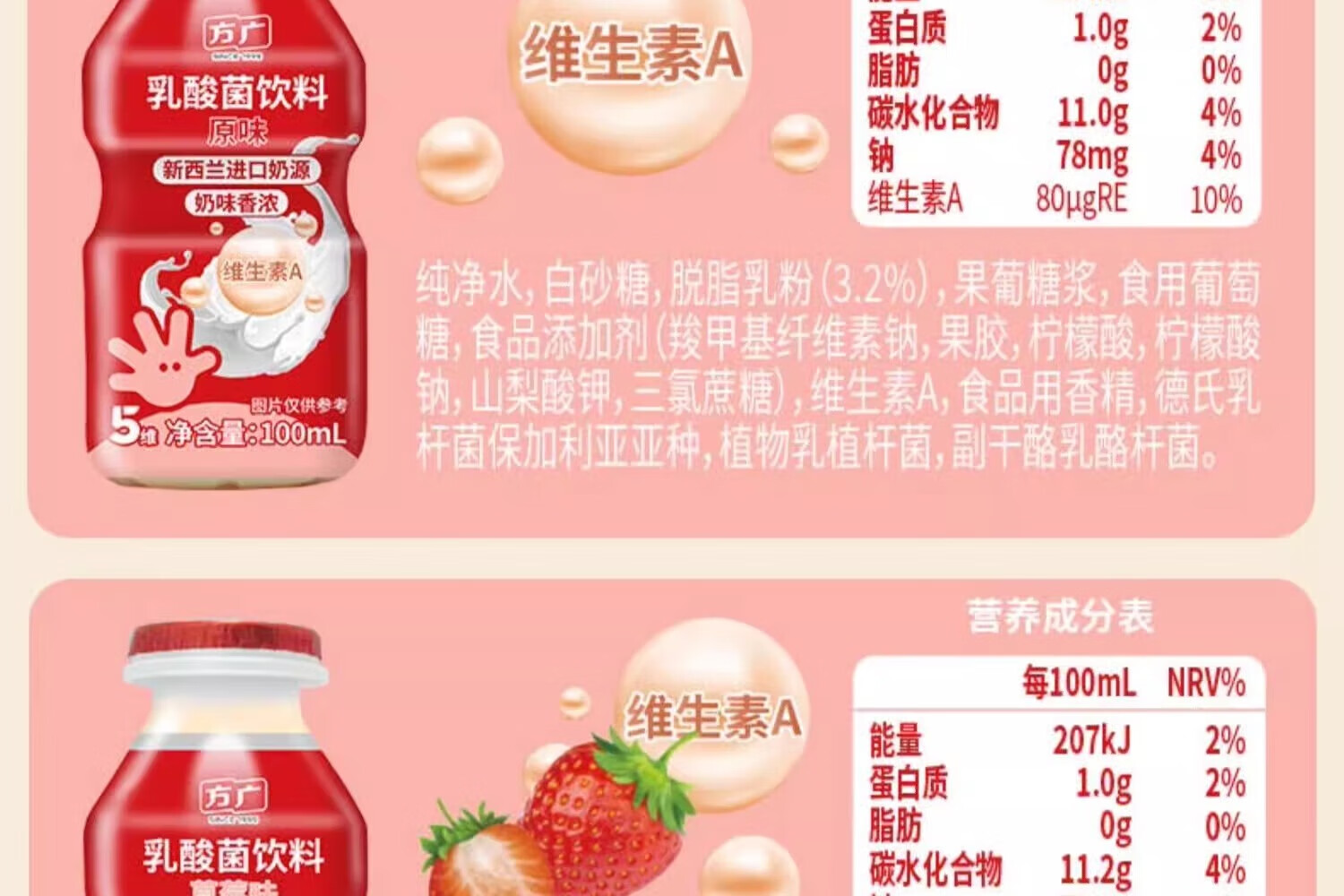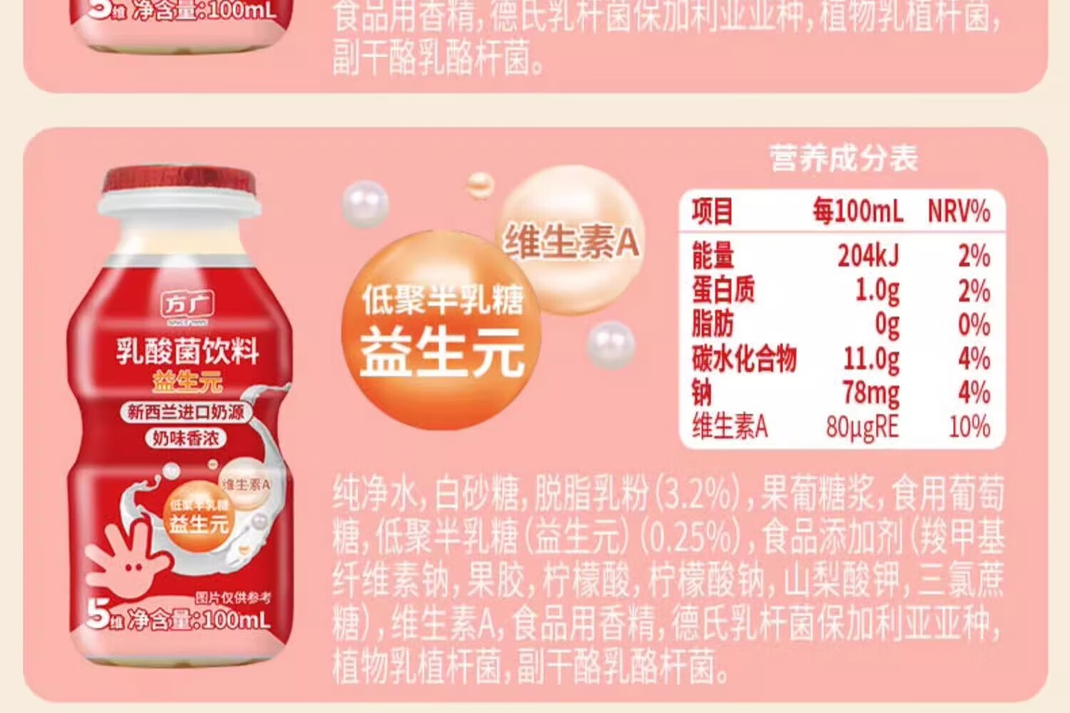 方广益生元乳酸菌饮料100ml*4添加膳食纤维0脂肪零食享宝宝食谱 100ml*16瓶 四种口味组合装