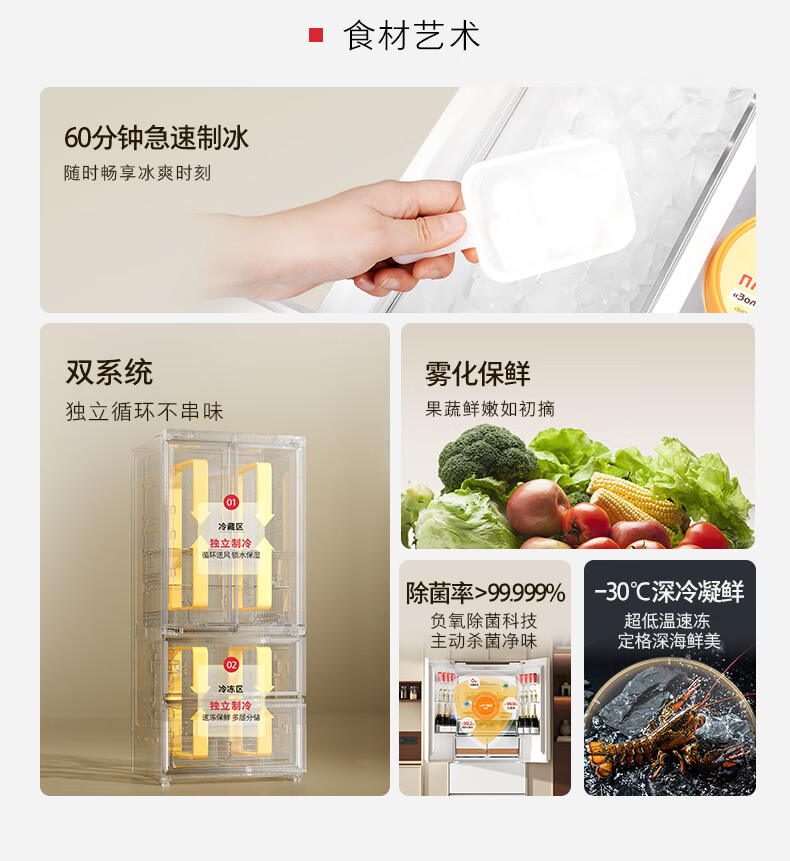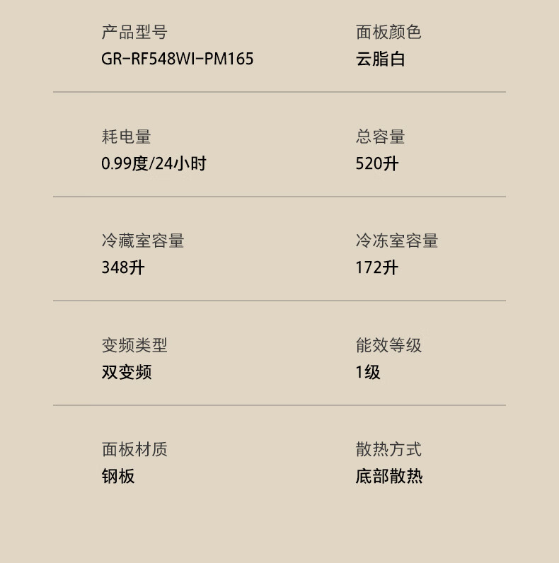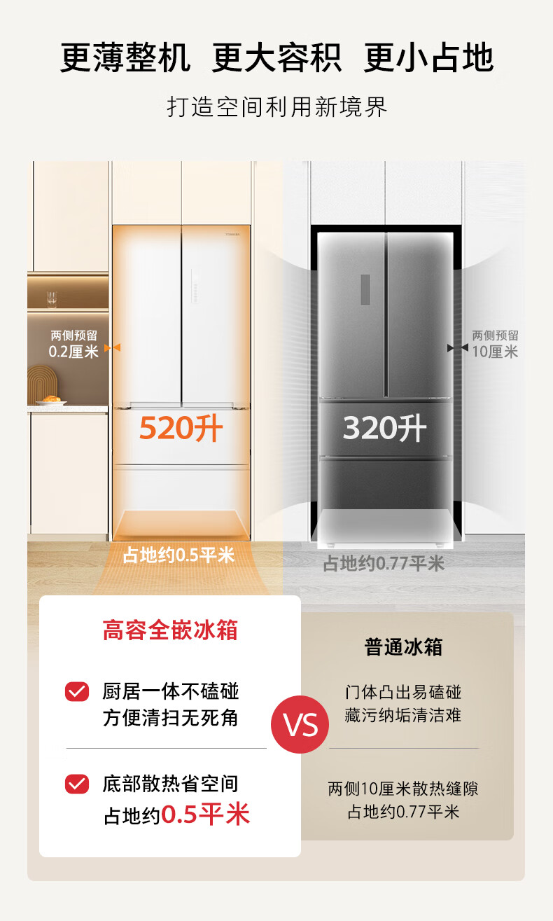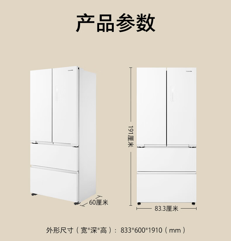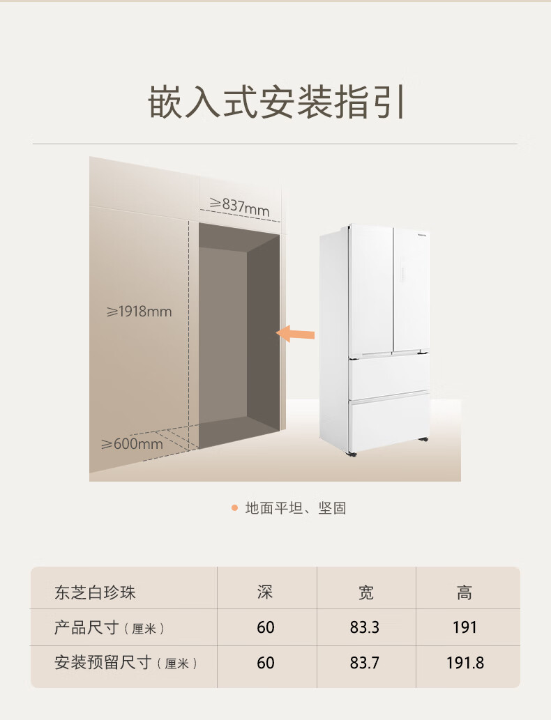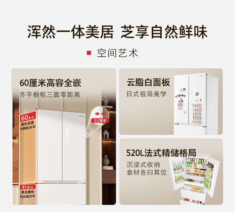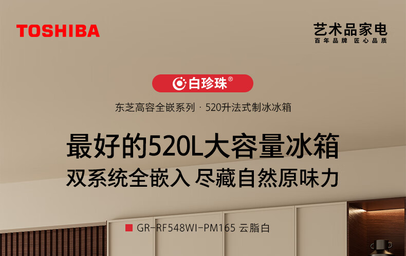 东芝(TOSHIBA)白珍珠548高容全嵌60cm超薄嵌入式大容量双系统风冷无霜全自动制冰法式多门国家补贴家用电冰箱 GR-RF548WI-PM165 云脂白