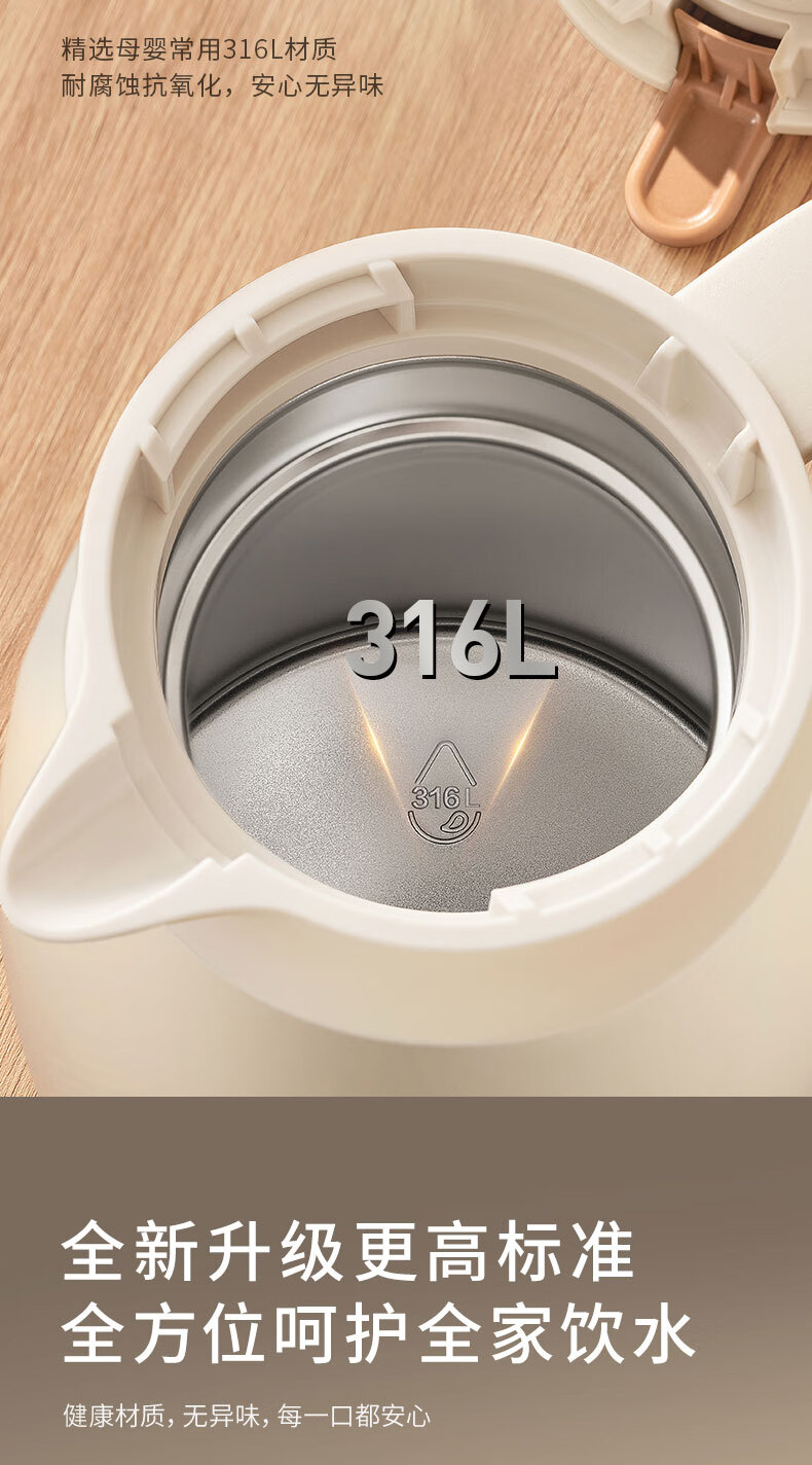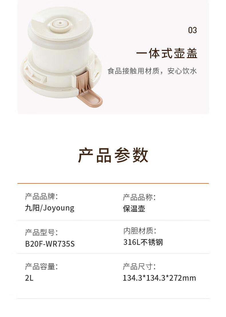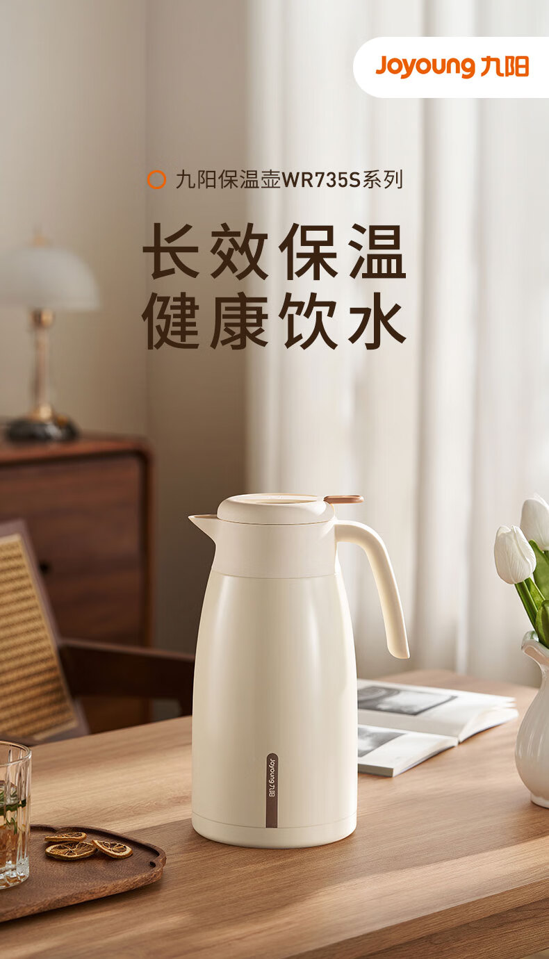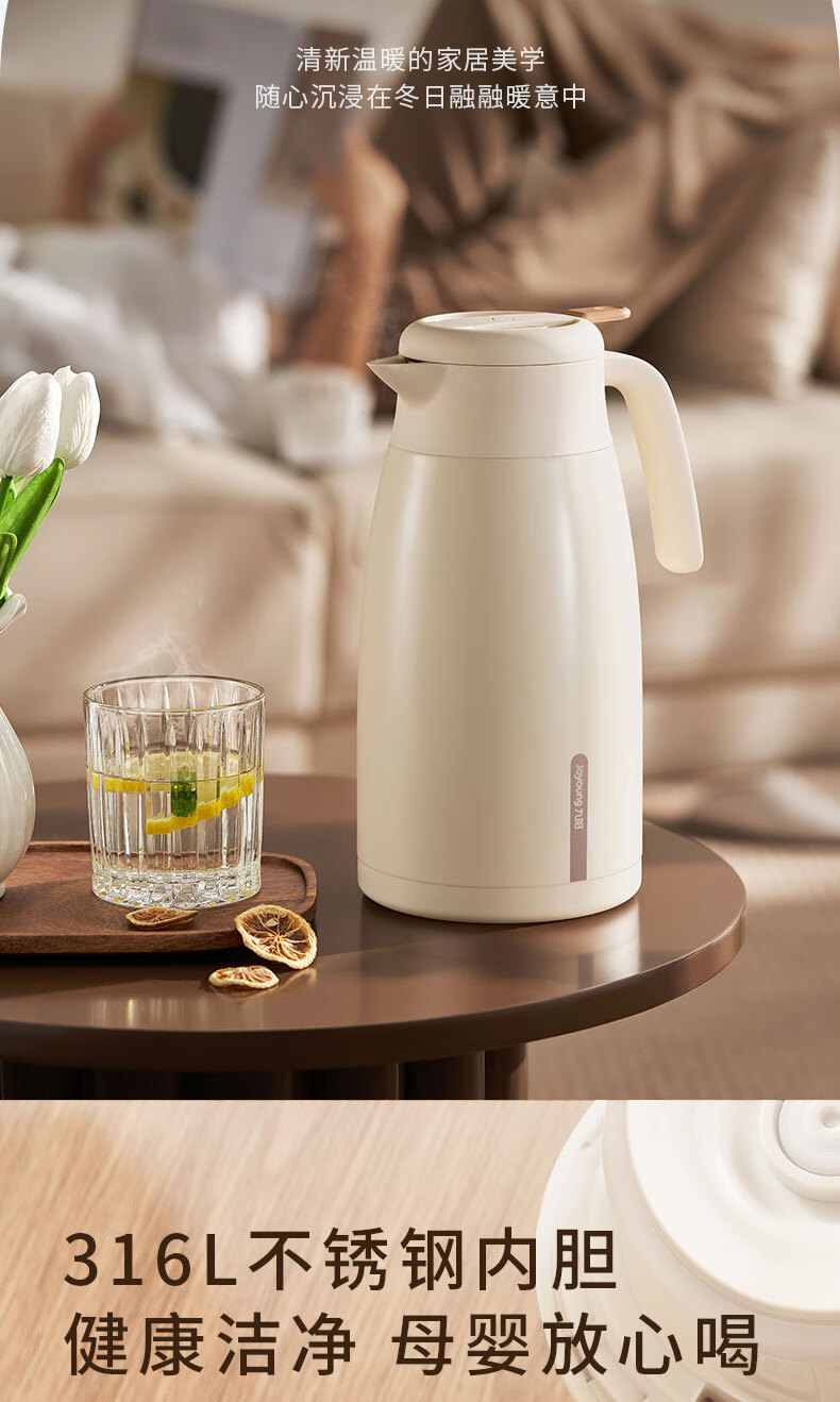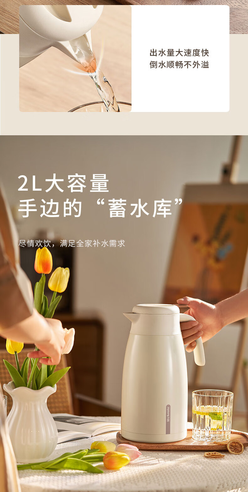九阳(Joyoung)保温壶家用户外大容量暖瓶316L不锈钢真空锁温热水壶新年礼物2L