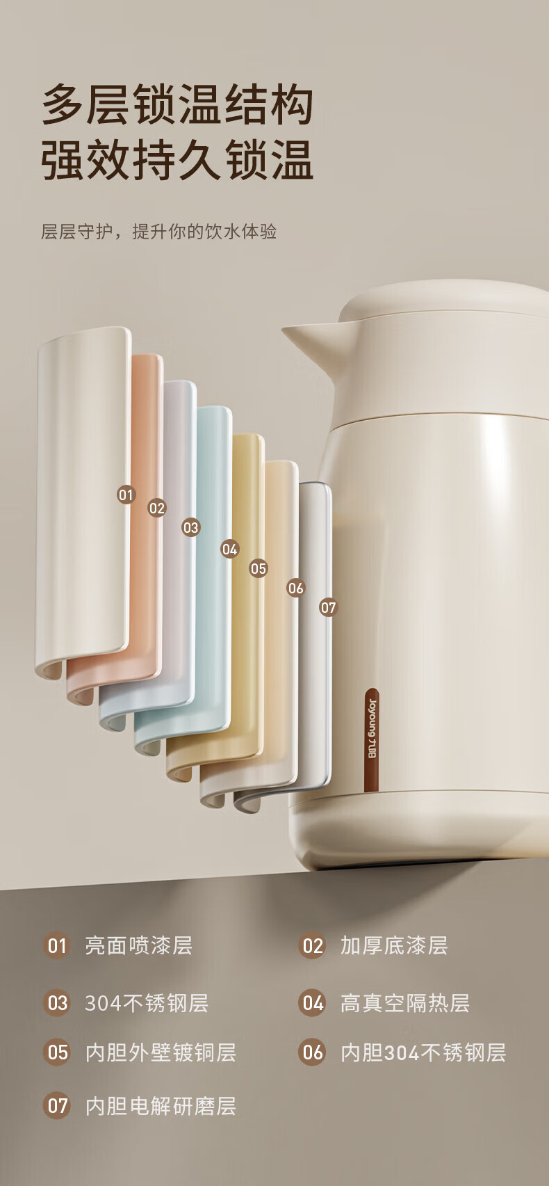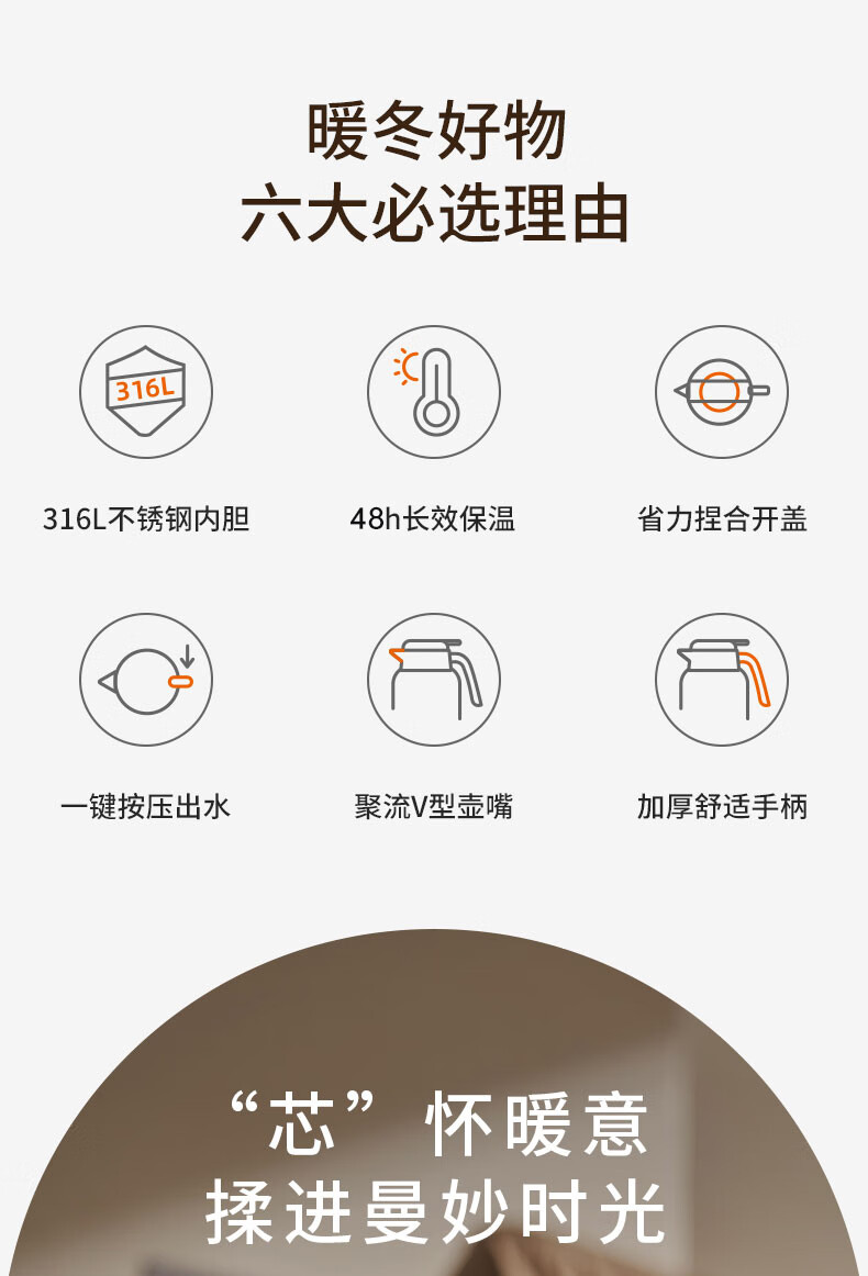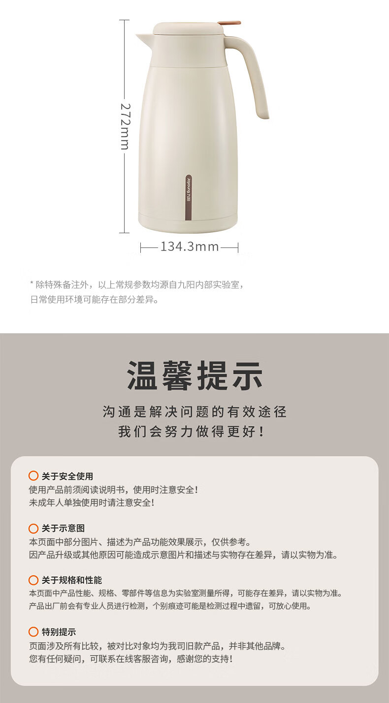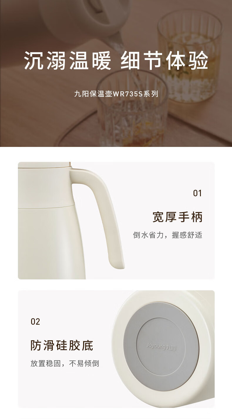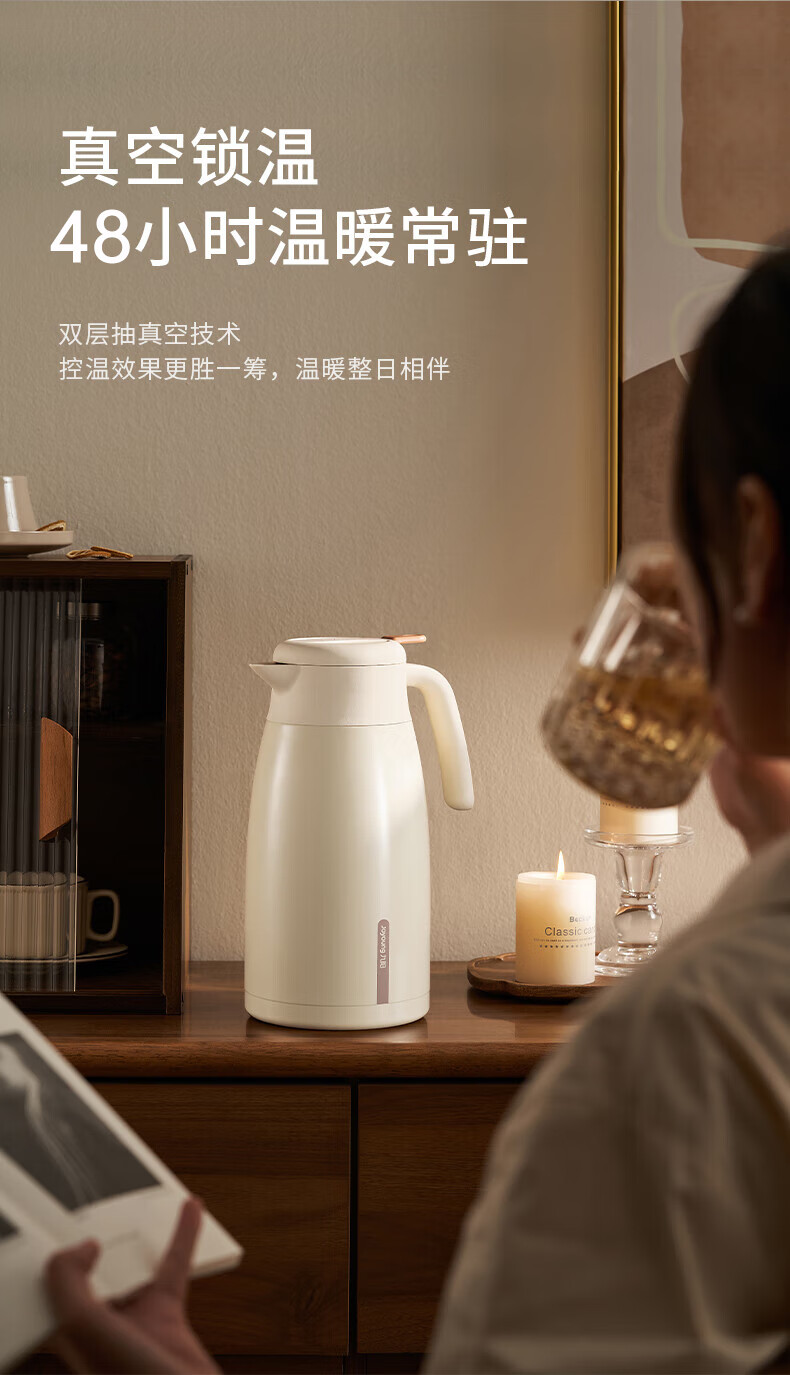 九阳(Joyoung)保温壶家用户外大容量暖瓶316L不锈钢真空锁温热水壶新年礼物2L