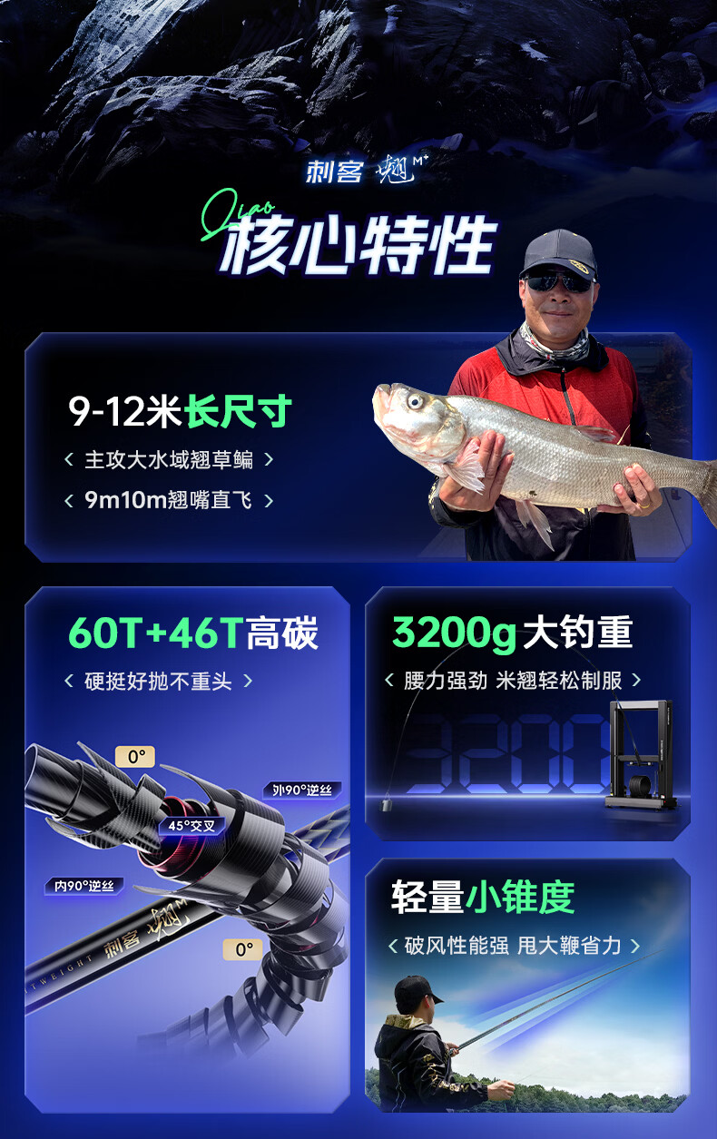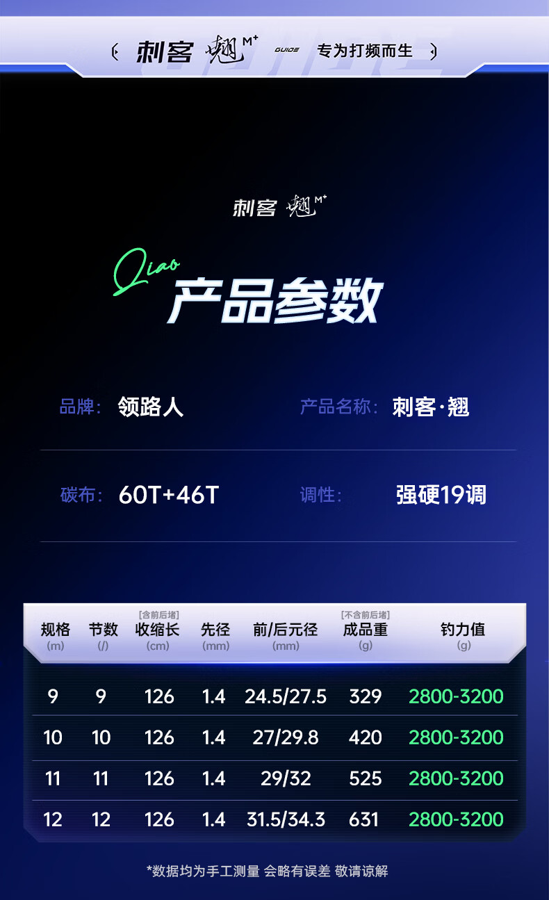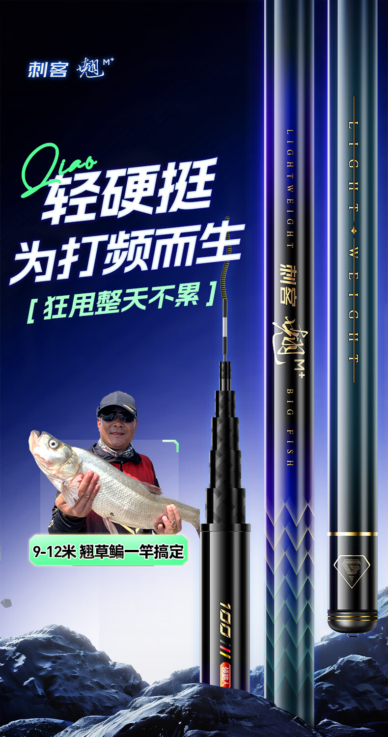 领路人刺客翘鱼竿翘嘴鱼竿甩大鞭翘嘴竿综合碳素台钓超轻超硬长竿 11m 19调【好甩大鞭 钓翘嘴推荐】
