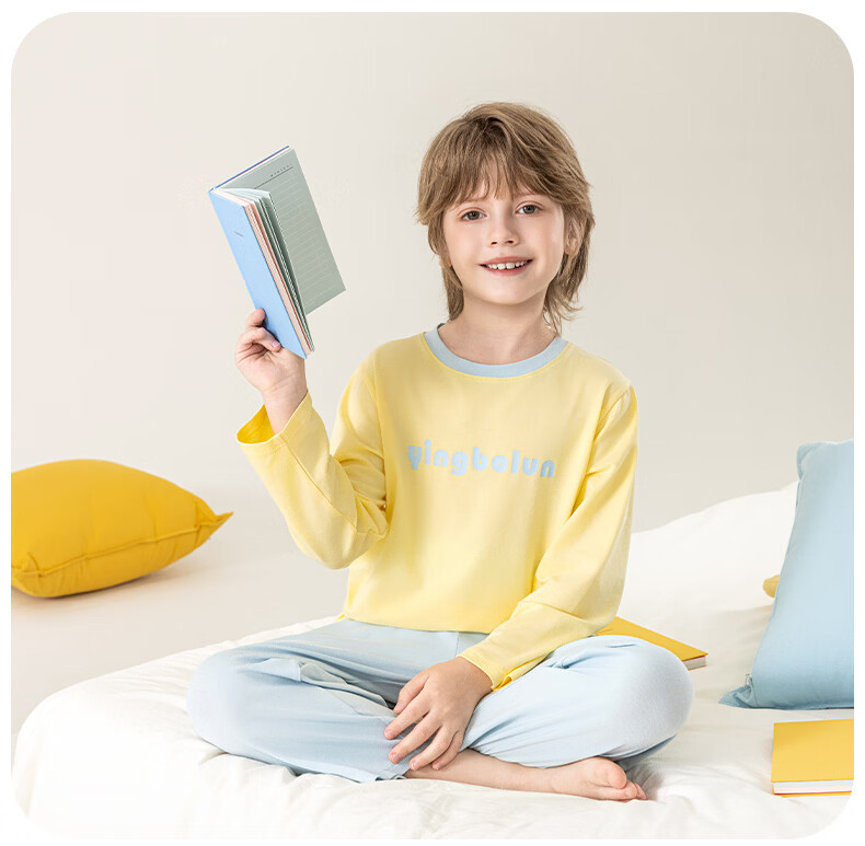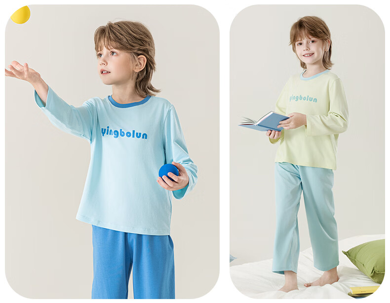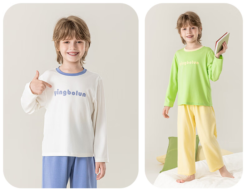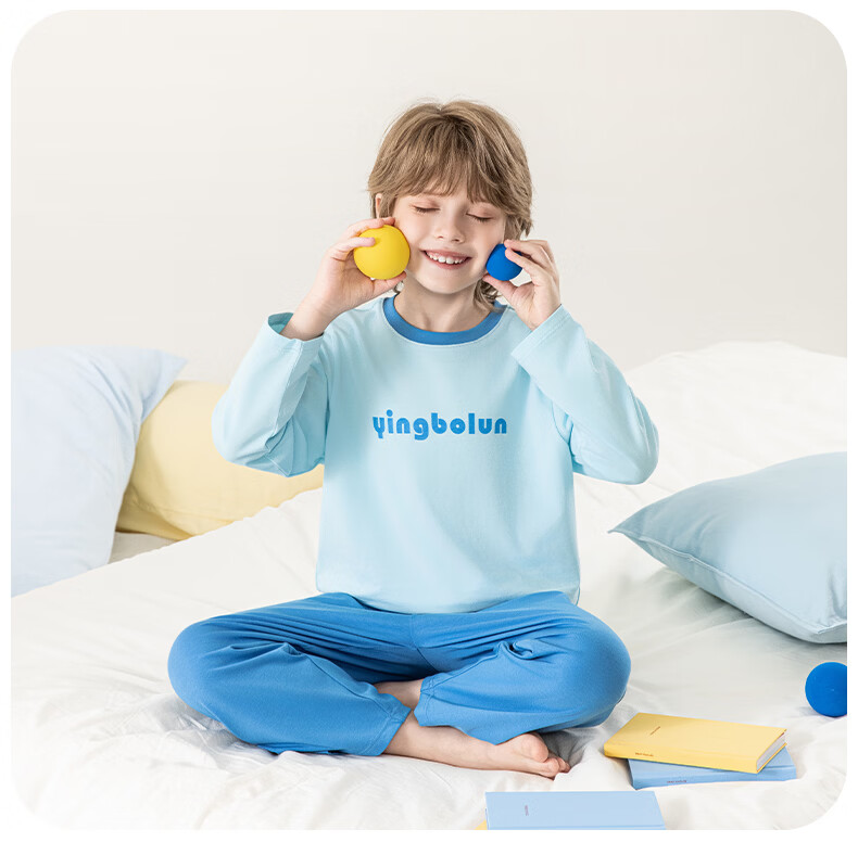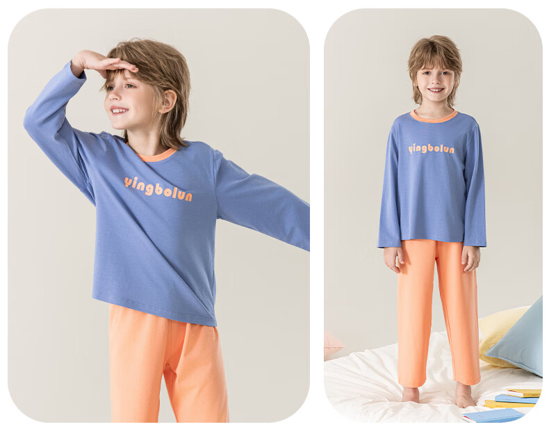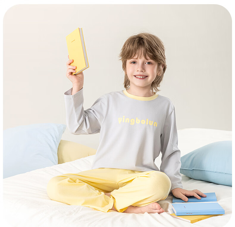 英博伦男童纯棉家居服儿童薄款长袖长裤家居服中大童7A春秋套装 60633浅灰 120