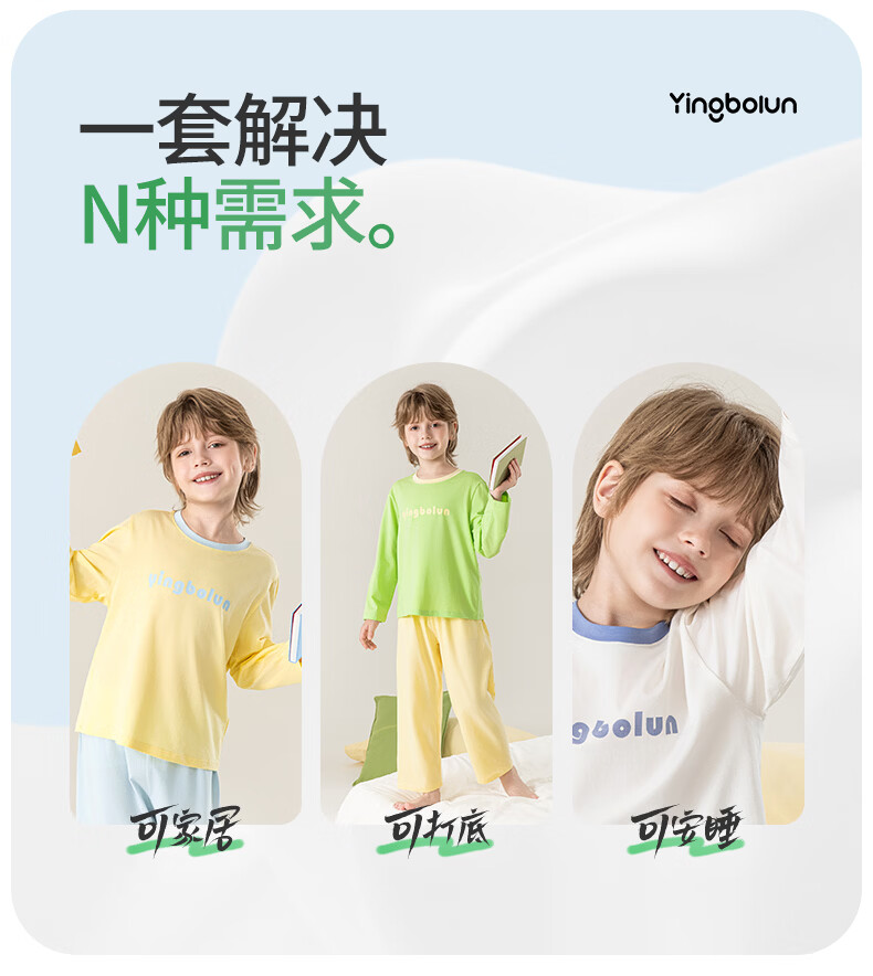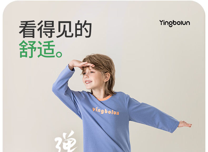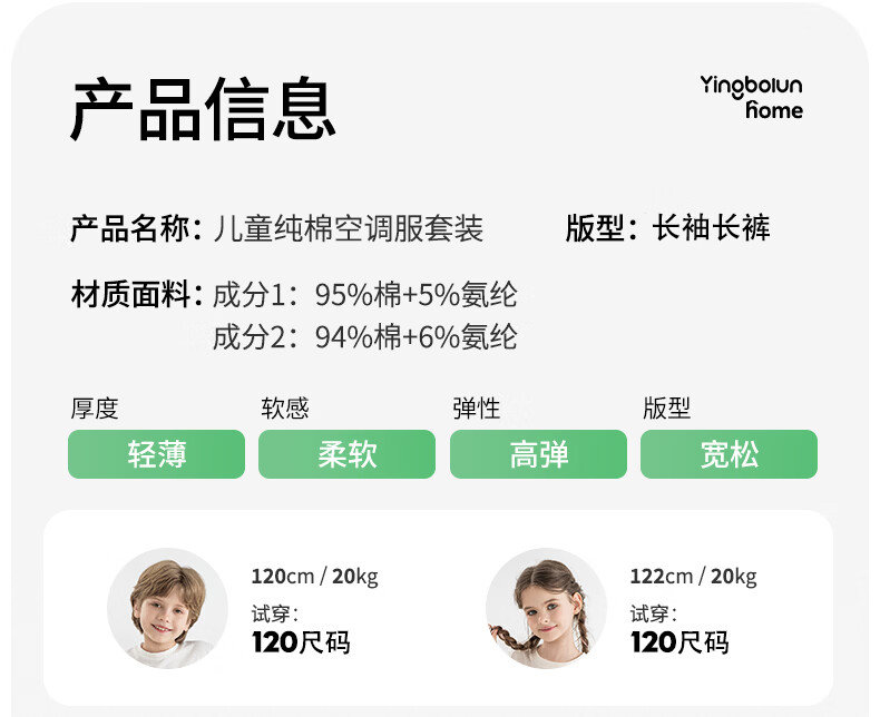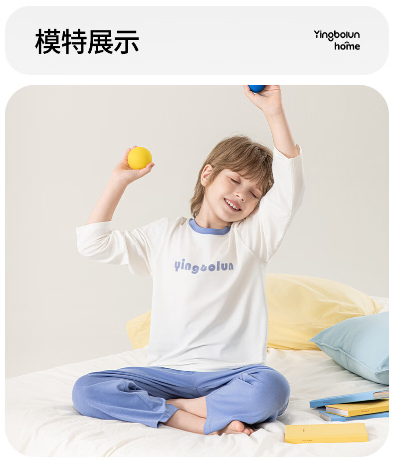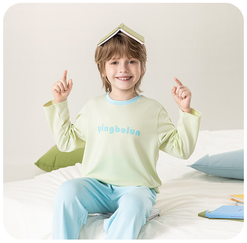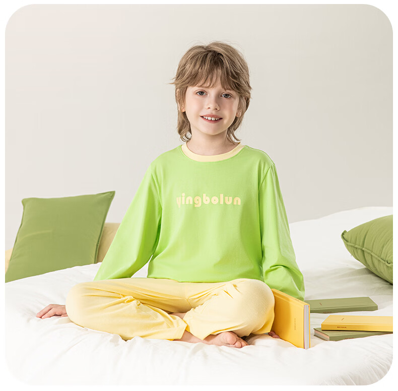 英博伦男童纯棉家居服儿童薄款长袖长裤家居服中大童7A春秋套装 60633浅灰 120