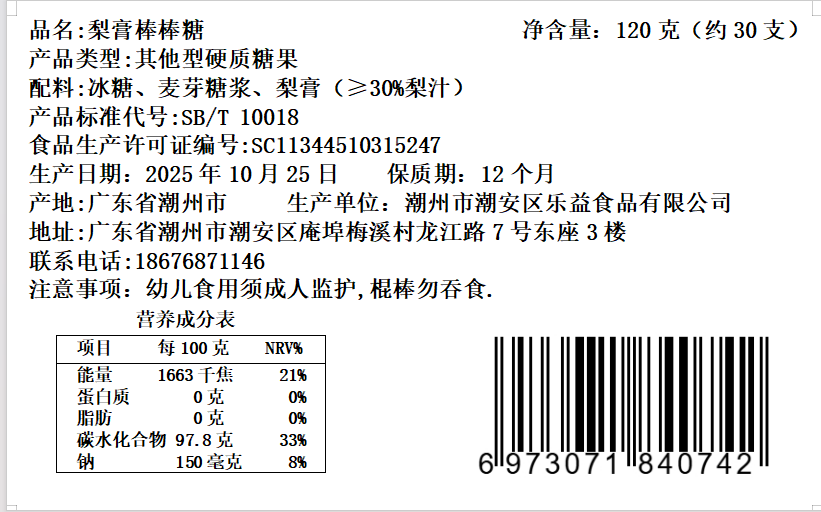 秋梨膏棒棒糖正宗网红小零食儿童硬糖果批发独立包装休闲零食-5 梨膏棒棒糖30支