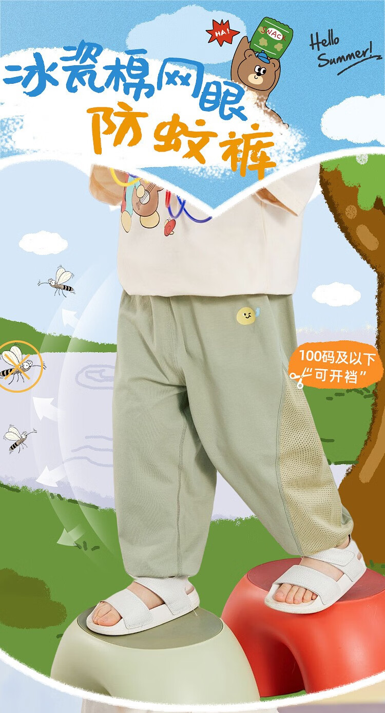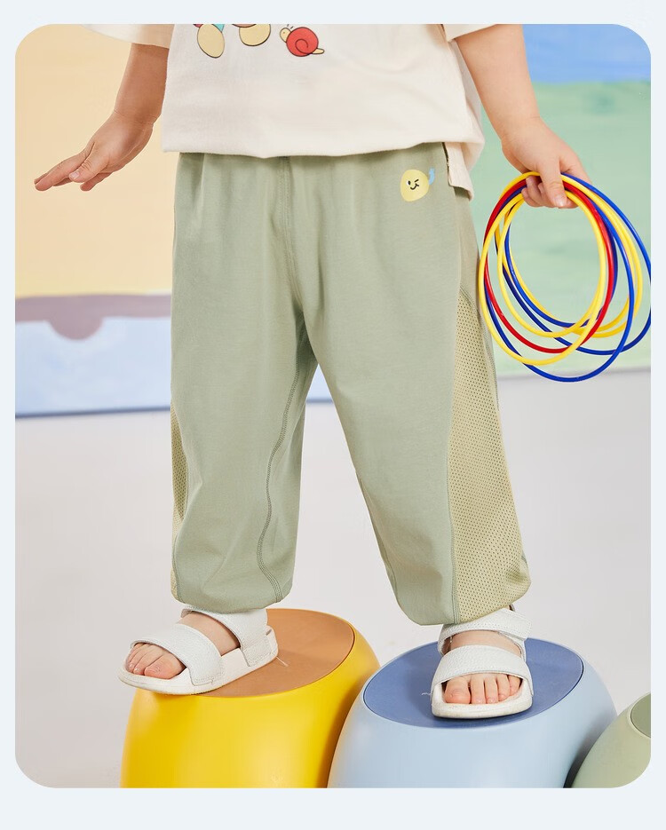 嘟嘟家儿童裤子夏装男童防蚊裤夏季宝宝休闲长裤女童透气网眼童裤潮童装 麻灰色 110