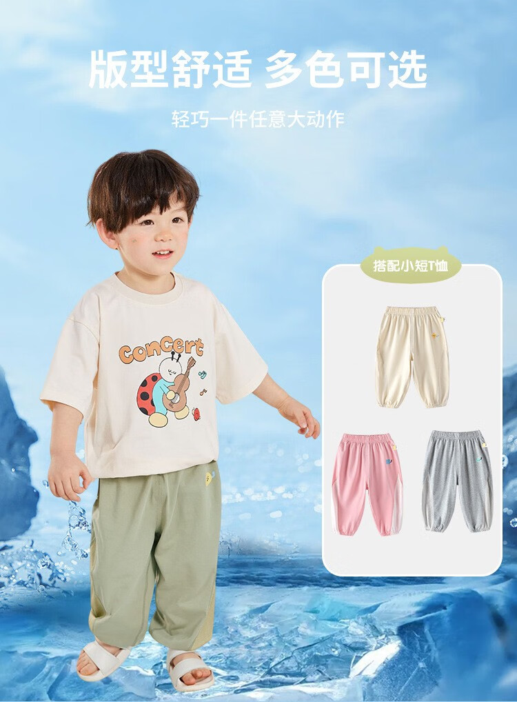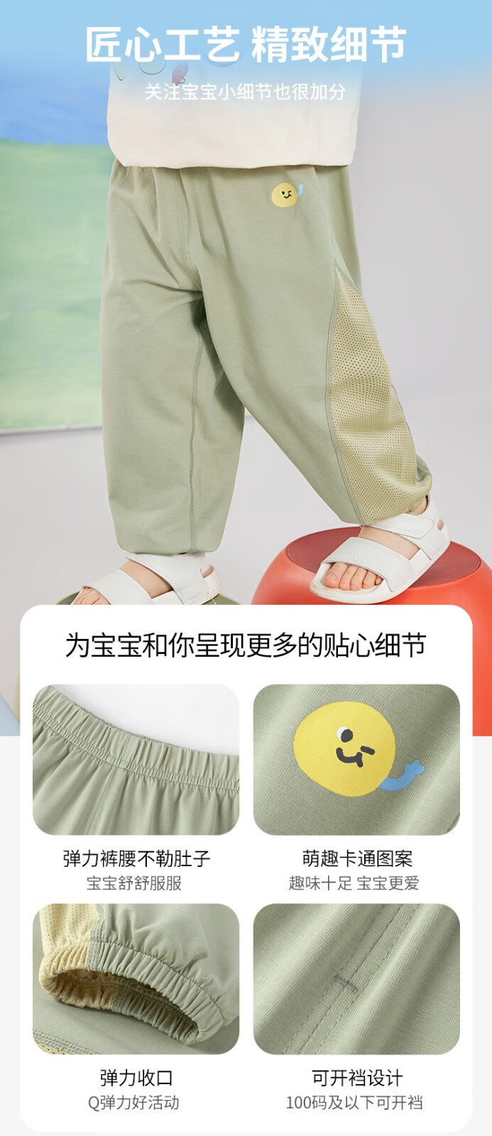 巴拉巴拉宝宝裤子婴儿防蚊裤男女童长裤夏季薄款舒适透气 粉红60016 90