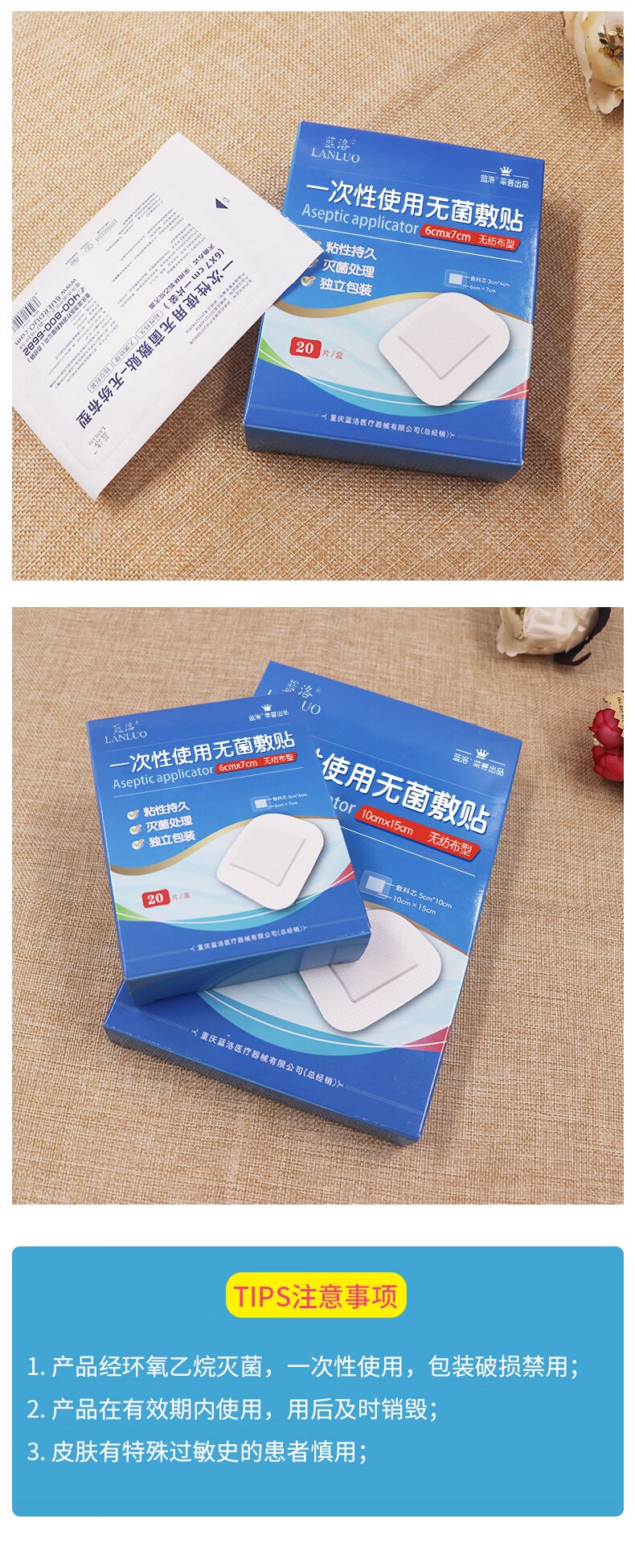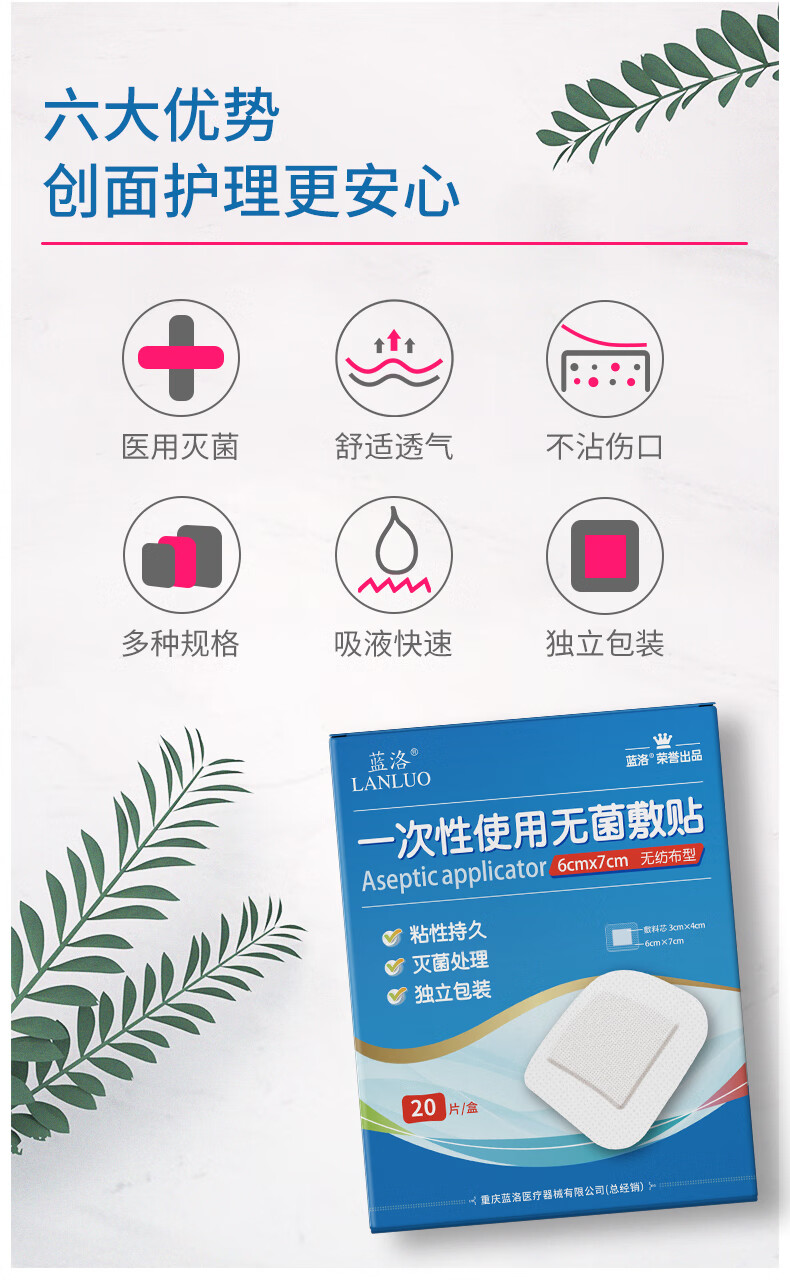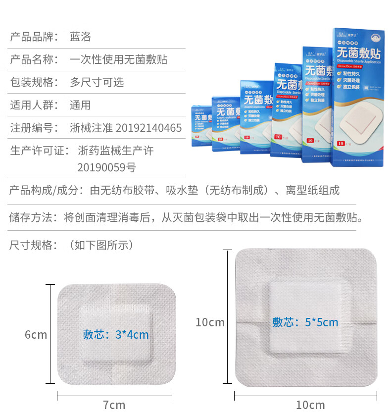 蓝洛医用无菌敷贴一次性透气创面敷料大号创可贴术后伤口愈合贴肚脐贴